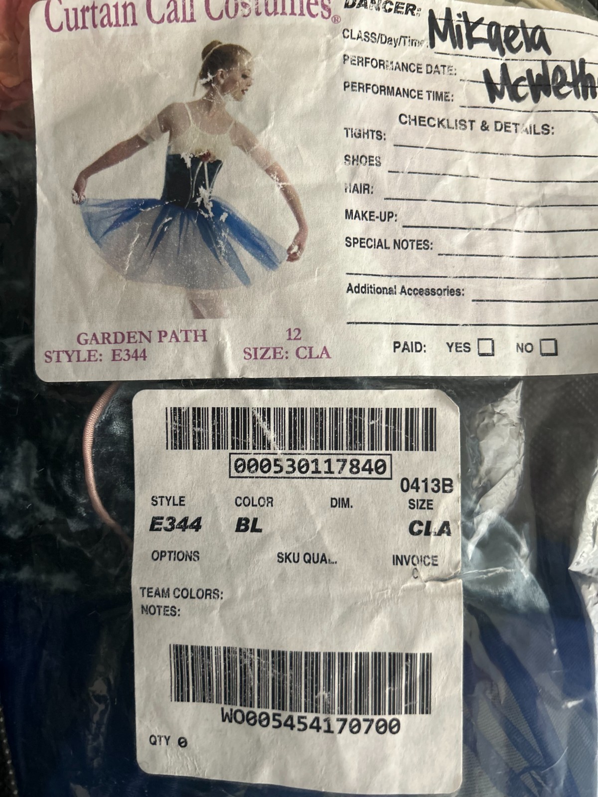 Curtain Call Blue Dance Costume Child Large