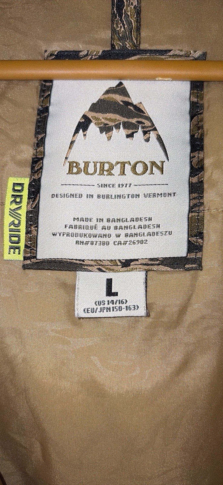 как выглядит Burton Dryride Camo Ski / Snowboard Jacket Youth 14/16 фото