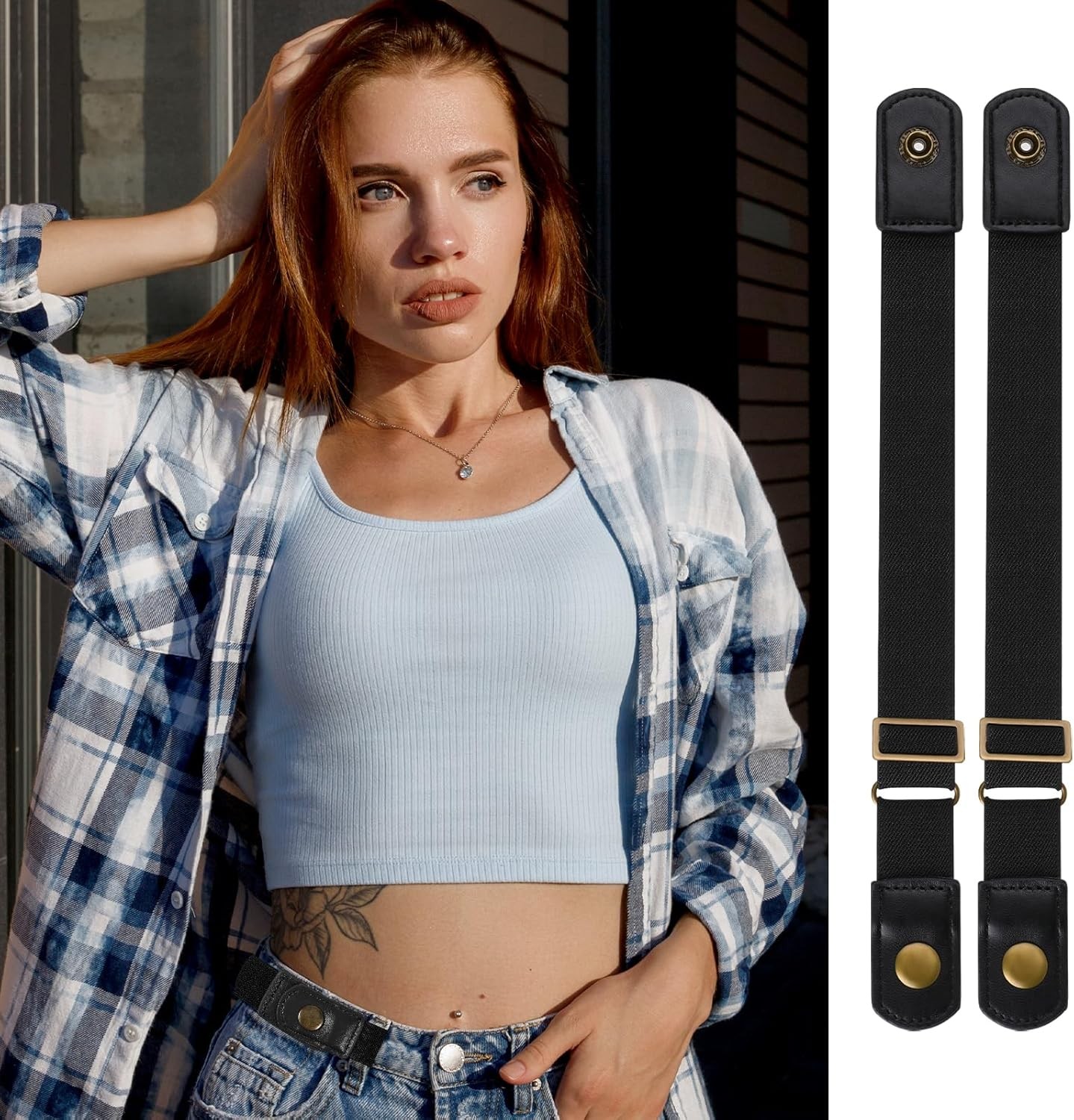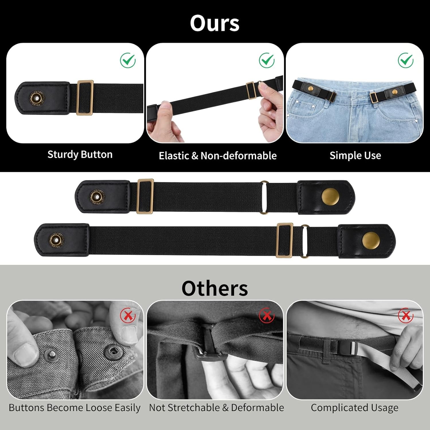 Invisible Side Belt No Buckle Belt Women and Men,Without Buckle Elastic Stretch