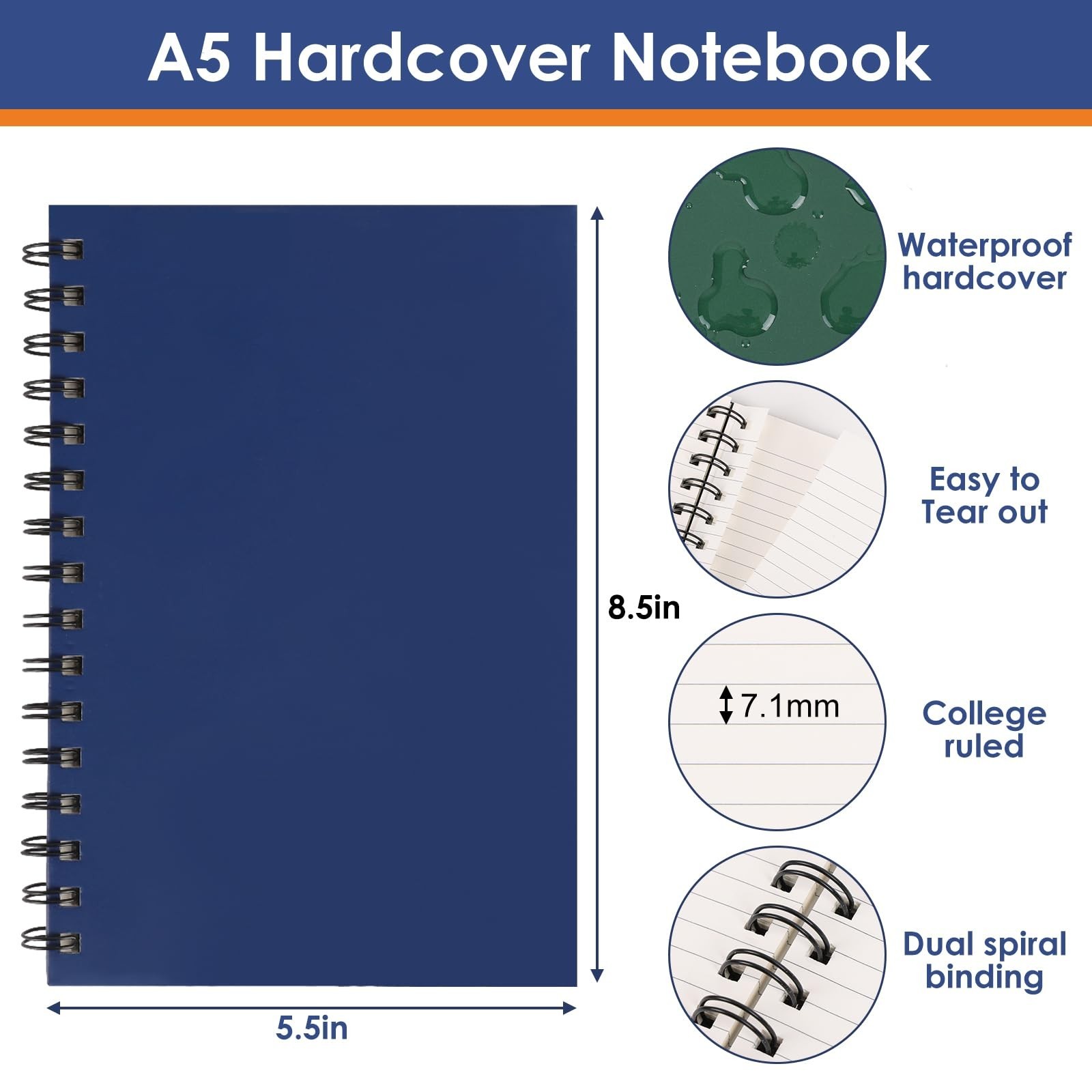 как выглядит LABUK 8pcs Hardcover Spiral Notebook, A5 Spiral Journals, 160 Pages College R... фото