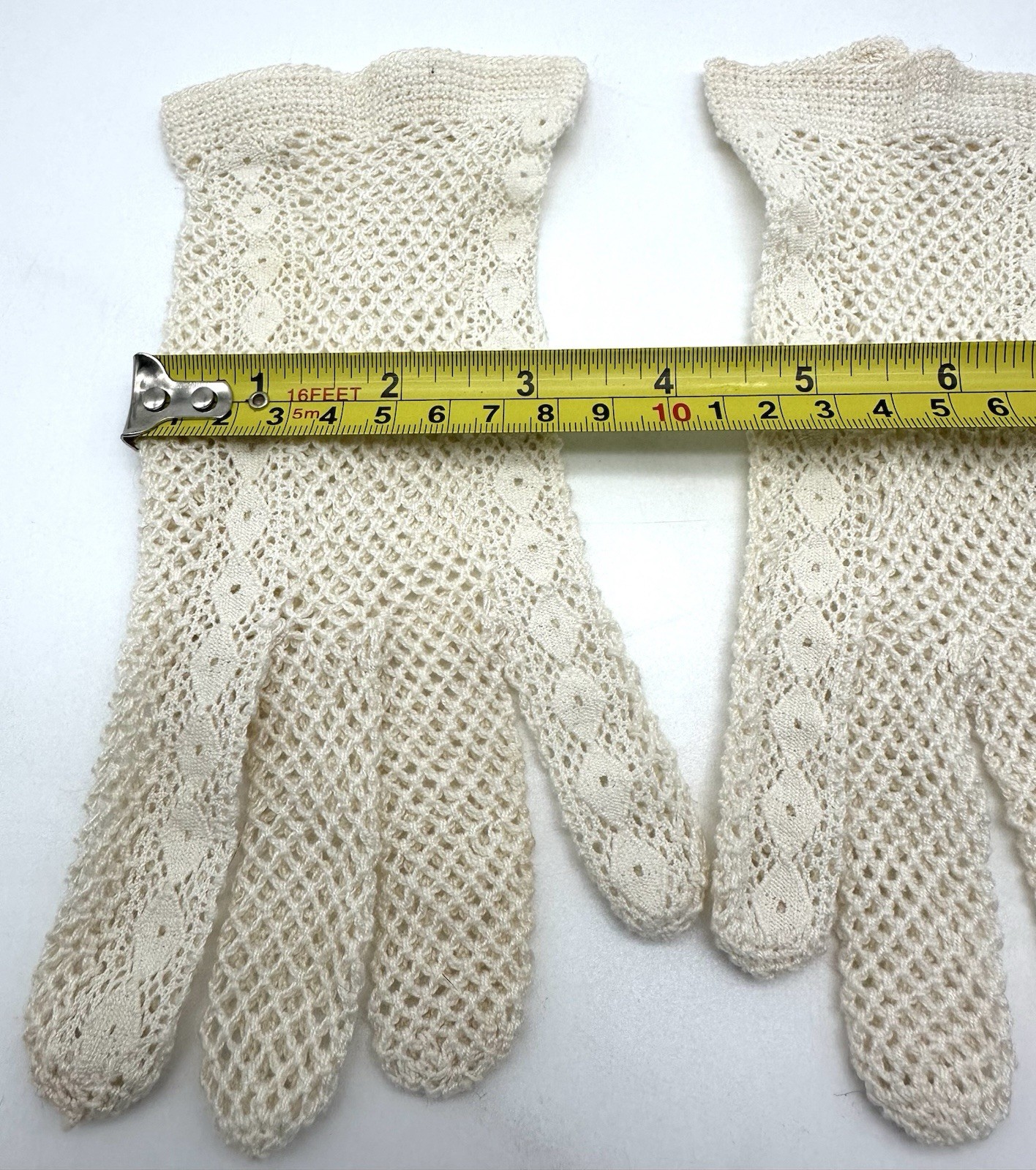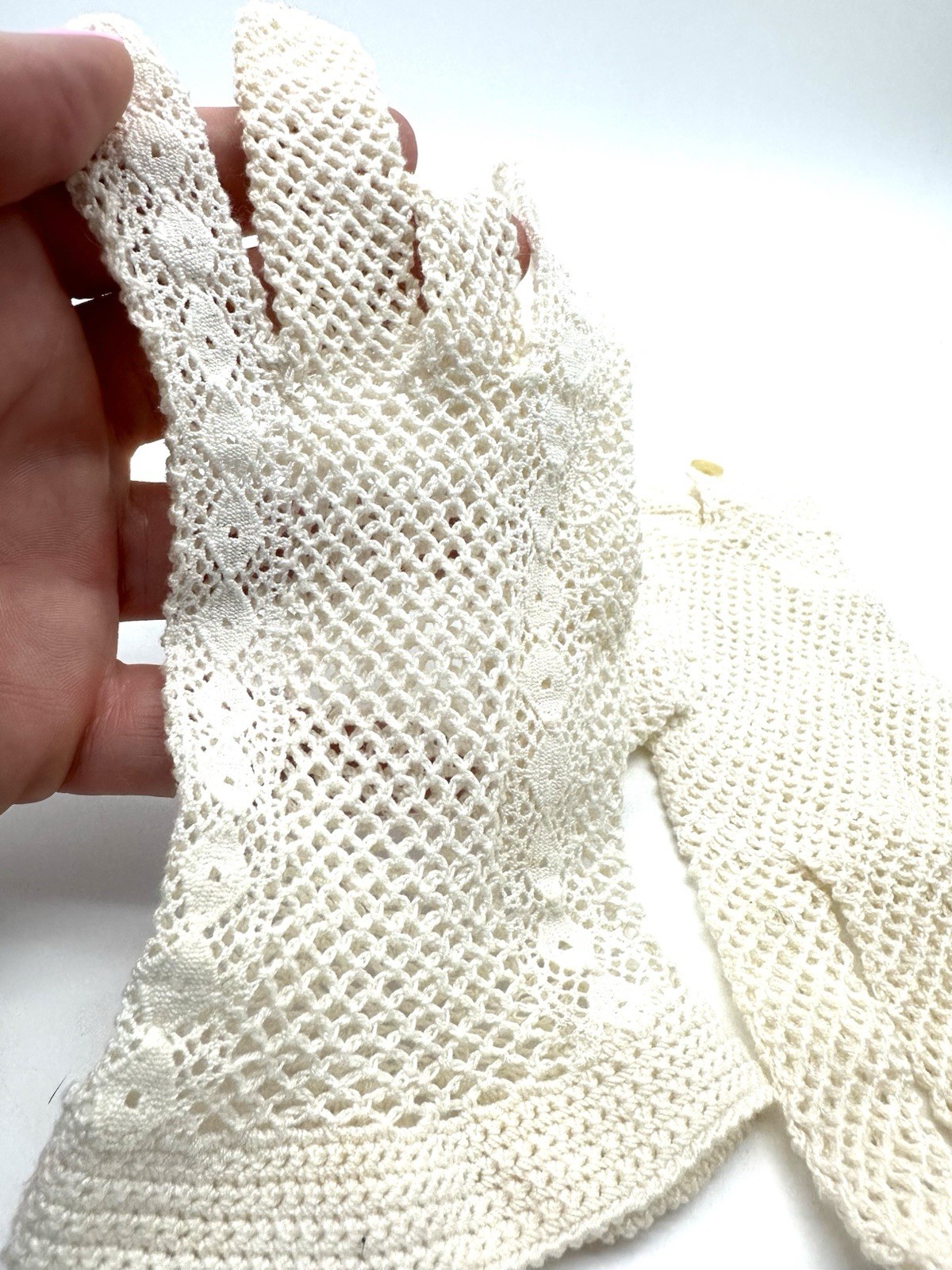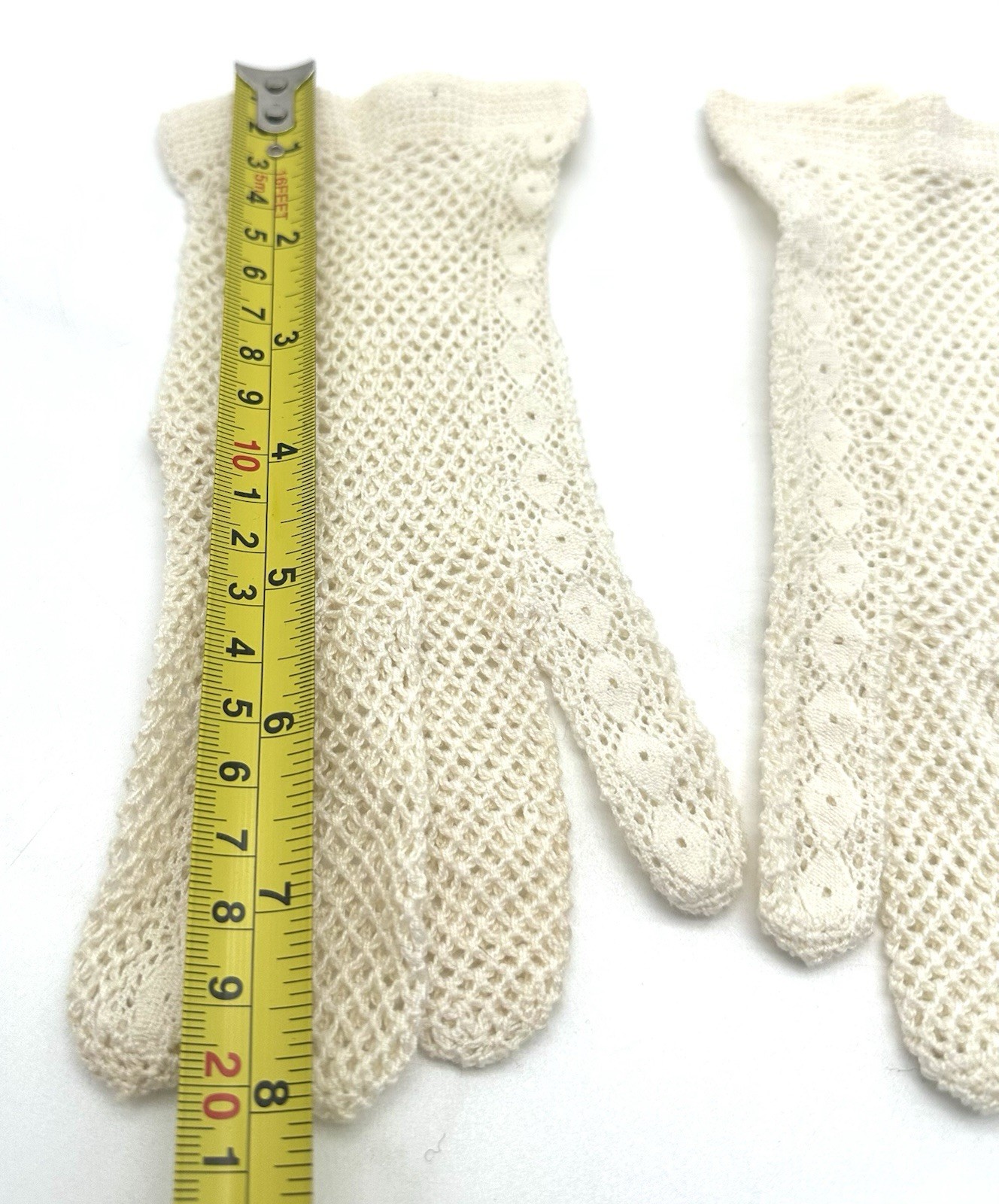как выглядит Vintage Ladies Crocheted Gloves Ivory Off White Size Small фото