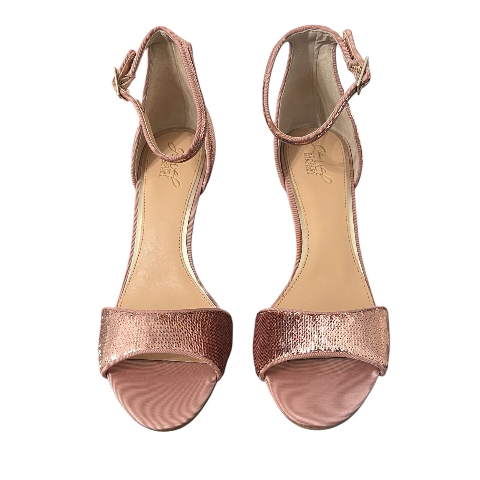 как выглядит New Badgley Mischka Jewel Lorena Rose Gold Sequin Heels - Size 10 фото