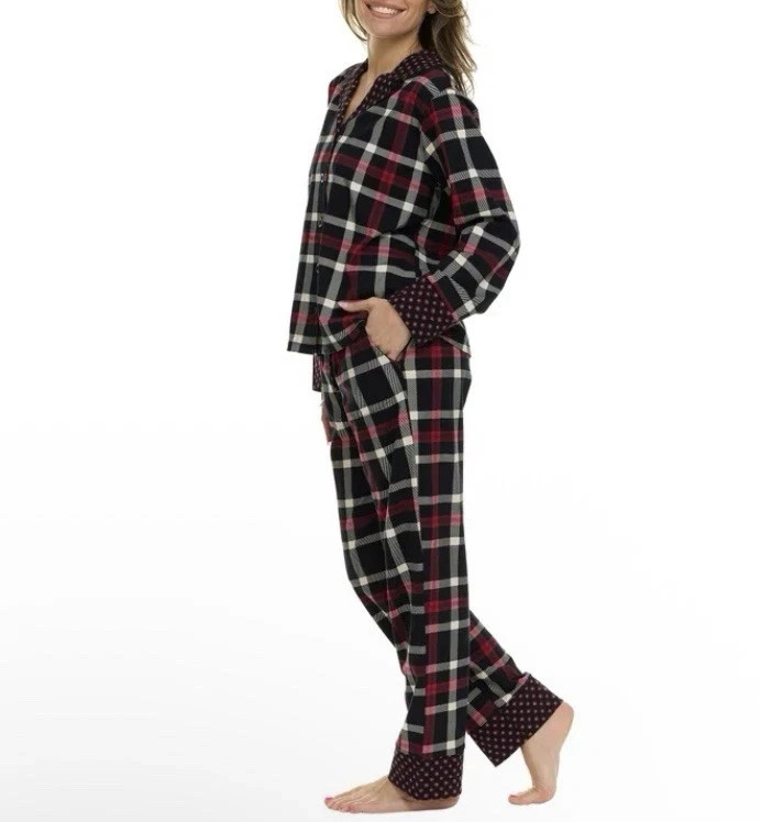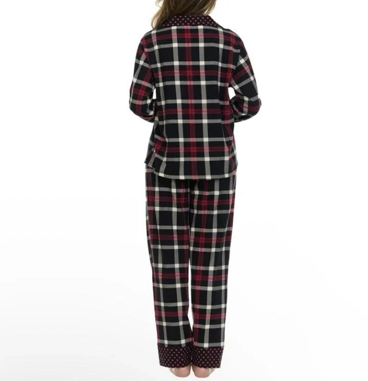 Vera Bradley -Women's 2-Pc Long Sleeve Notch Collar Pant PJ Set - Red Plaid- S
