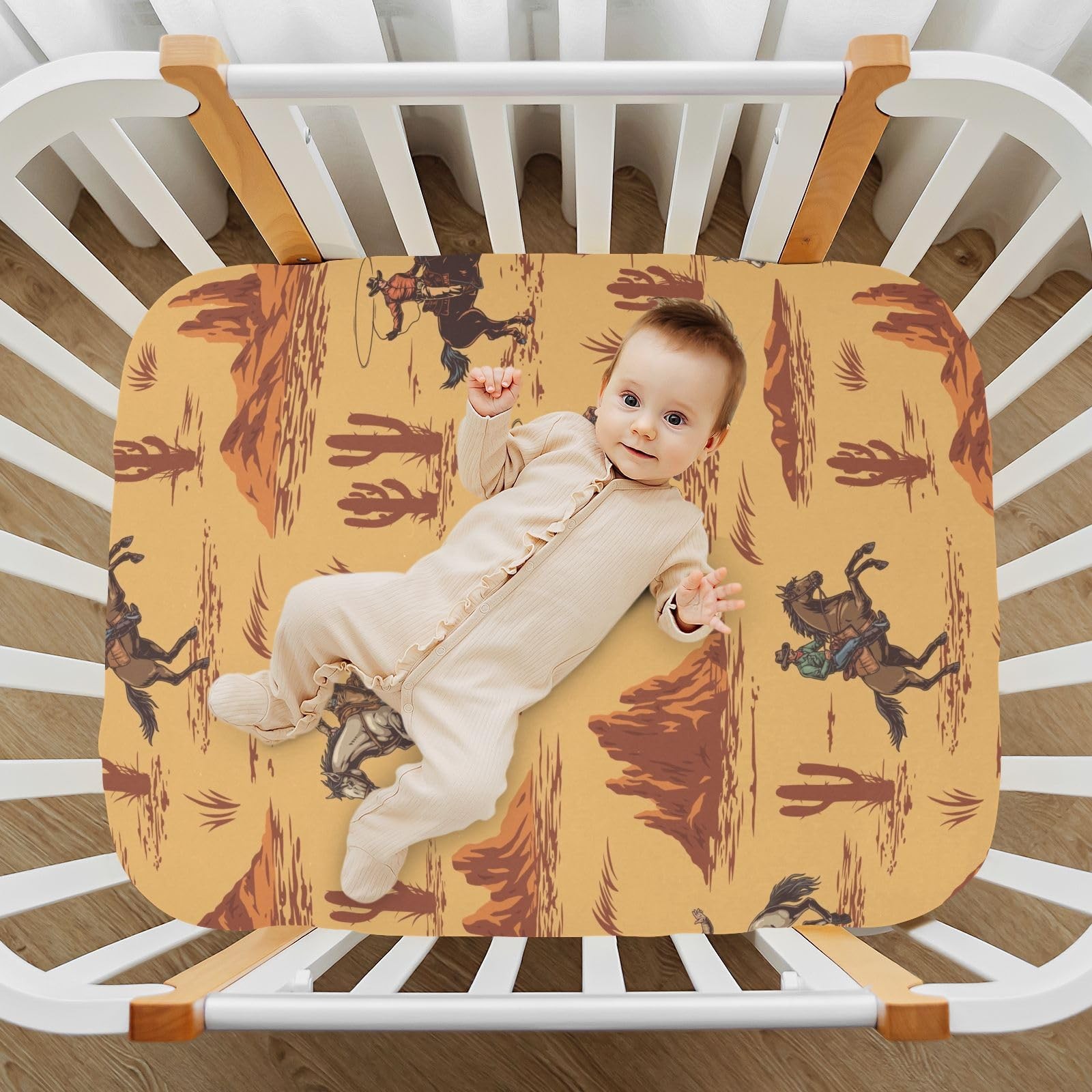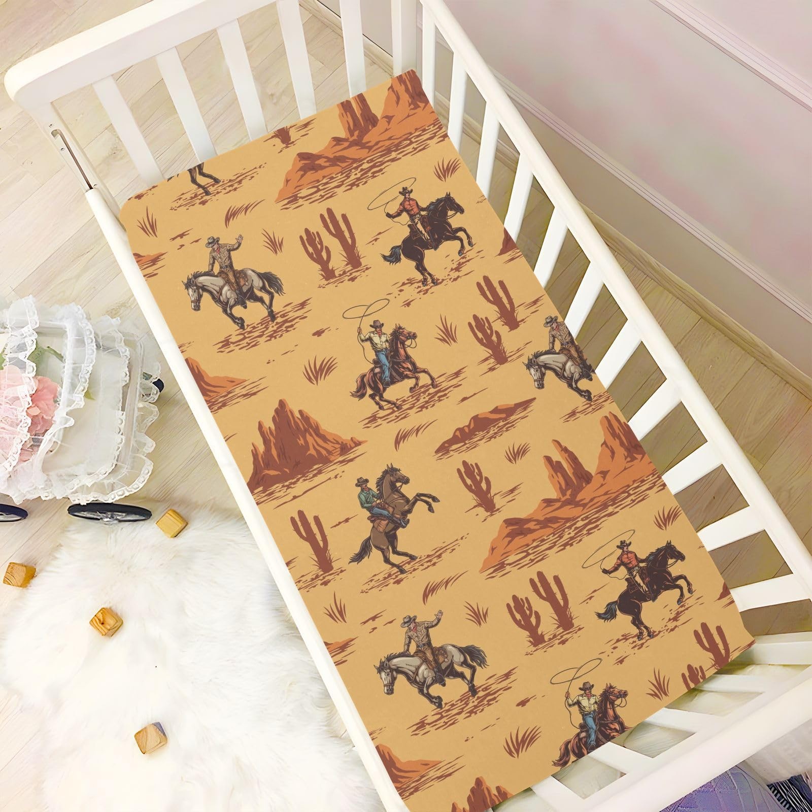 Western Cowboy American Crib Sheets Soft Breathable Fitted Baby Crib Sheets M...