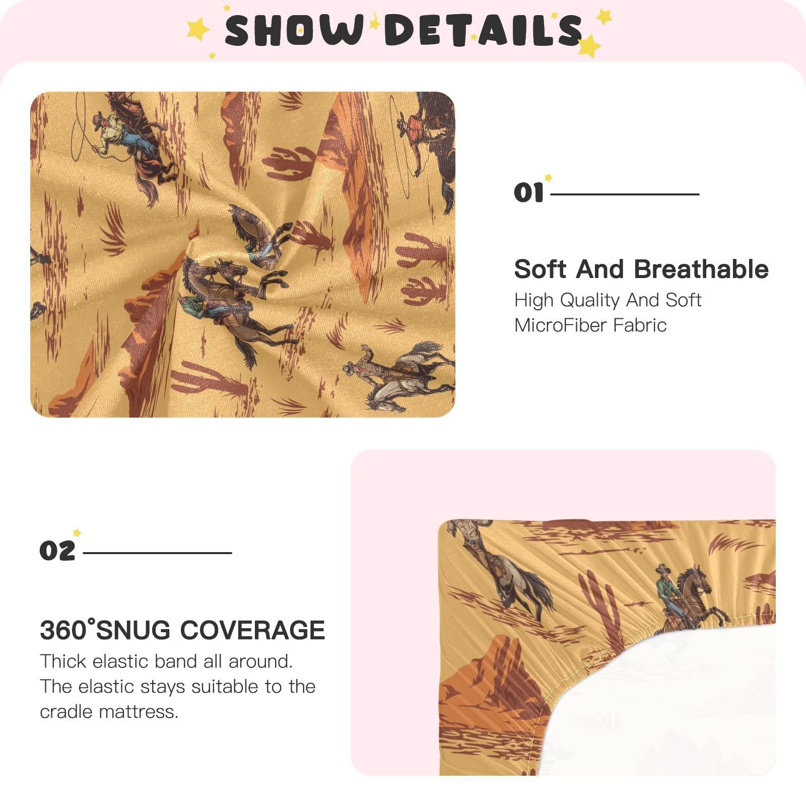 как выглядит Western Cowboy American Crib Sheets Soft Breathable Fitted Baby Crib Sheets M... фото