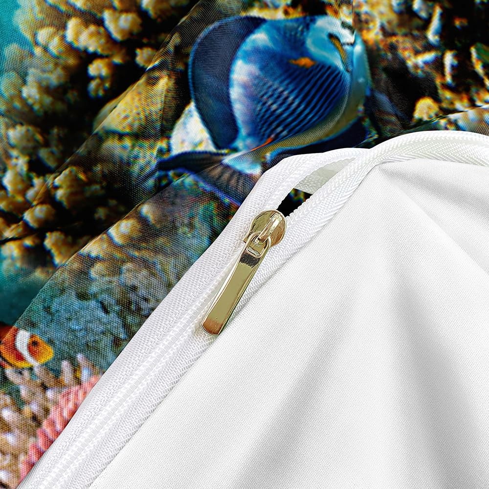 Ocean Bedding Sets King Size Blue Sea Turtle Duvet Cover Set Nautical Coastal...