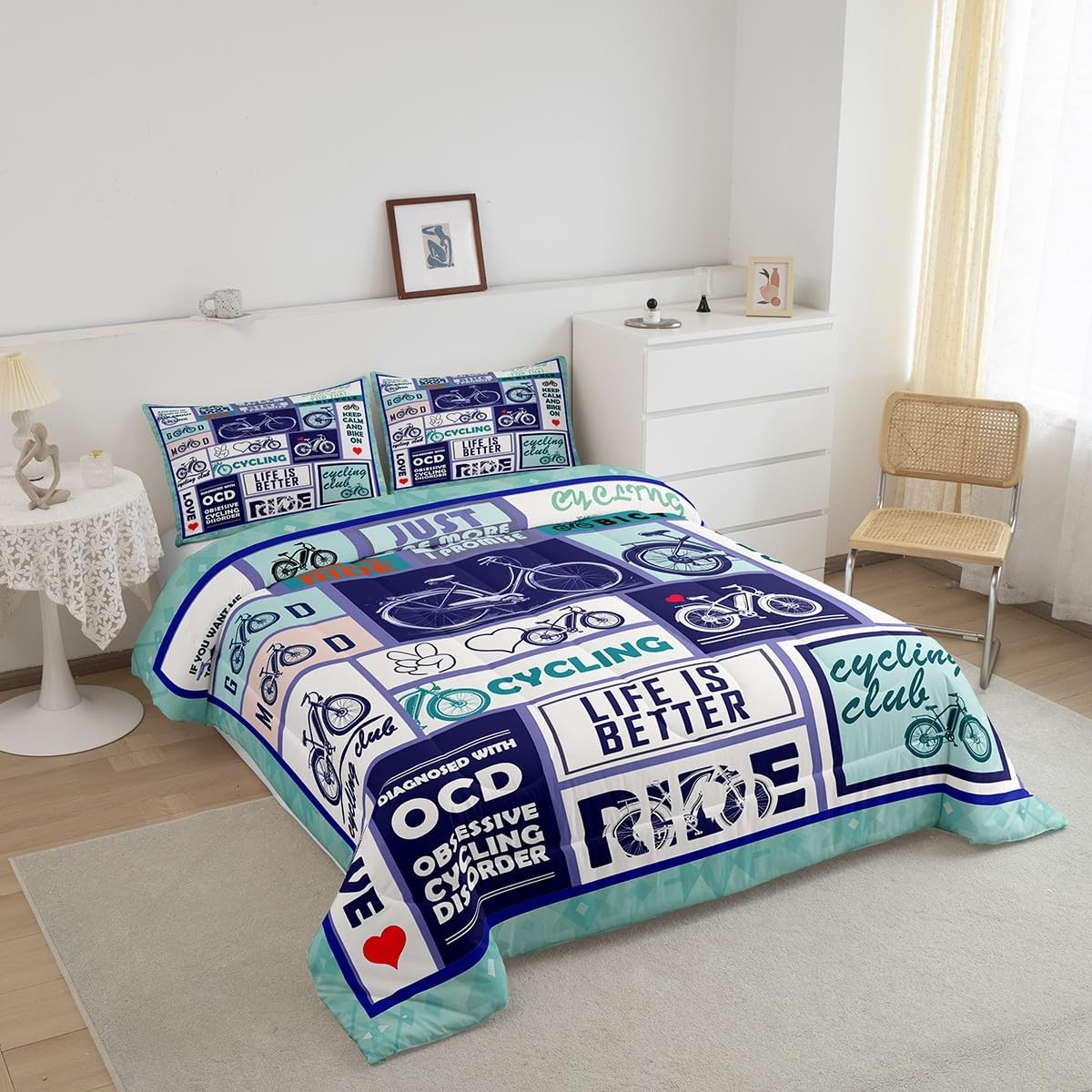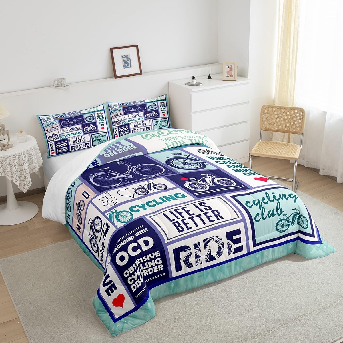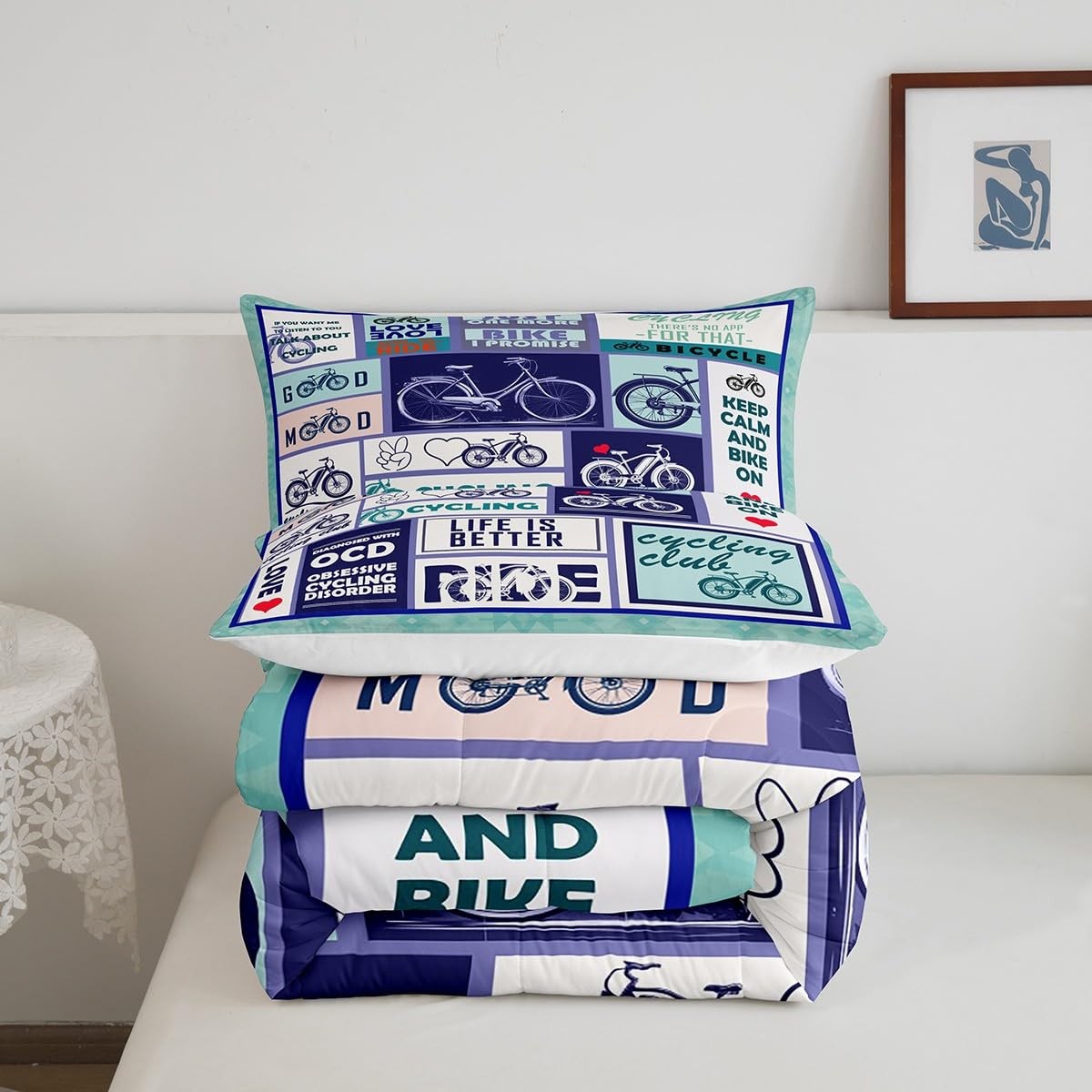 как выглядит Cycling Comforter Set Full Size,Extreme Sports Biking Riding Bicycle Bedding ... фото