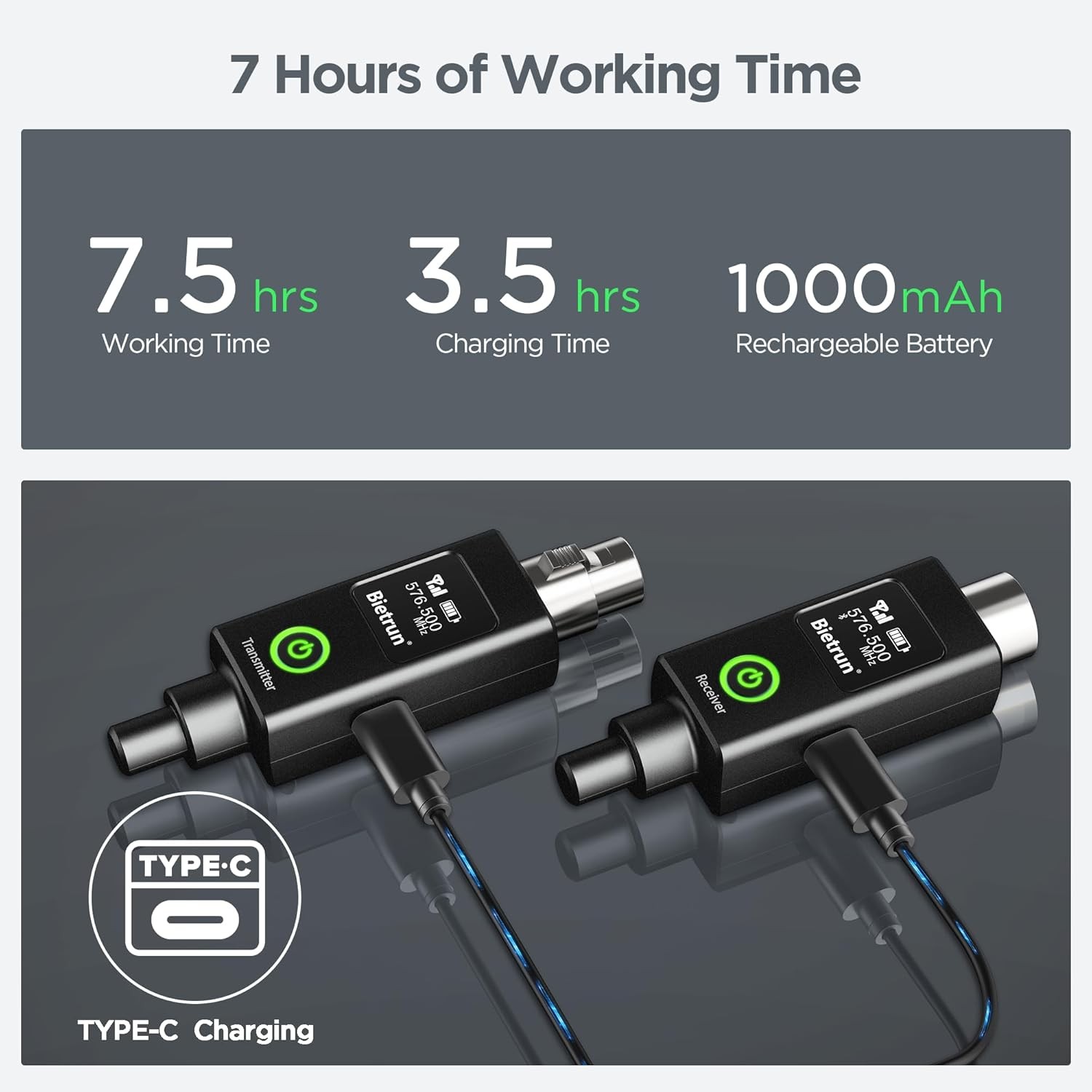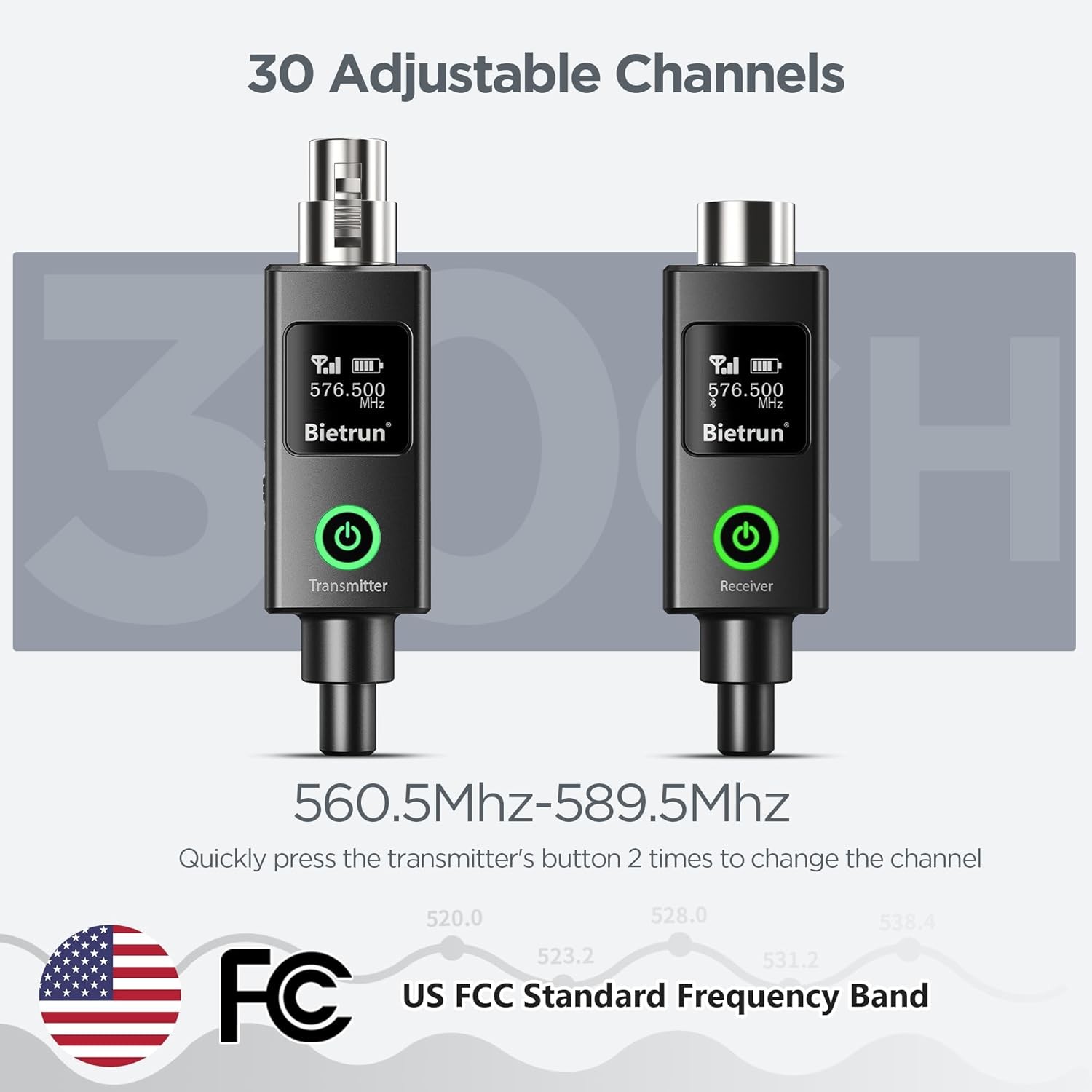 Wireless XLR Transmitter Receiver with 48V Phantom Power, Wireless Microphone