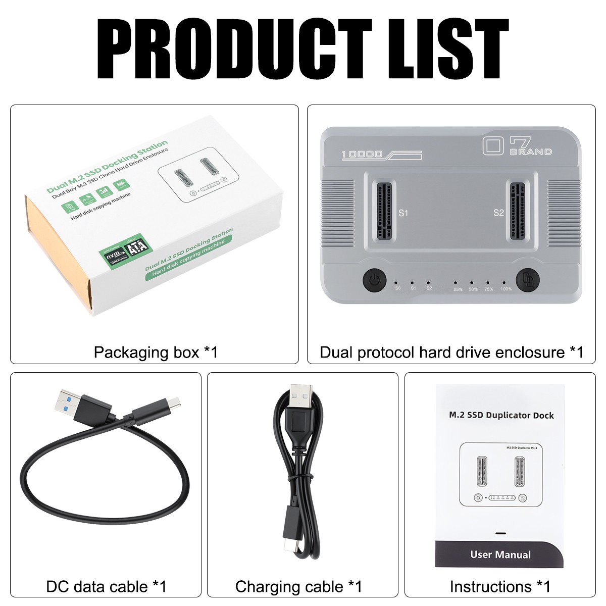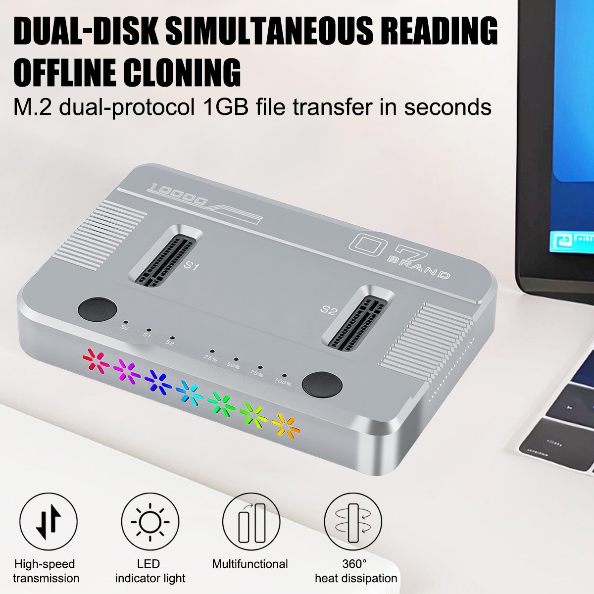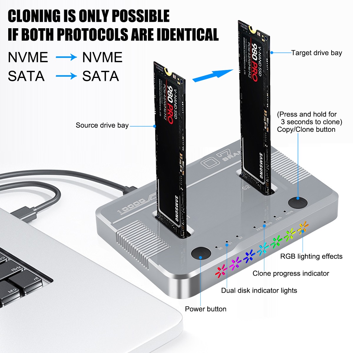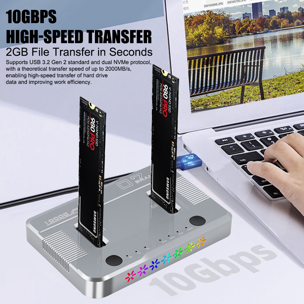 Portable SSD Duplicator Dock 10Gbps Clone M.2 NVMe/SATA Drives in Aluminum Case