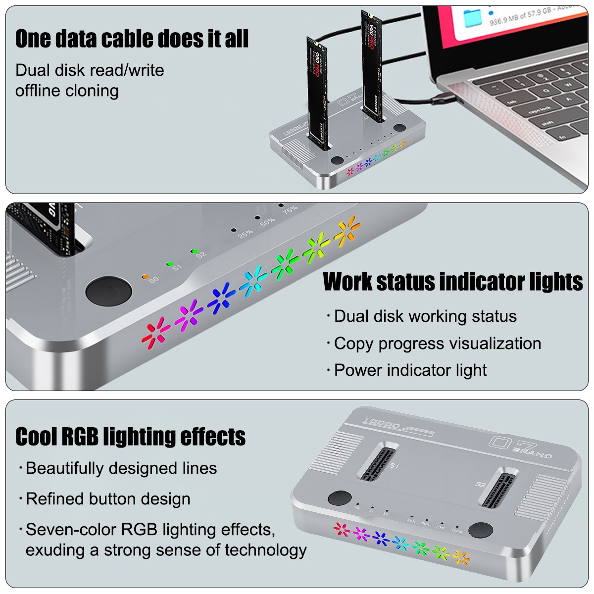 как выглядит M.2 NVMe SATA Hard Drive Cloner Duplicator Dock Dual Bay 10Gbps Type-C USB 3.1 фото