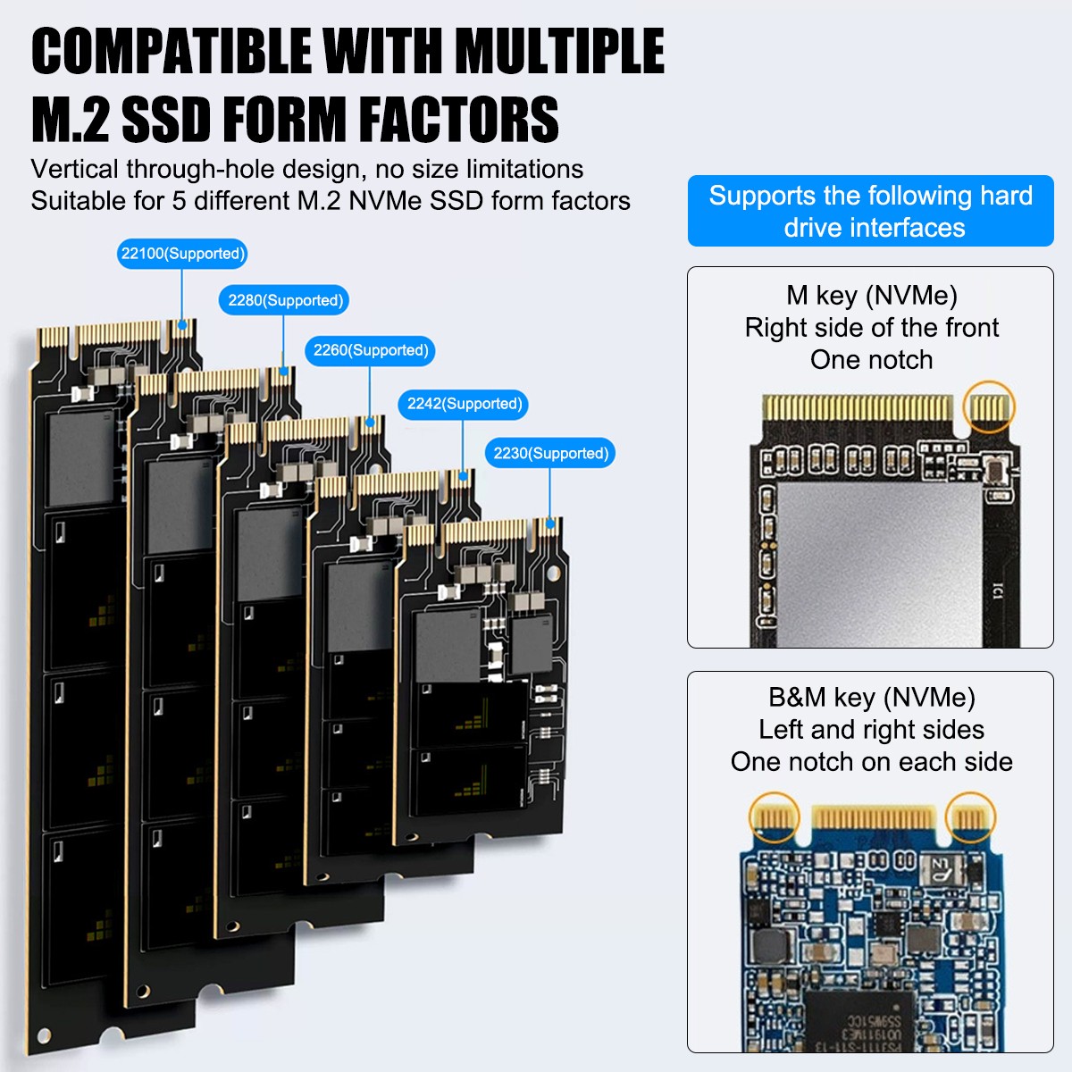 Совемстимость: 2230, 2242, 2260, 2280, 22110/M-key and B&M-key NVMe