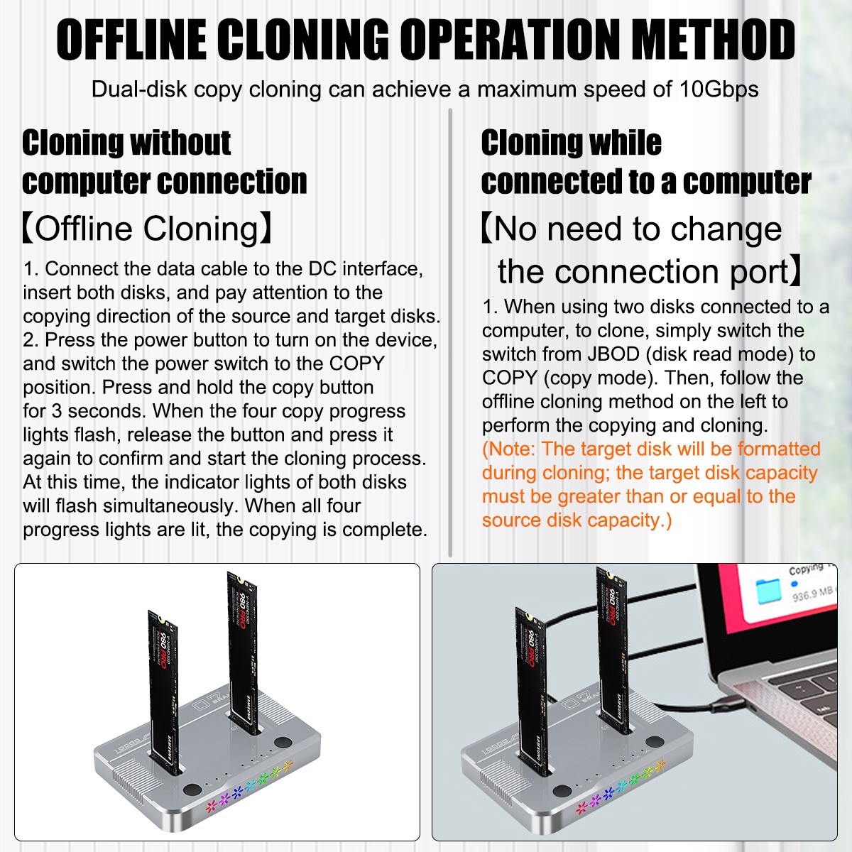 M.2 NVMe SATA Hard Drive Cloner Duplicator Dock Dual Bay 10Gbps Type-C USB 3.1