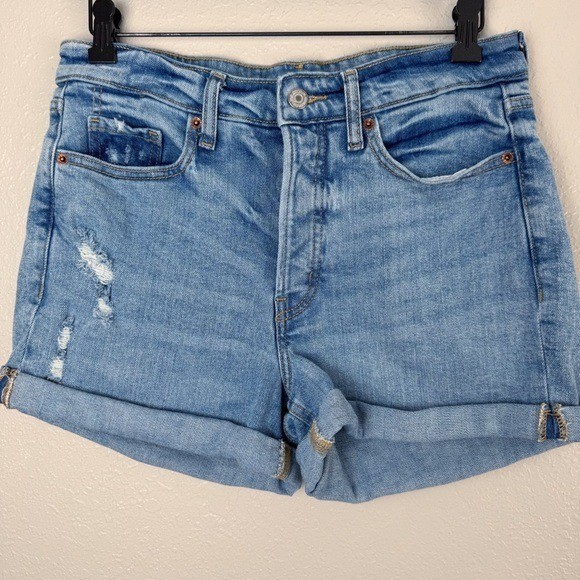 Old Navy high rise O.G. Straight rolled hem distressed shorts 8