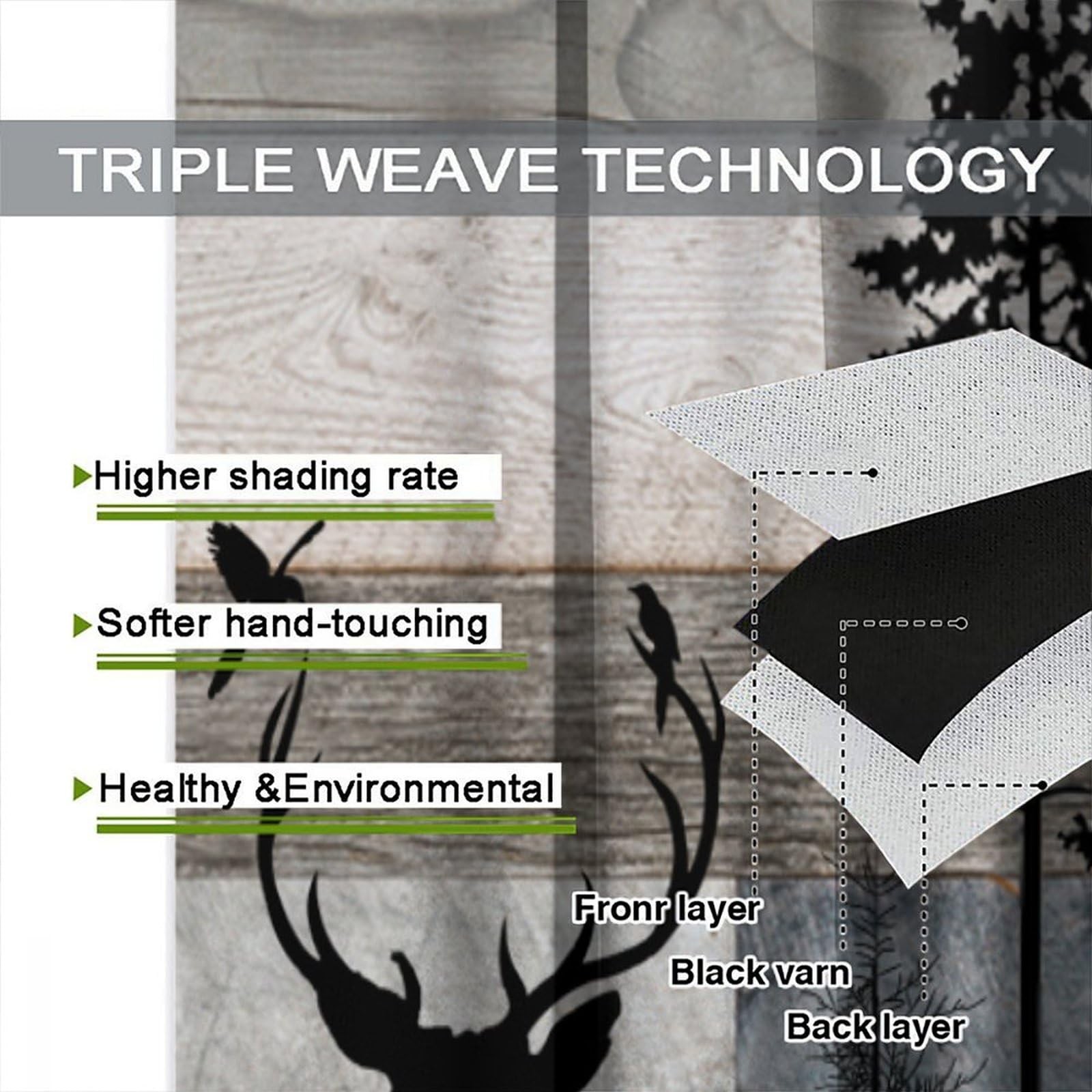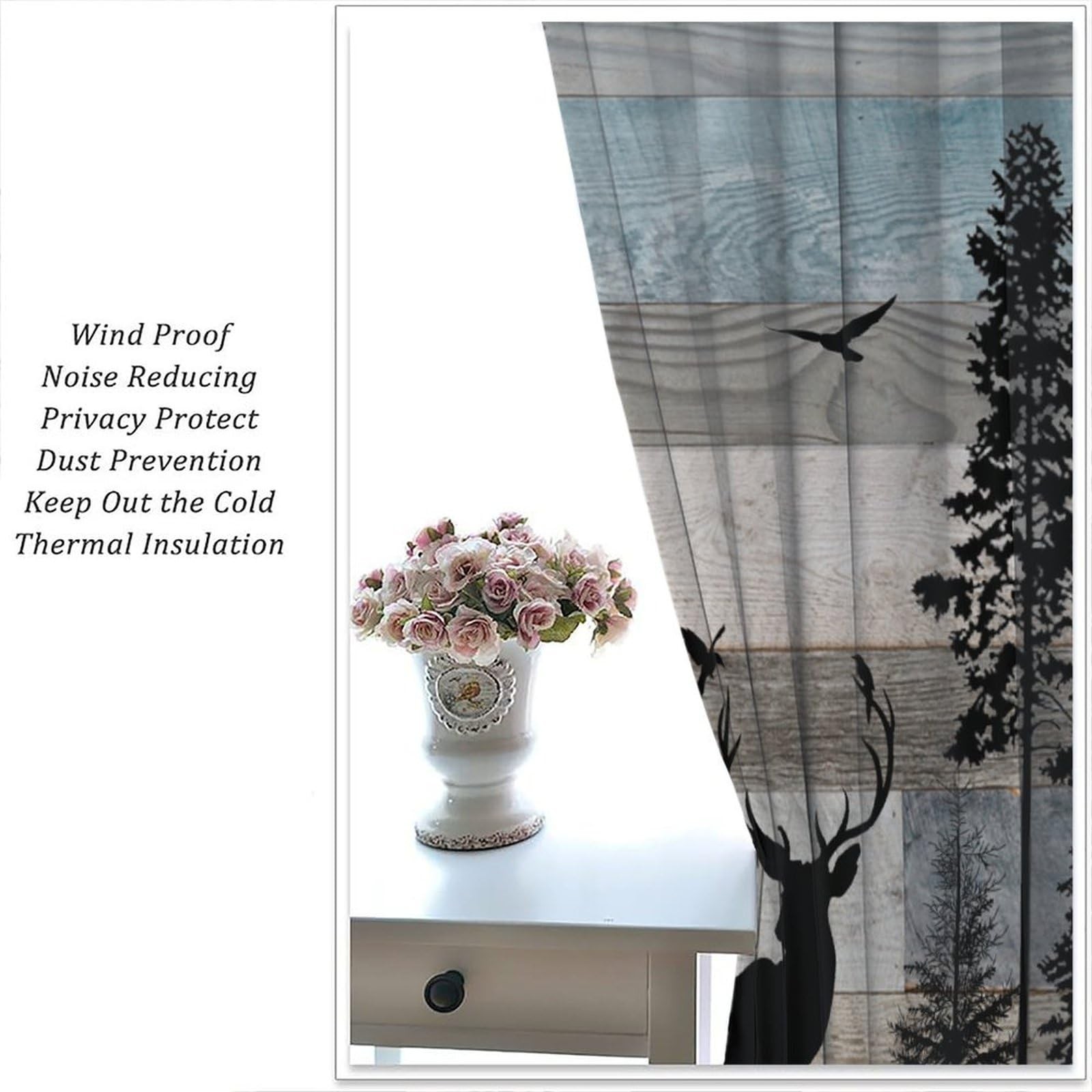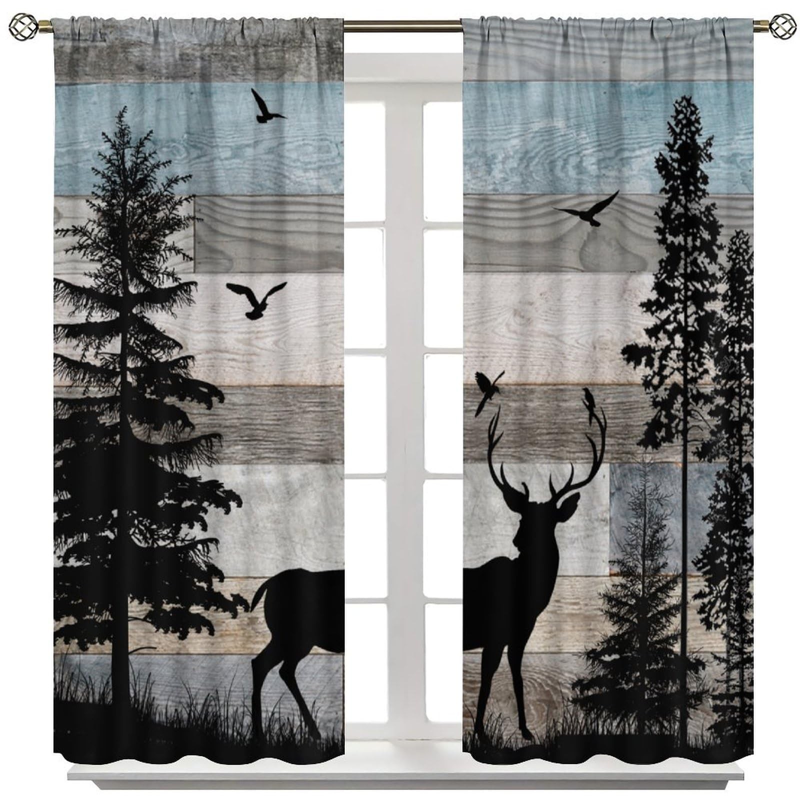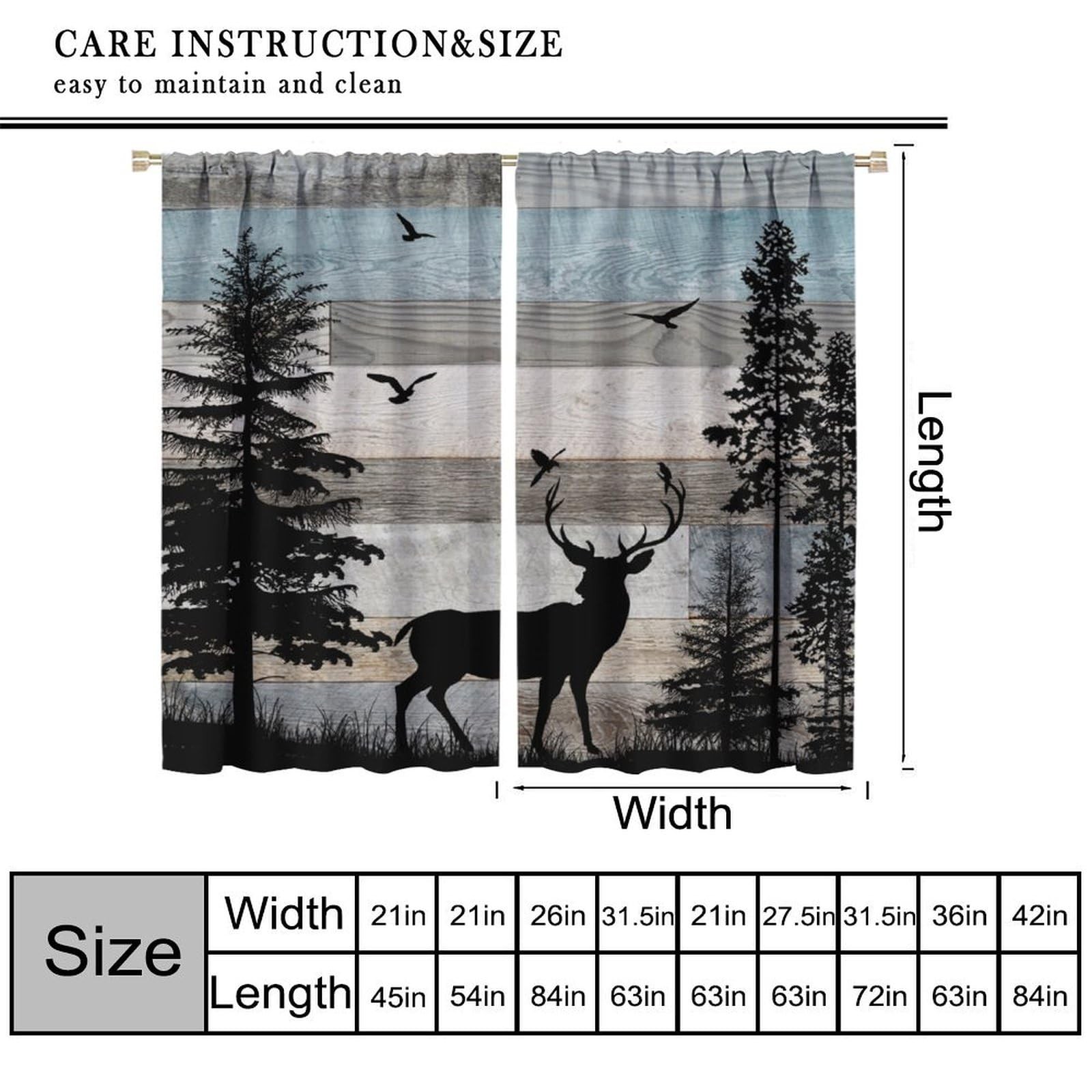 Rustic Deer Curtains, Retro Cabin Farmhouse Country Lodge Blue Brown Wooden B...