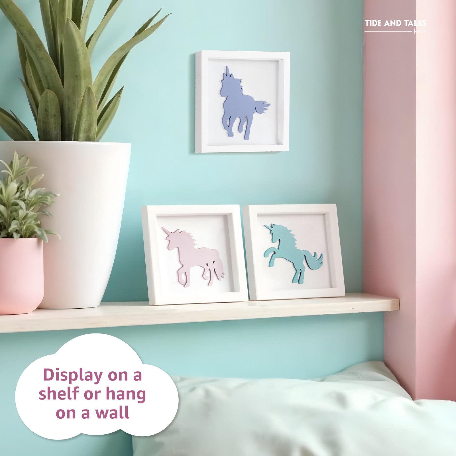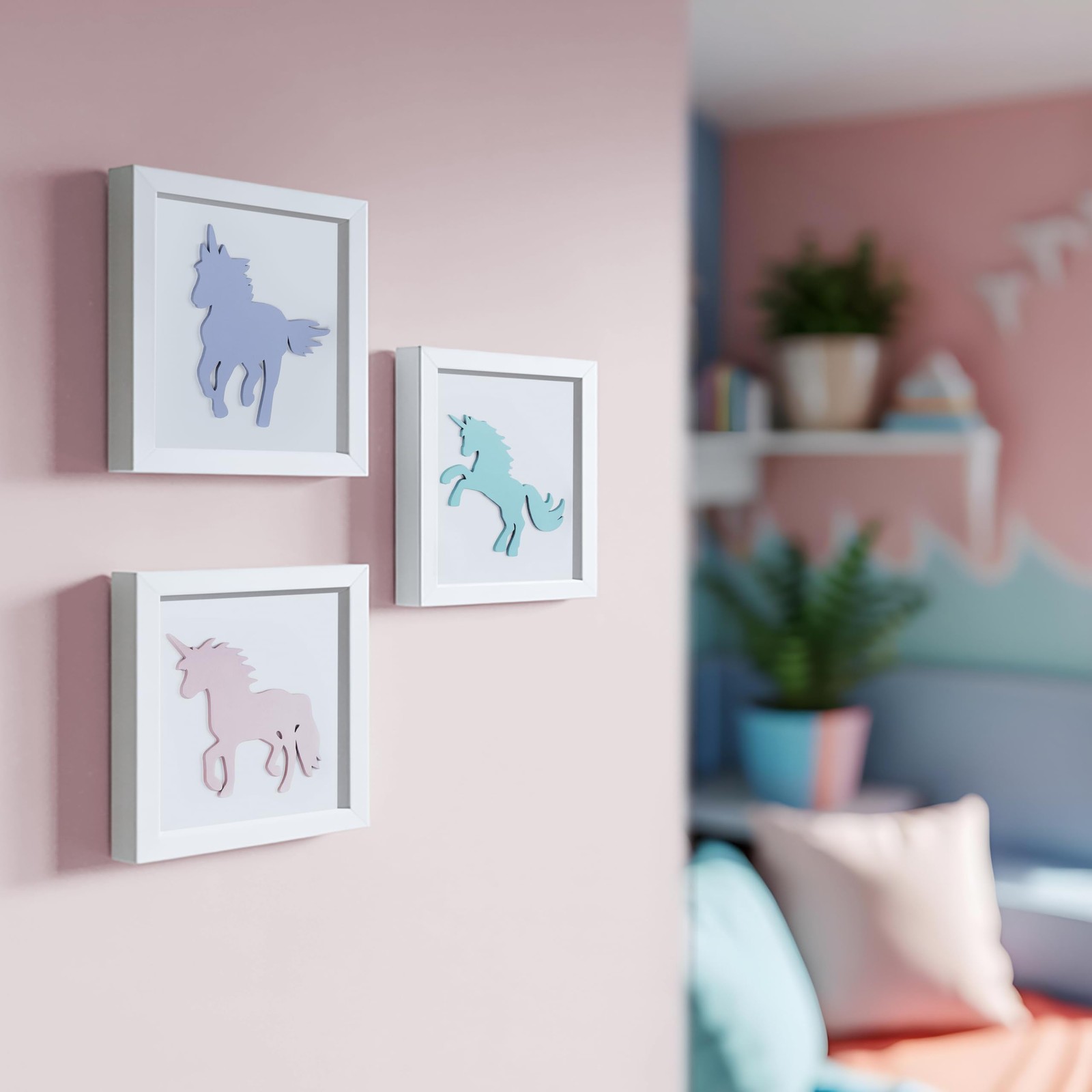 Unicorn Wall Decor Set of 3 3D Framed Unicorn Bedroom Decor for Girls, Past...