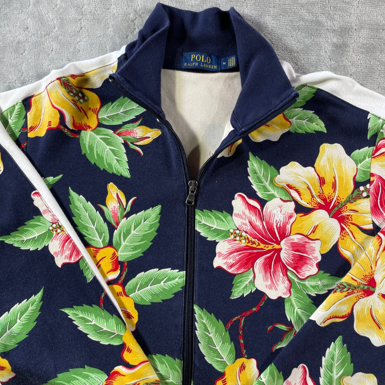 Polo Ralph Lauren Jacket Women Medium Blue Tropical Floral Resort Full Zip Track