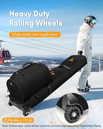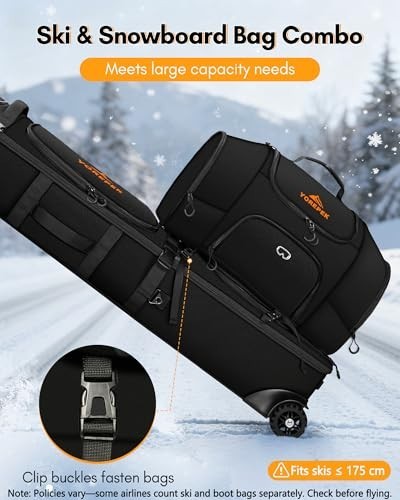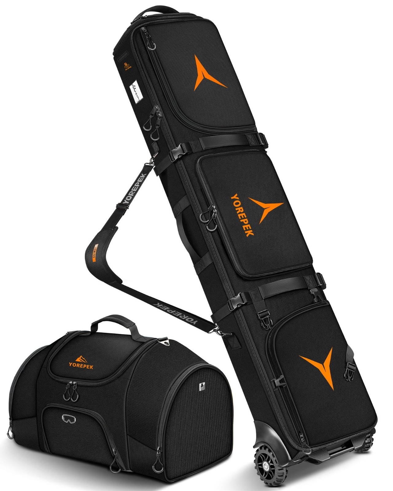 Extendable Double Ski Bag Boot Bag Combo - Holds 2 Pairs, Padded, Wheeled, Air