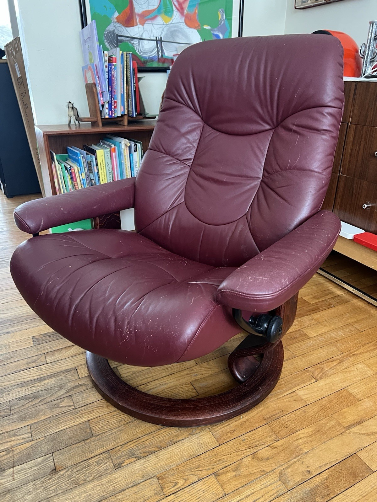 Burgundy Red Leather Stressless Consul Medium Ergonomic Recliner Chair