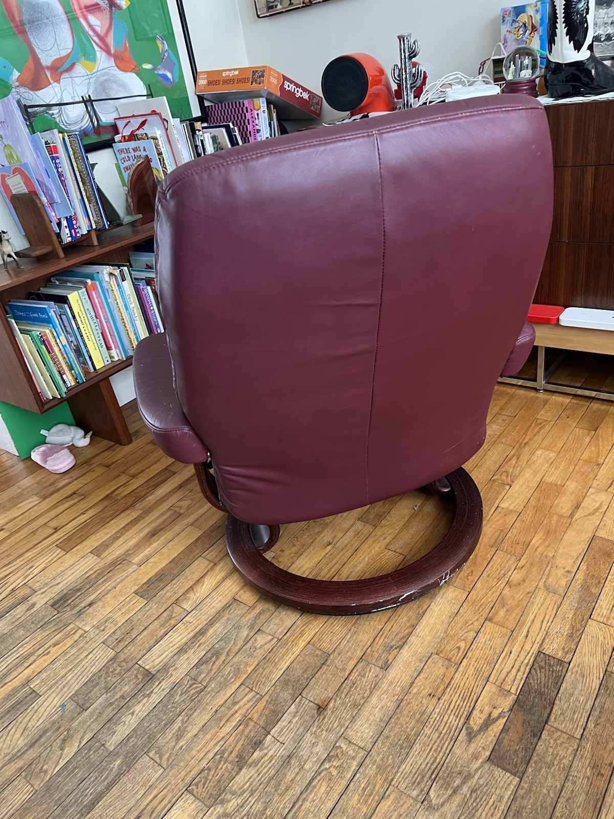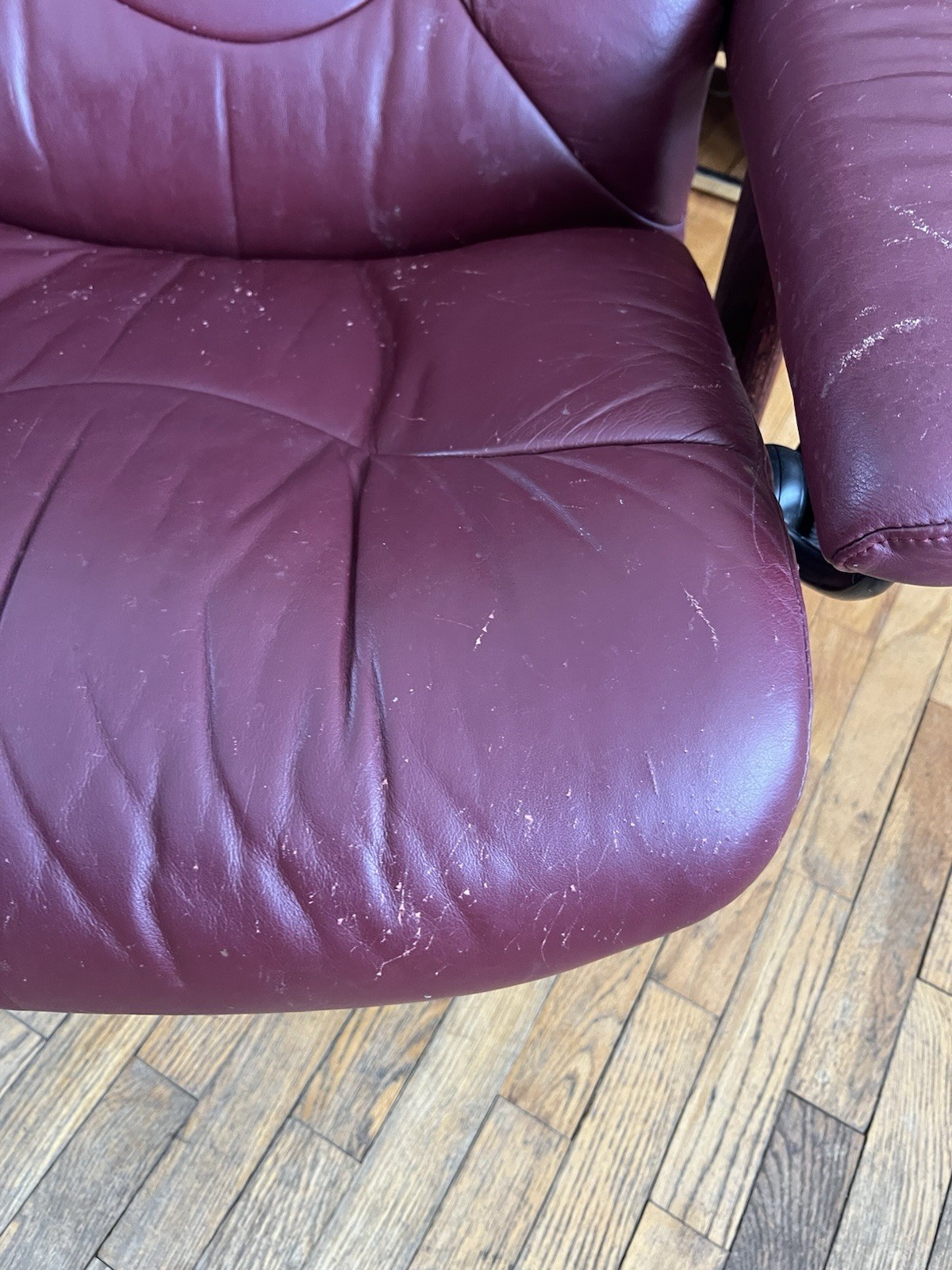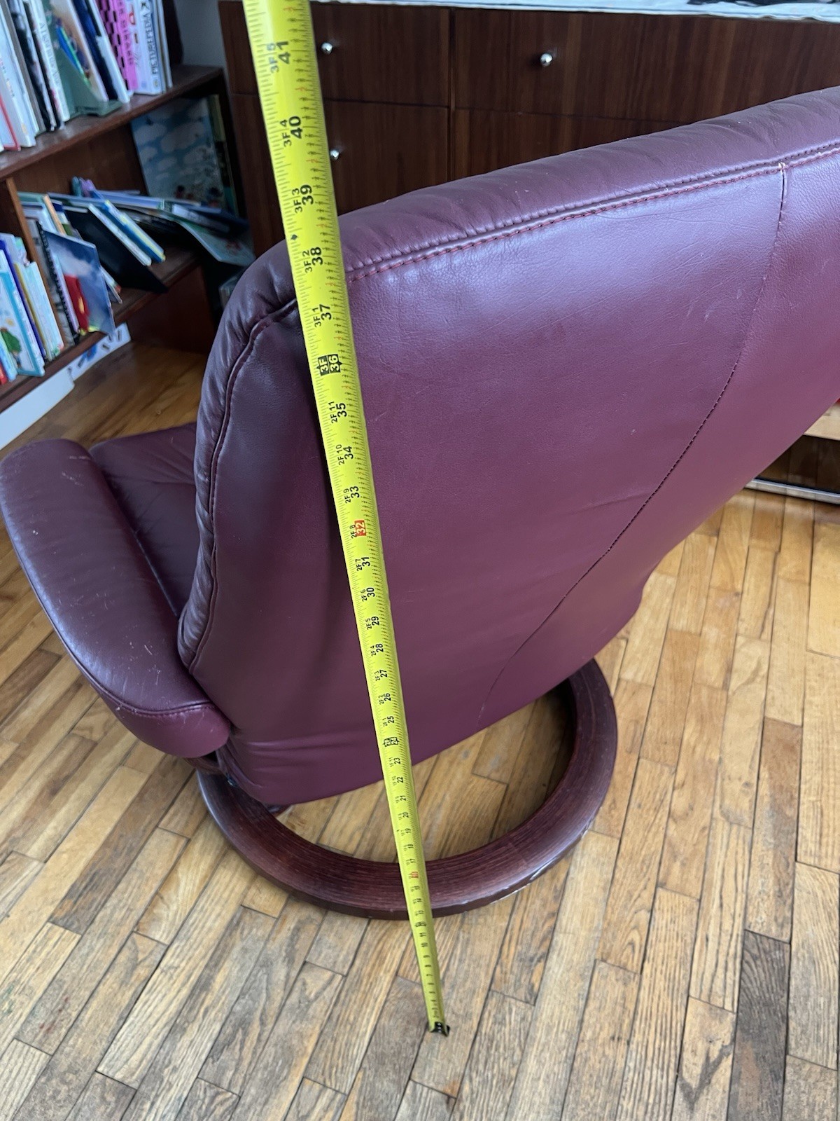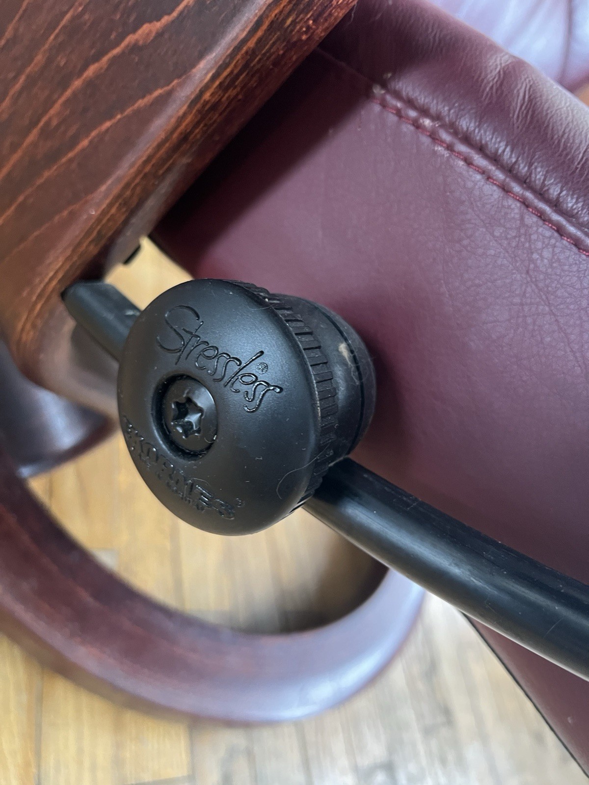 как выглядит Burgundy Red Leather Stressless Consul Medium Ergonomic Recliner Chair фото