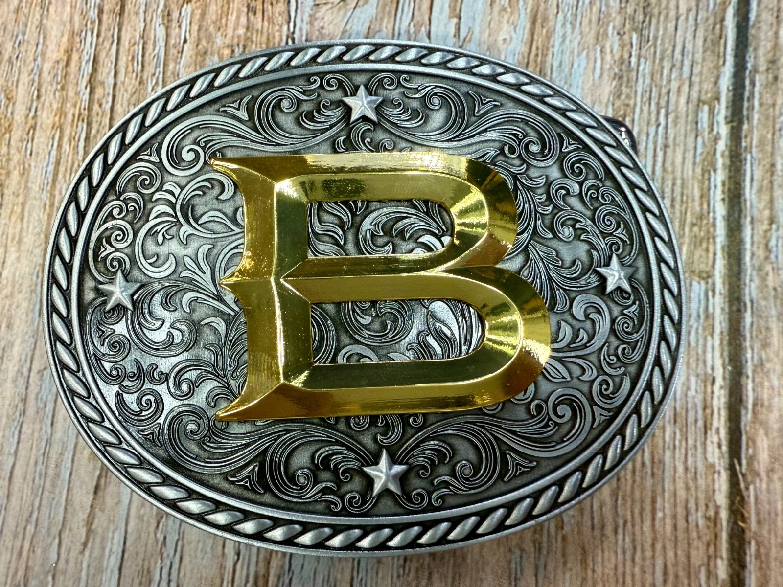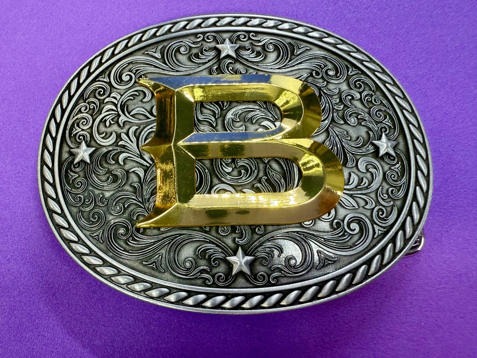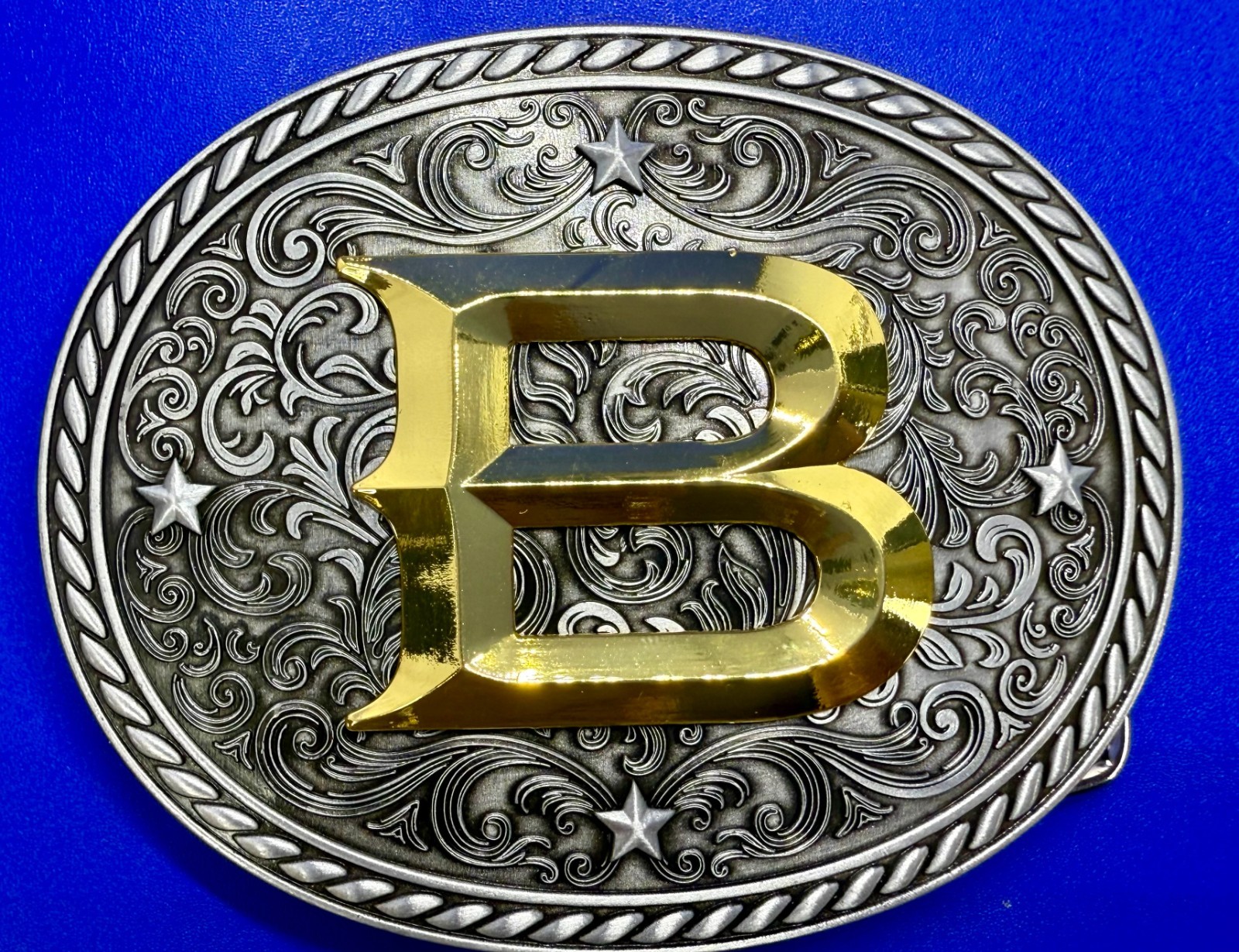• Personalized Initial Letter B Western Gold Silver Color Raised New Belt Buckle