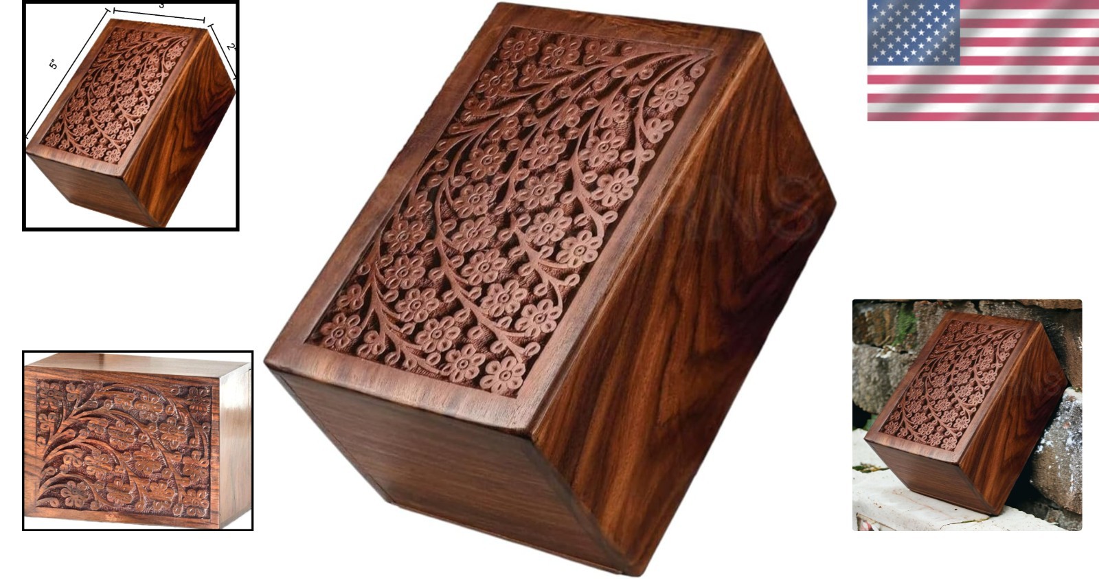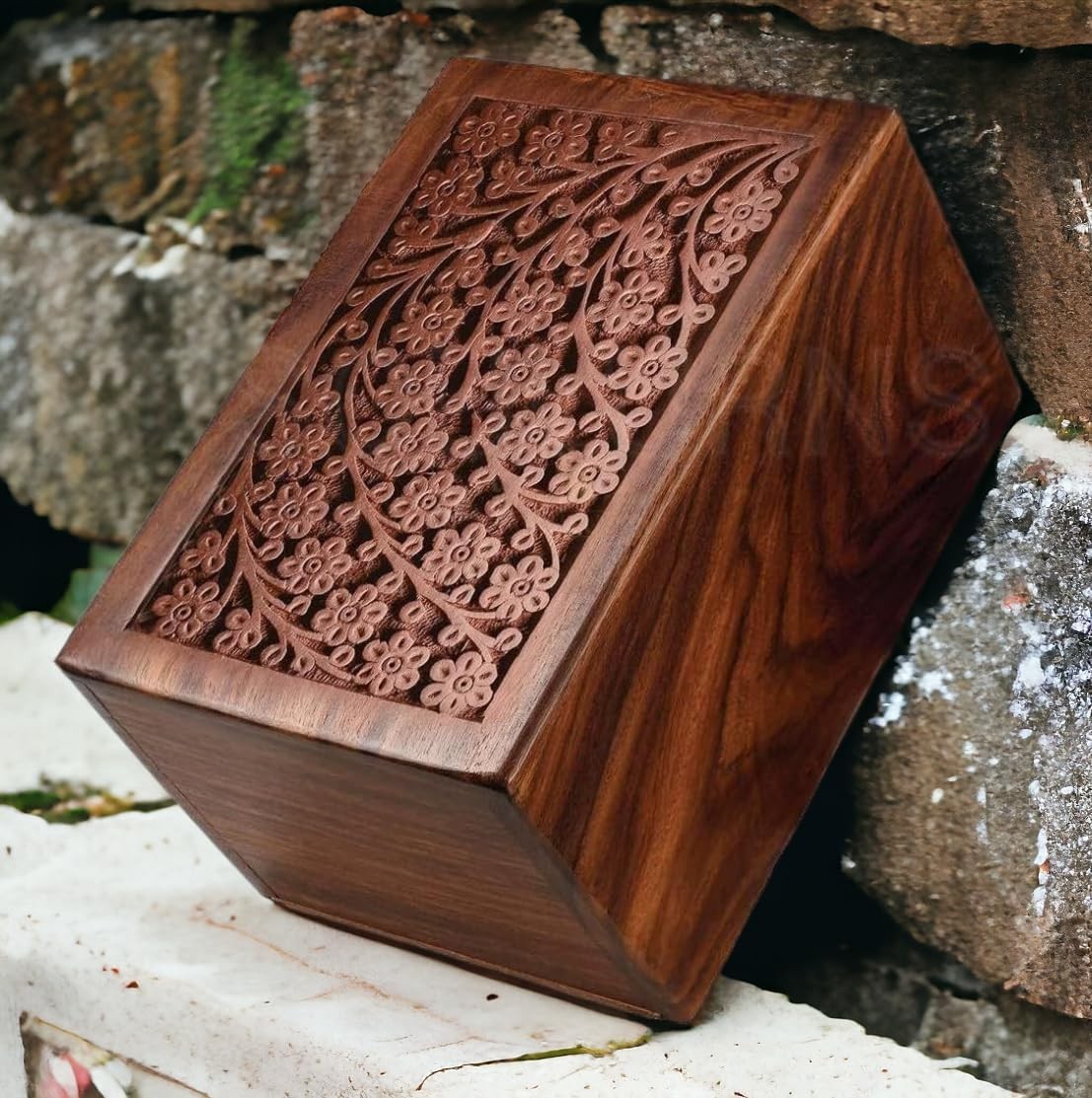 • Customizable Wooden Cremation Urn with Natural Wood Finish and Tree of Life