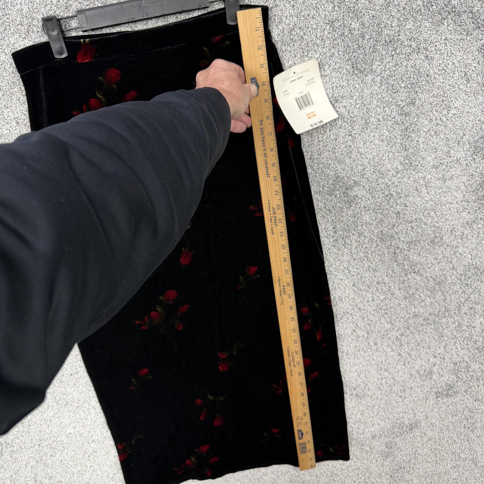 как выглядит Vintage 90s Whimsigoth Skirt Medium Black Velvet Roses Grunge Dark Coquette фото