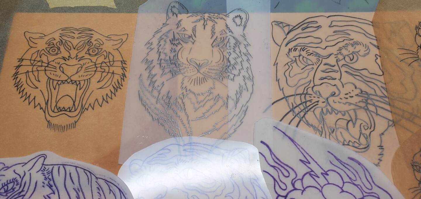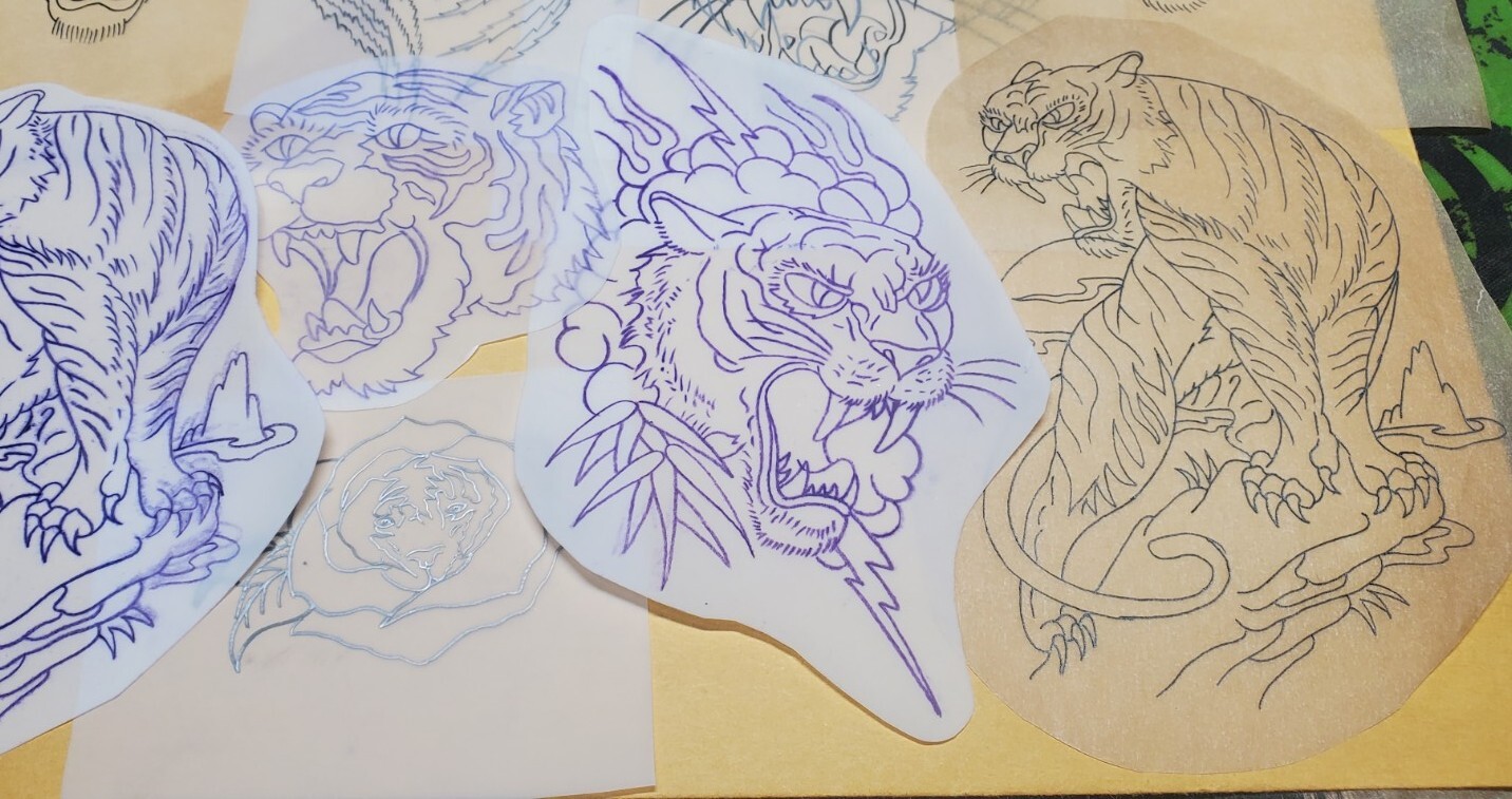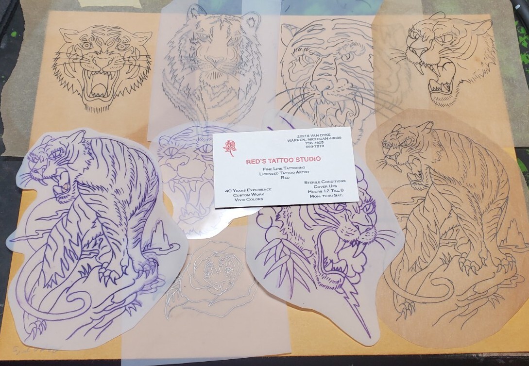 1970s 1980s Acetate Stencil Tigers Used By RED'S TATTOO STUDIO From Flash lot 3