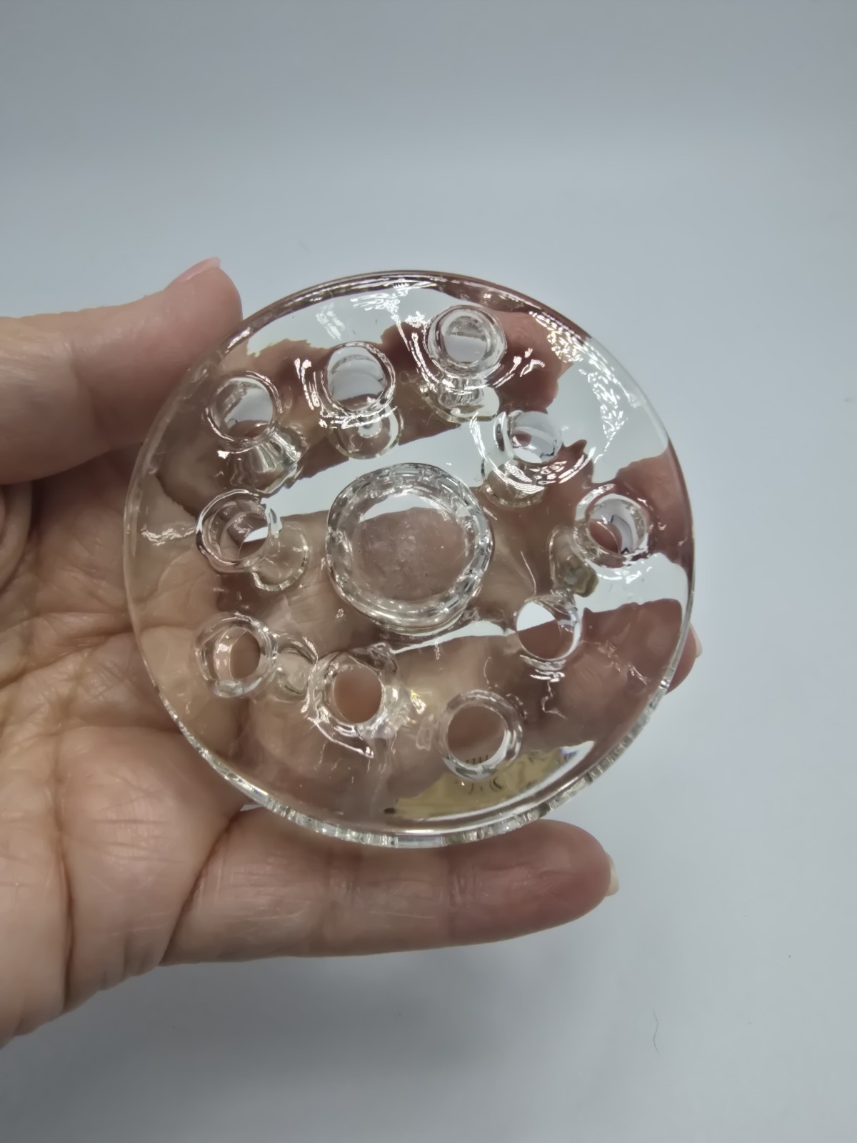 Vintage Clear Flower Frog Depression Glass 10 Hole Vase Frog with Candle Holder