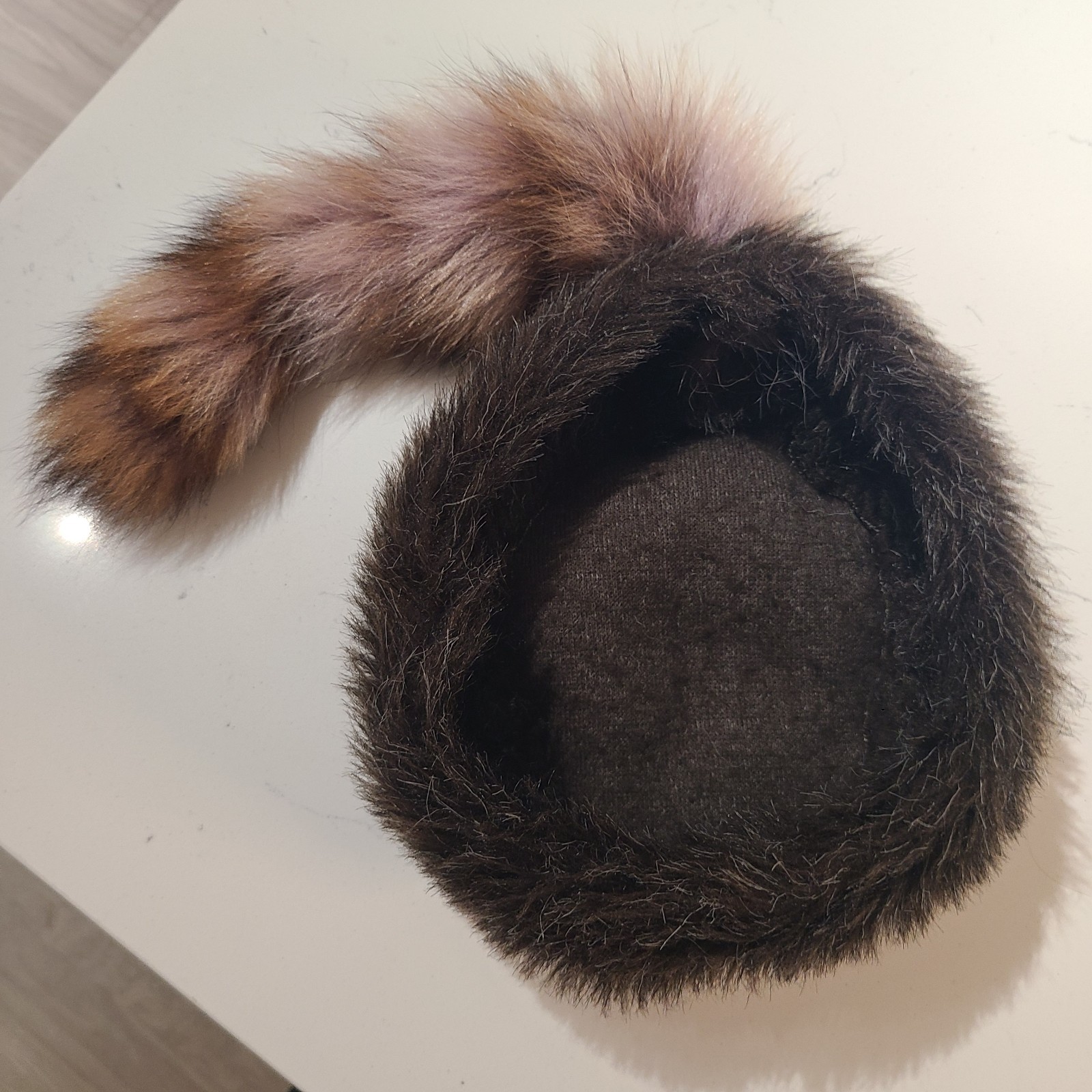 как выглядит Raccoon Tail Hat Brown Youth Size Raccoon Fur Cap фото