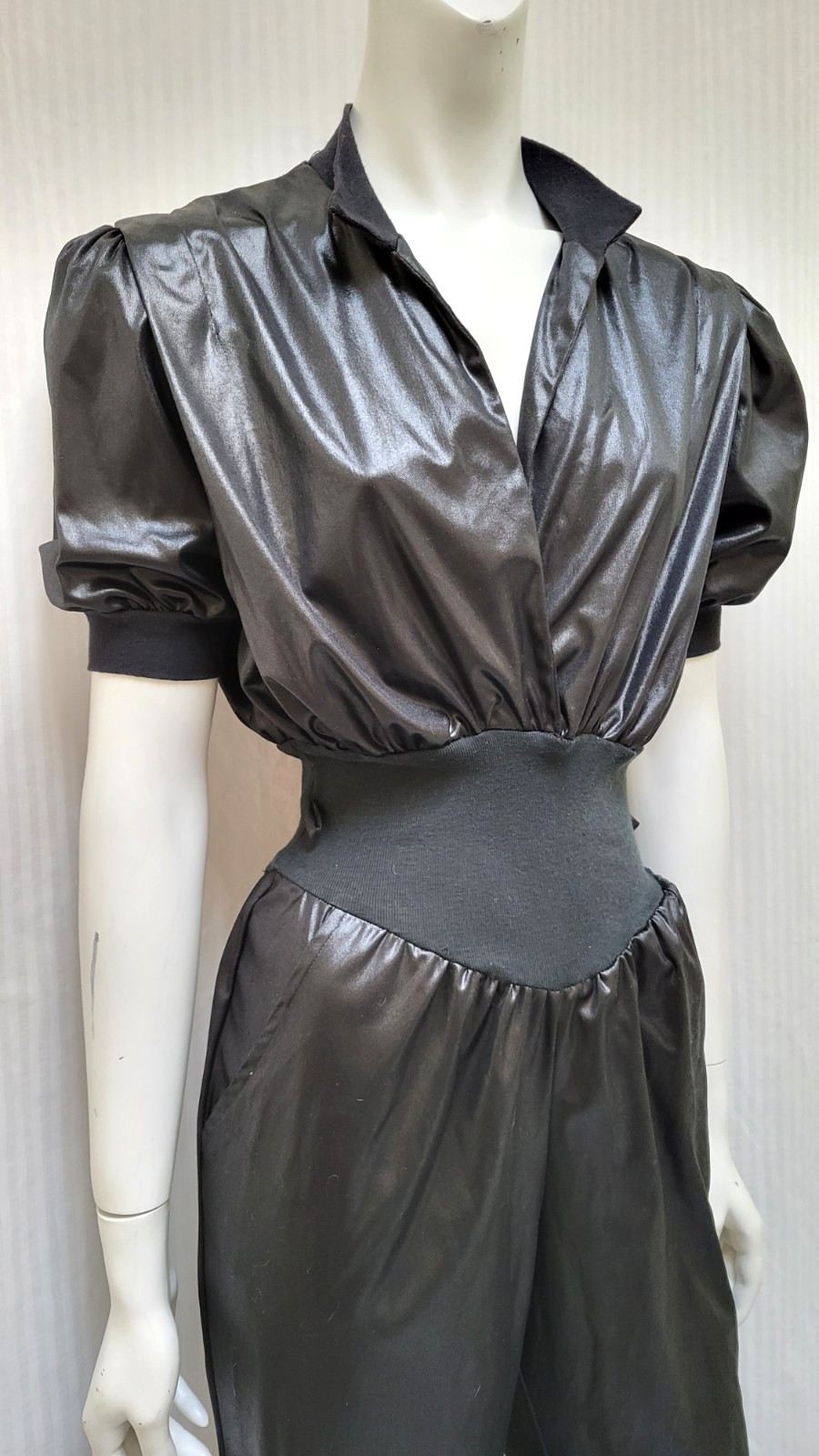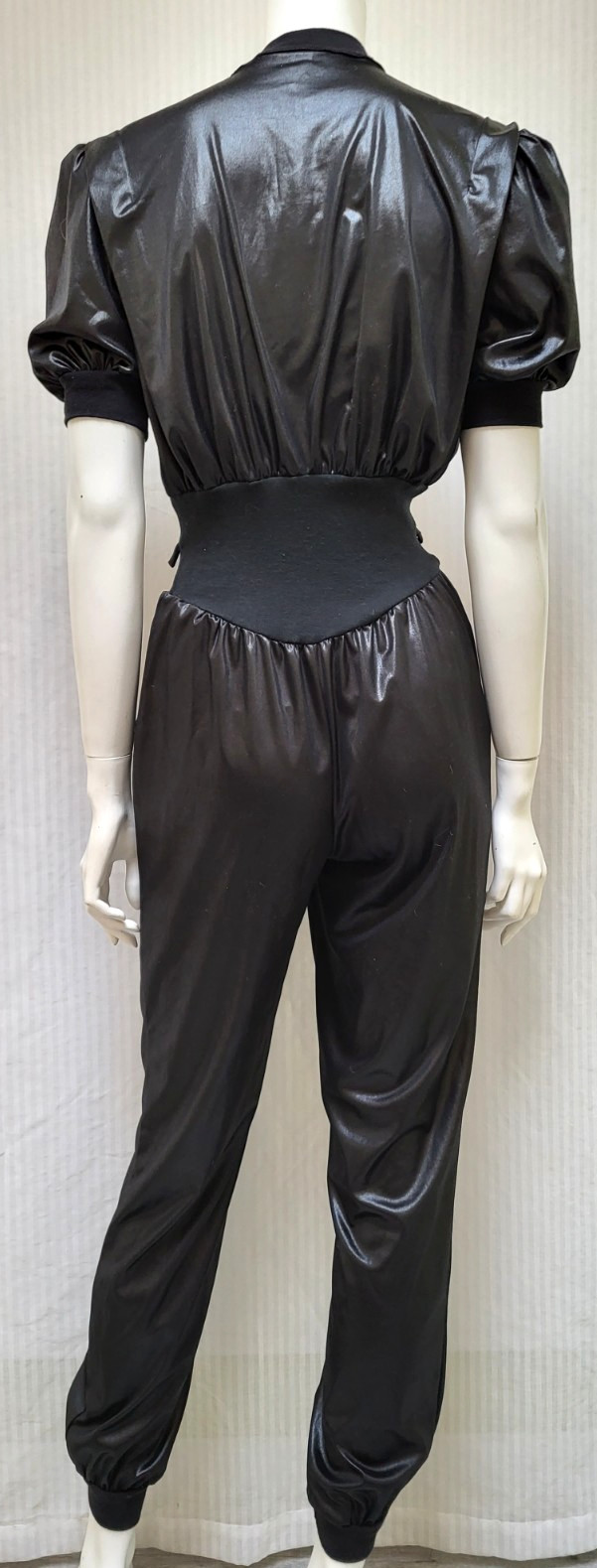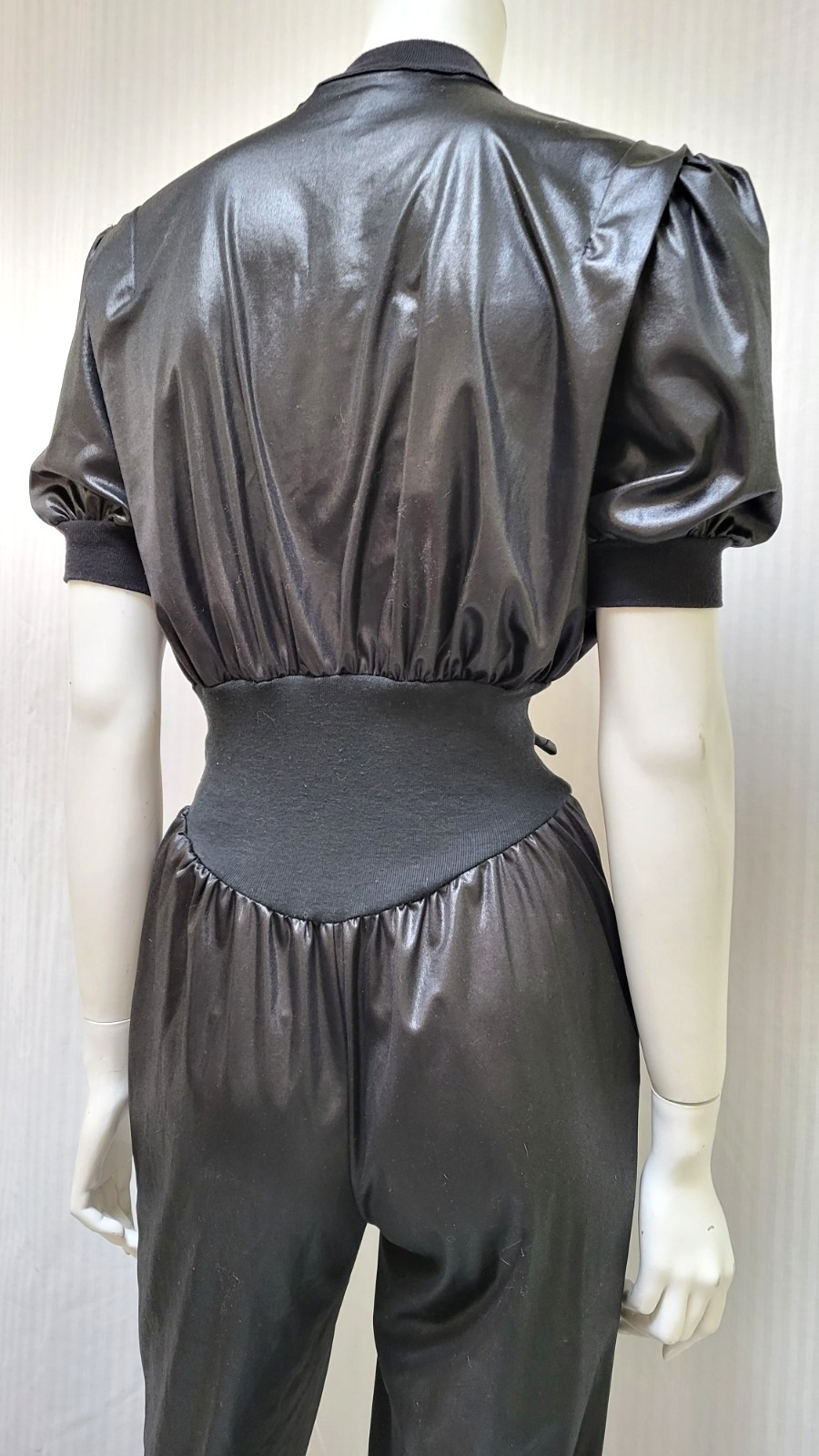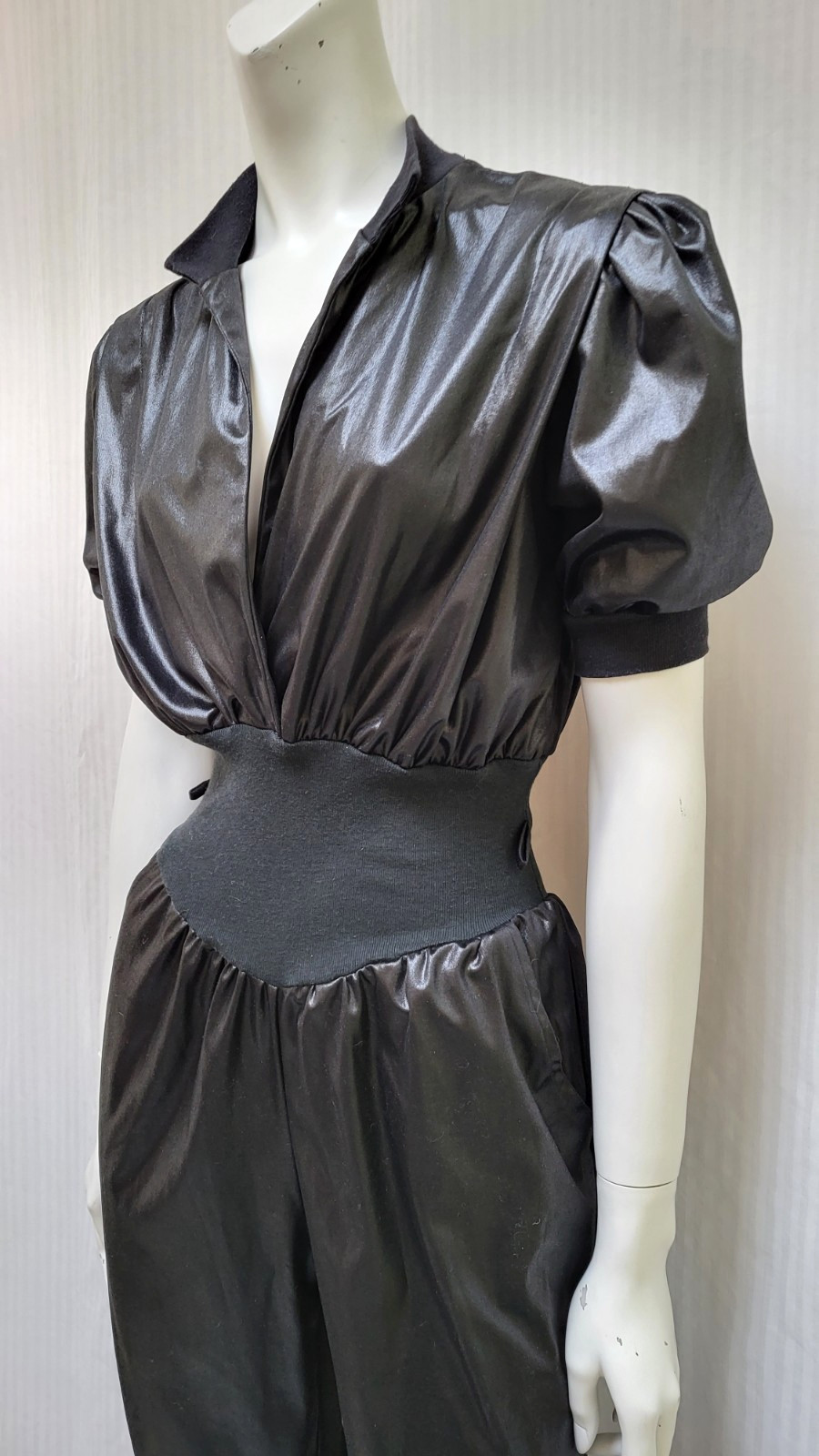 Vintage 1970/80s MARA J JRS of California Black Shiny Disco JUMPSUIT - Size S