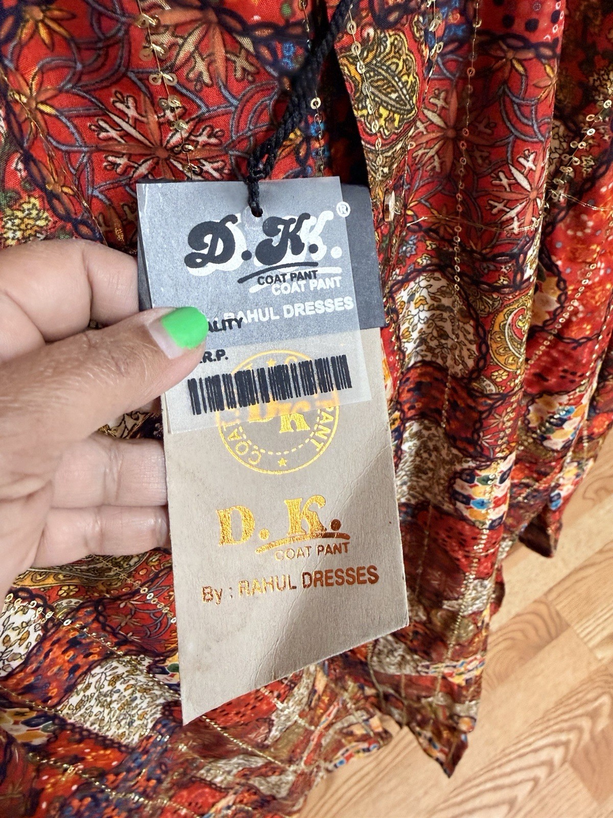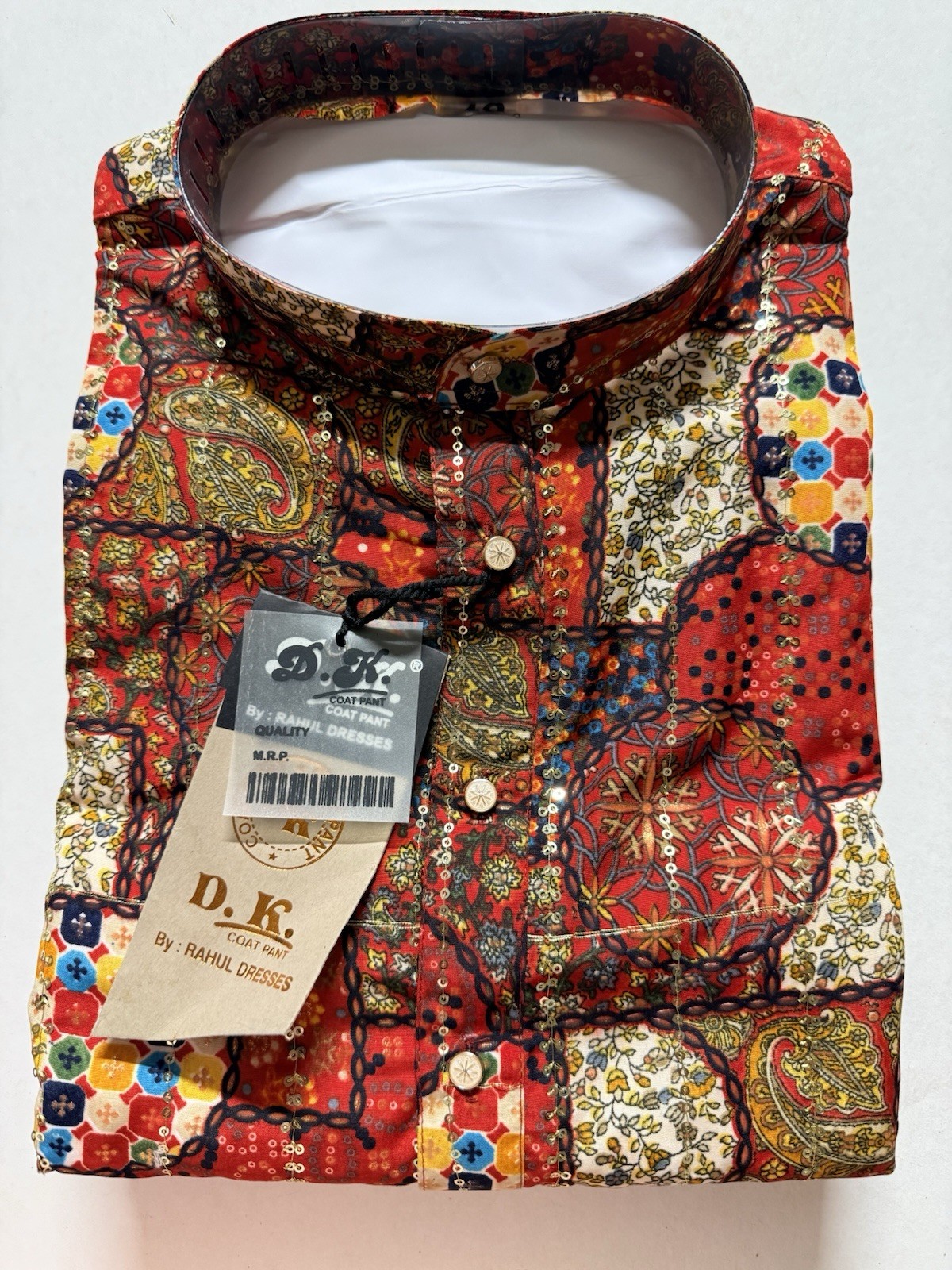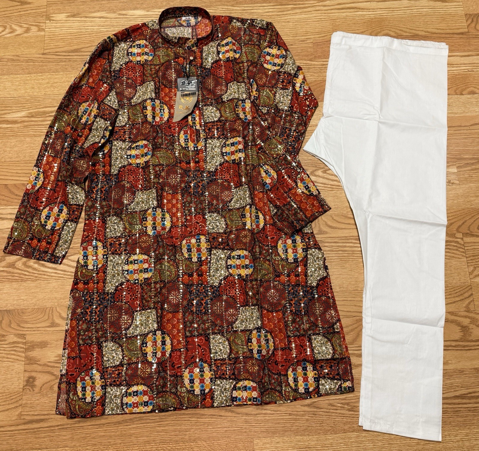 NWT Men's Kurta PAJAMA SET SZ 42 L/XL Red haldi bandhani sequin India-USA sell
