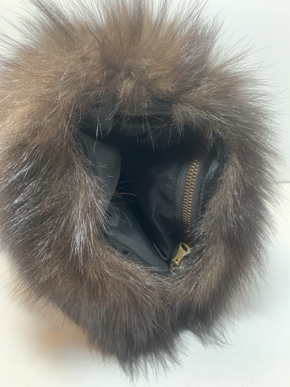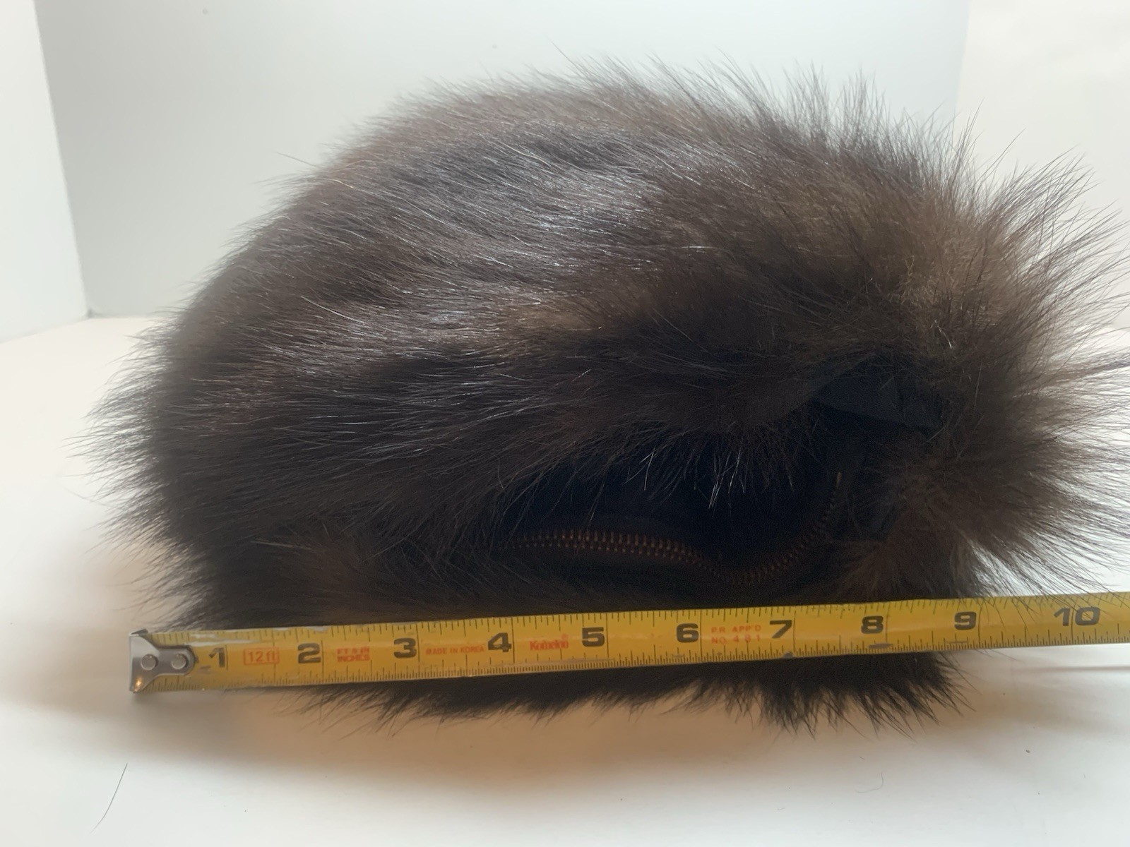 Vintage Fur Muff Hand Warmer Inner Zip Compartment Long Dark Brown Accessory