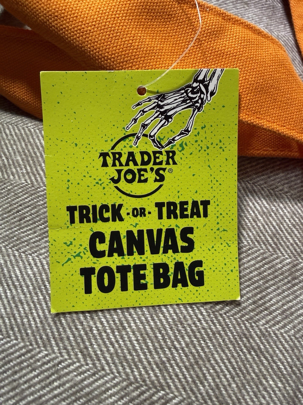 New Trader Joe's Mini Halloween Trick or Treat Canvas Tote Bag in Orange, 2025