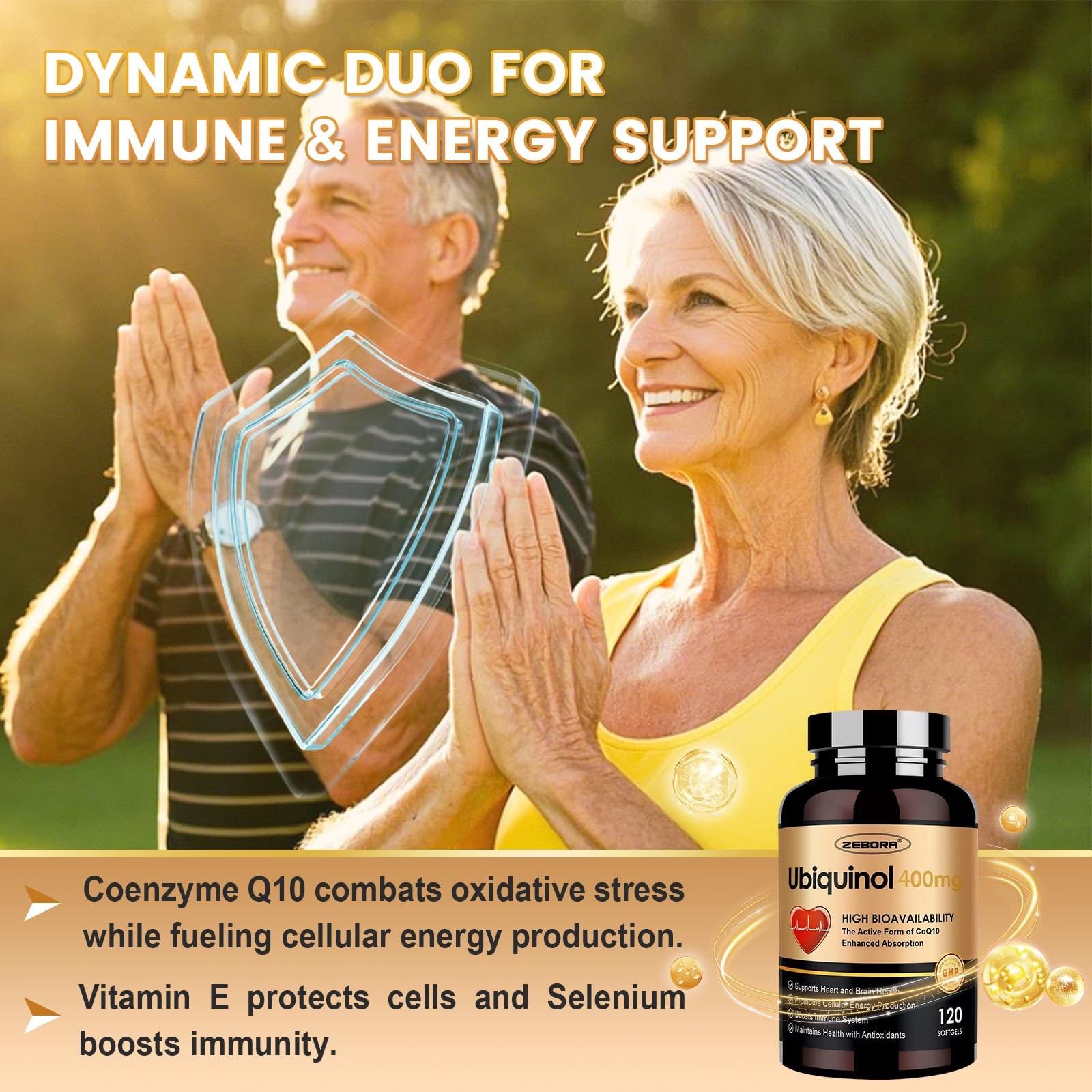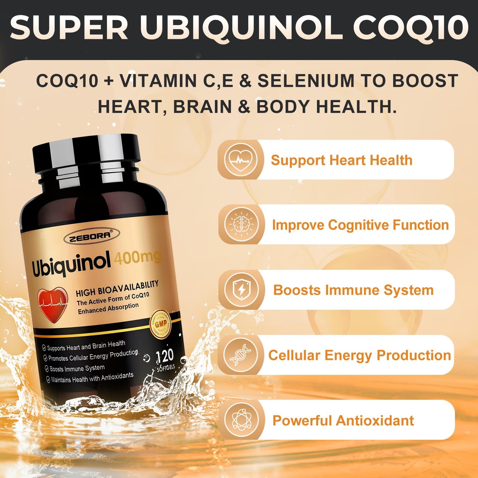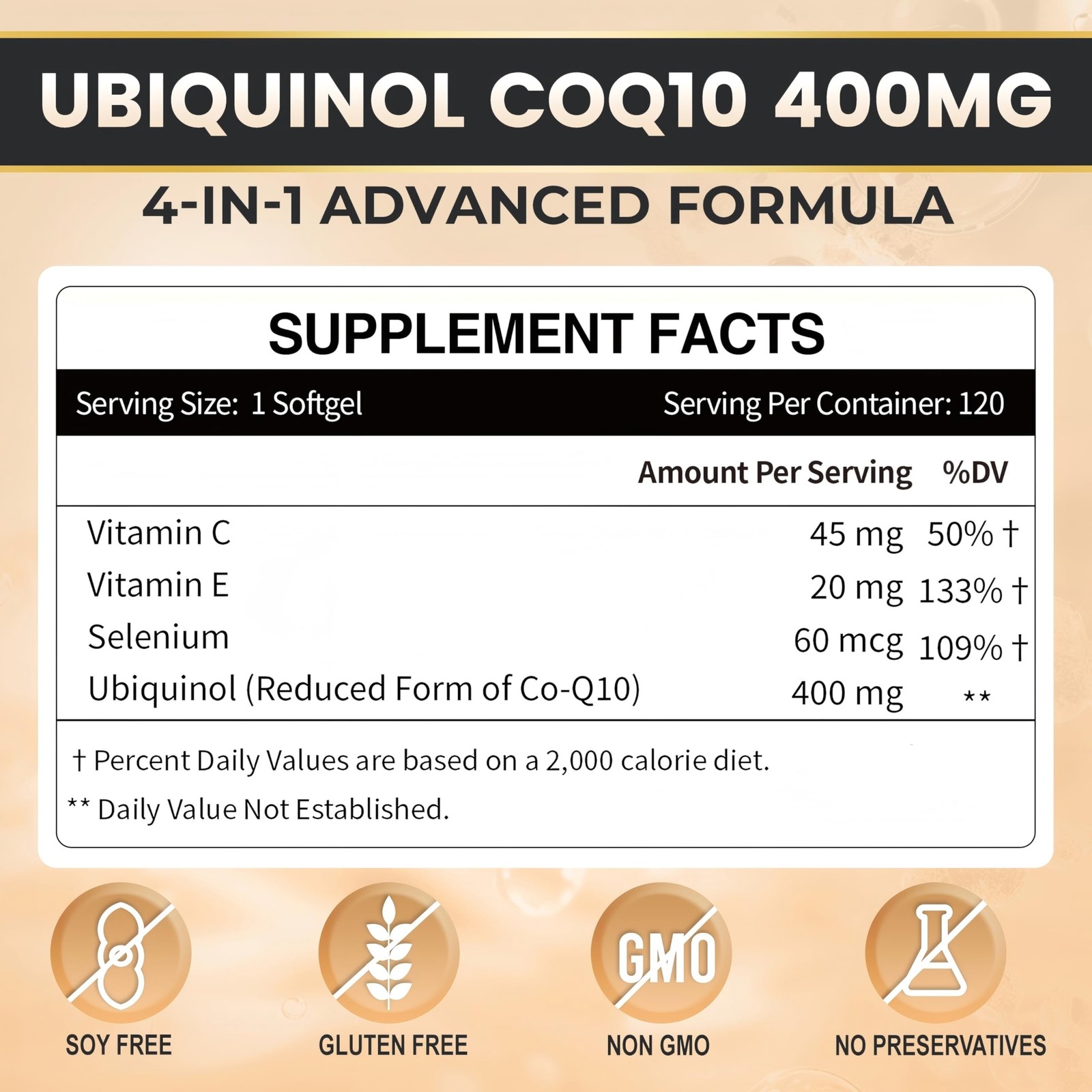 CoQ10 Ubiquinol 400mg Softgels with Vitamin C, E, Selenium - Heart Health
