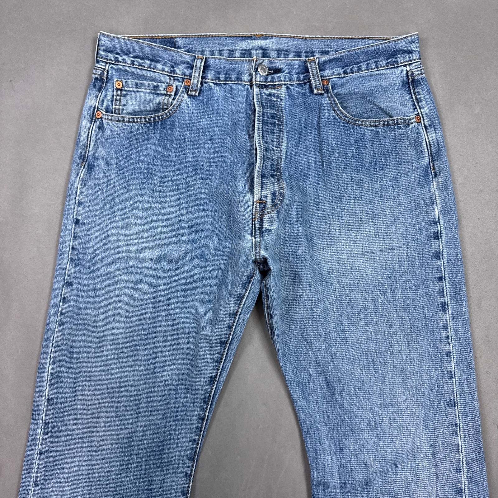 Levis 501 Jeans Mens 36x36 Blue Denim Pants Faded Button Fly Distressed Straight