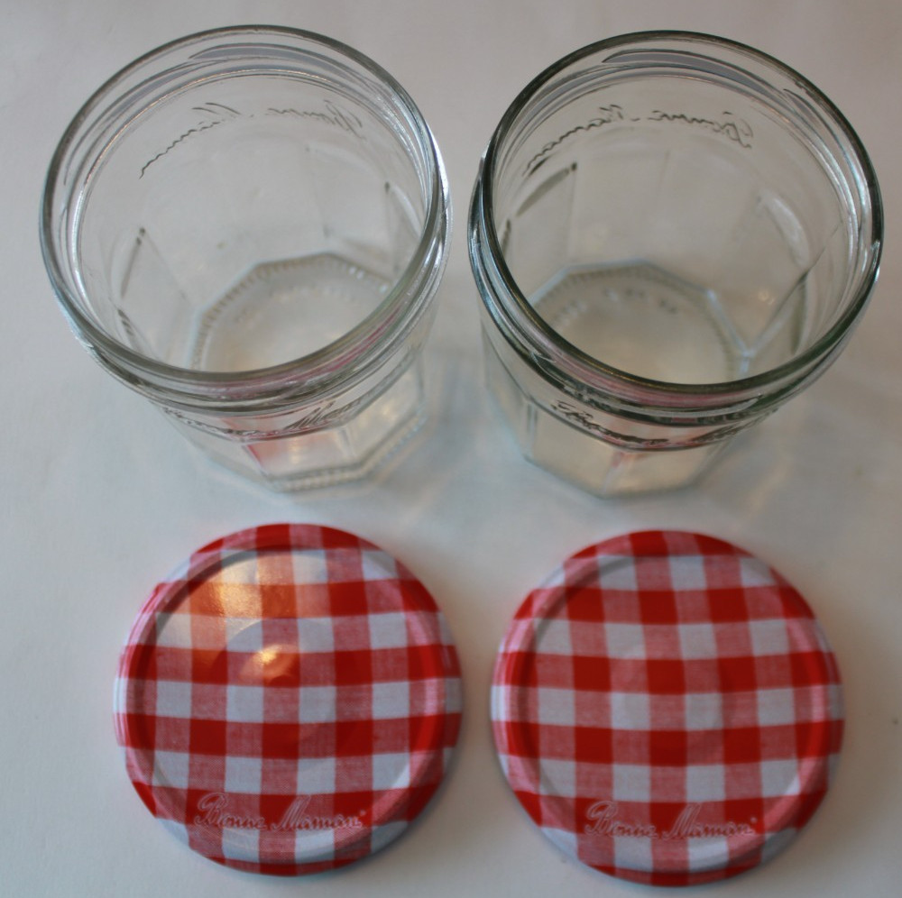 Lot 2 Empty Bonne Maman 13 oz Glass Jam/Jelly Jars w/ Red Plaid Lid for Crafts