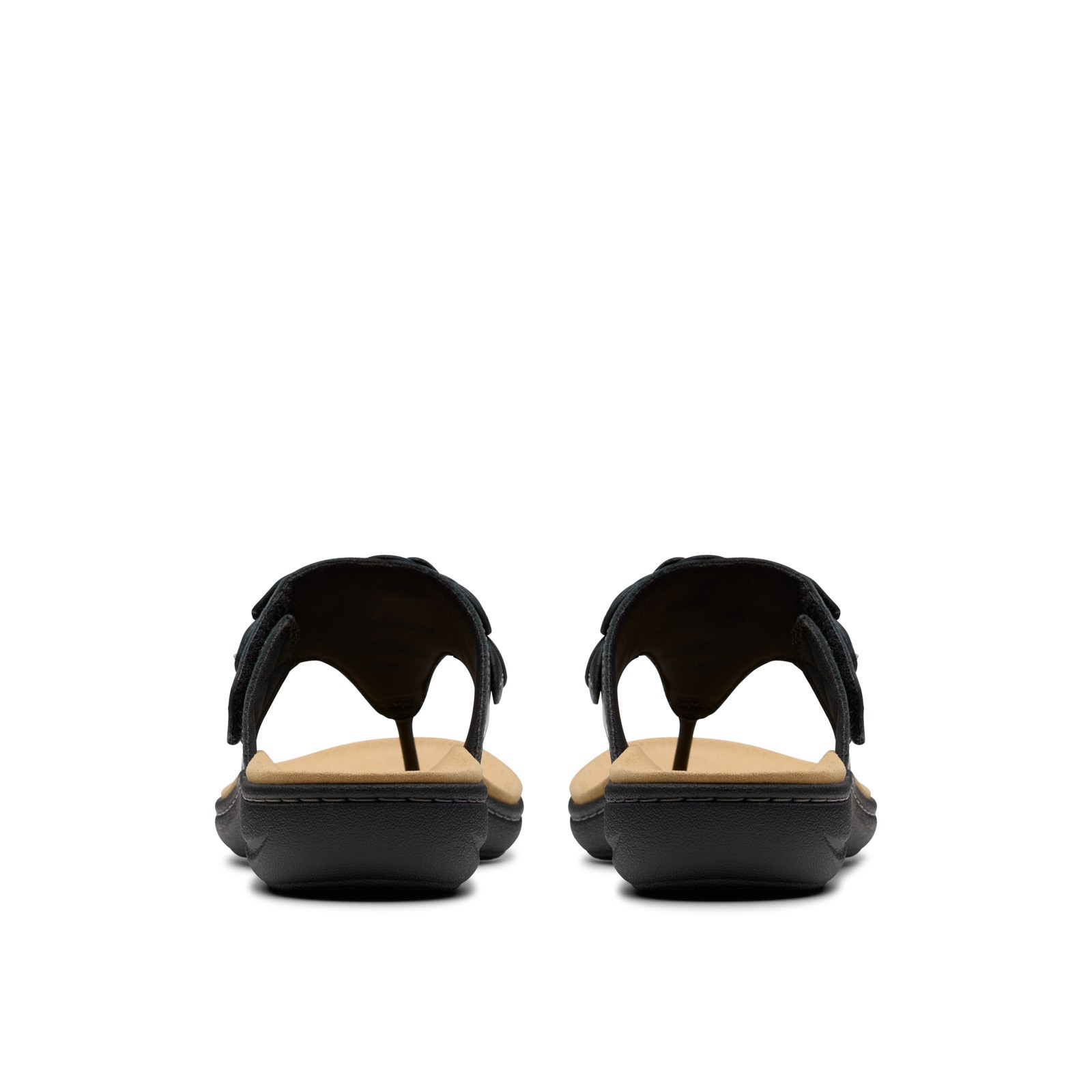 Clarks Laurieann Palm 26181702 Womens Black Leather Flip-Flops Sandals Shoes