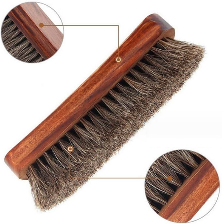 1Pcs Professional Wooden Handle Shoe Brush Horsehair Bristles Hair Shoe
