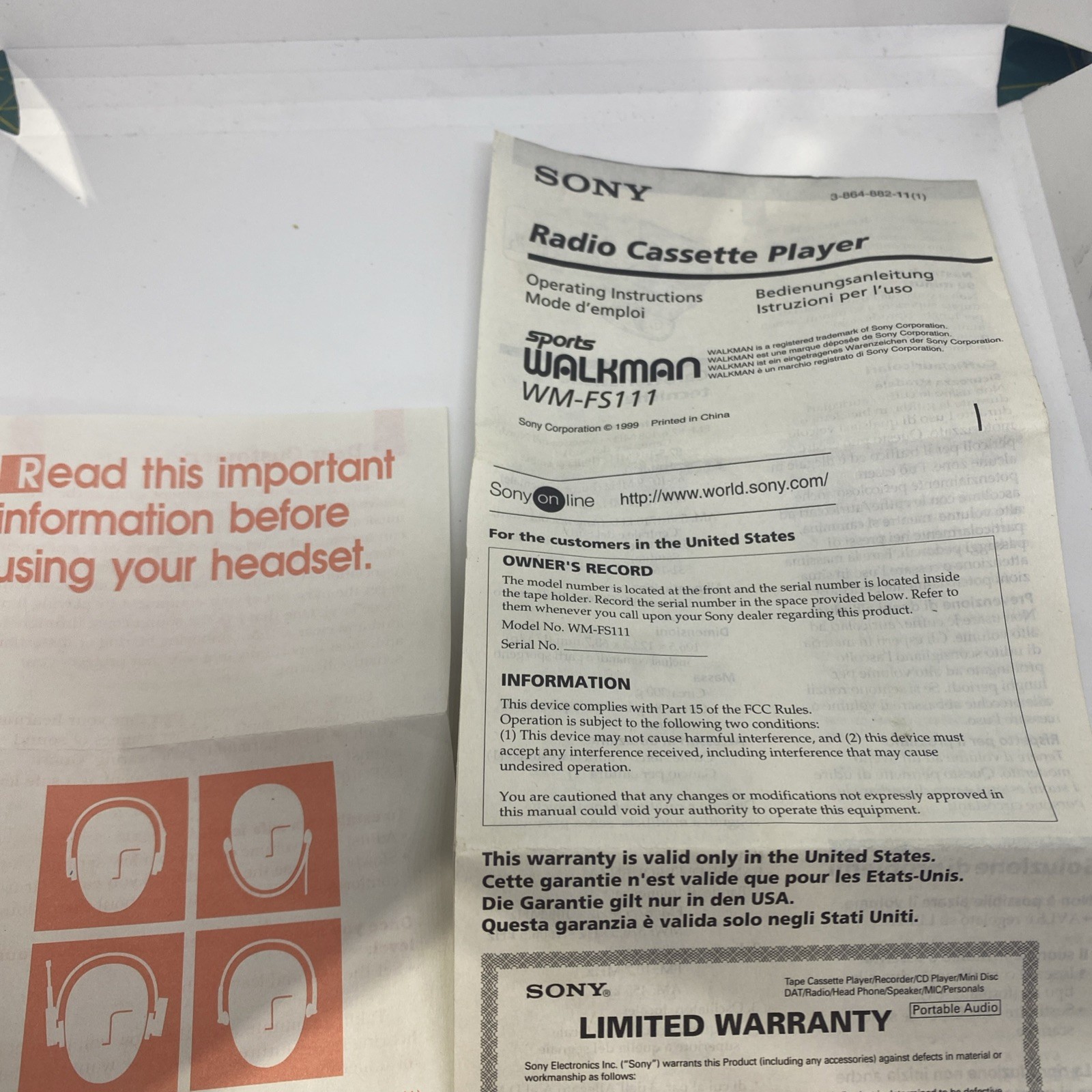 Parts only Sony Sports Walkman WM-FS111 Cassette Player FM/AM Headphones READ