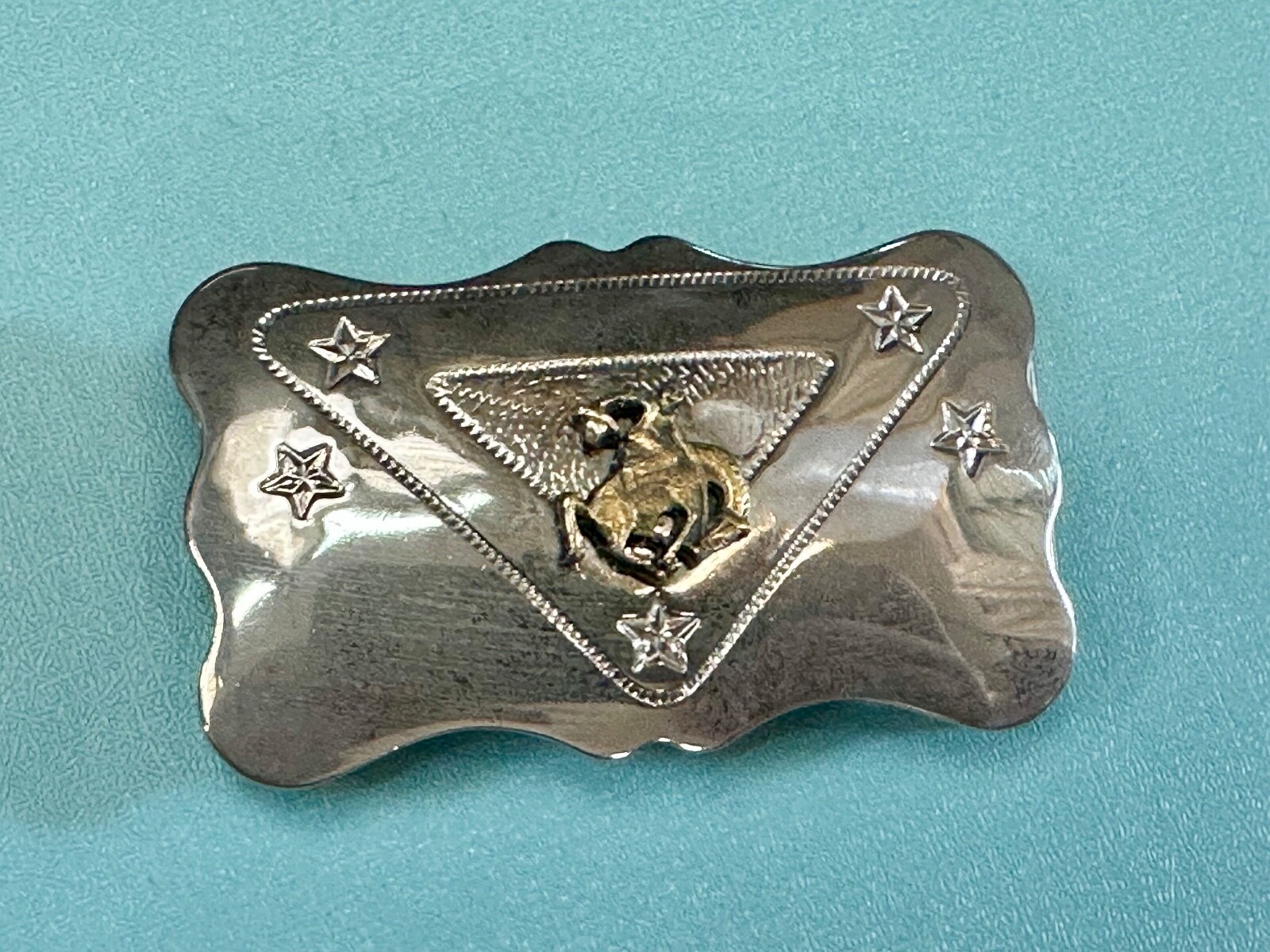Vintage Cowboy Saddle Bronc western two tone belt buckle with star accents