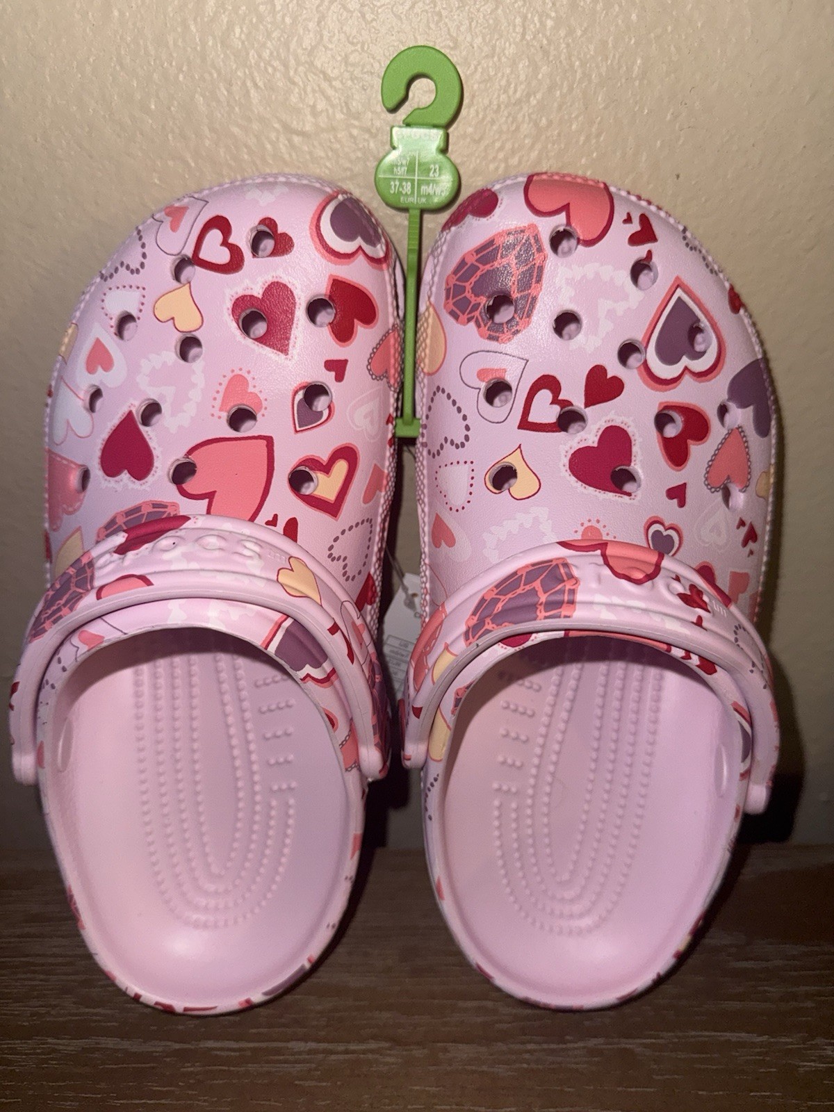 Crocs Classic Valentines Day Clog Pink w/ Multi Hearts Love Womens Size7