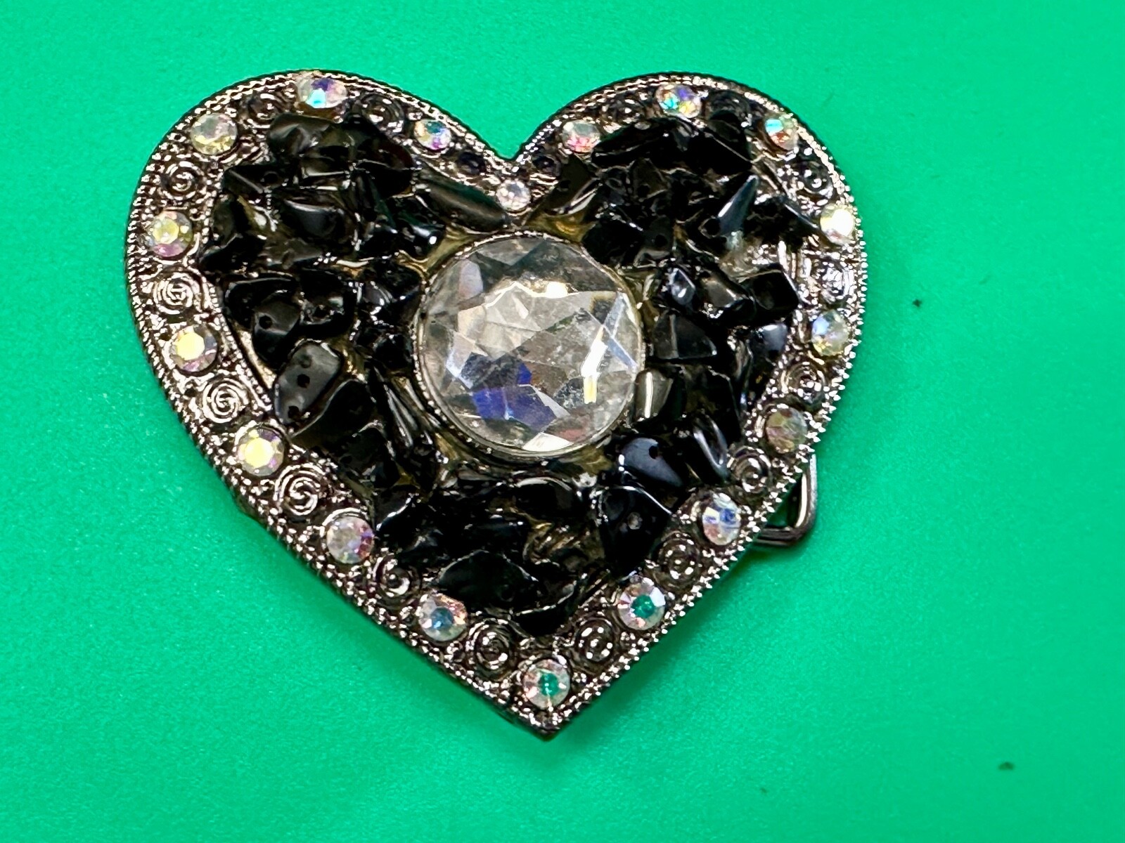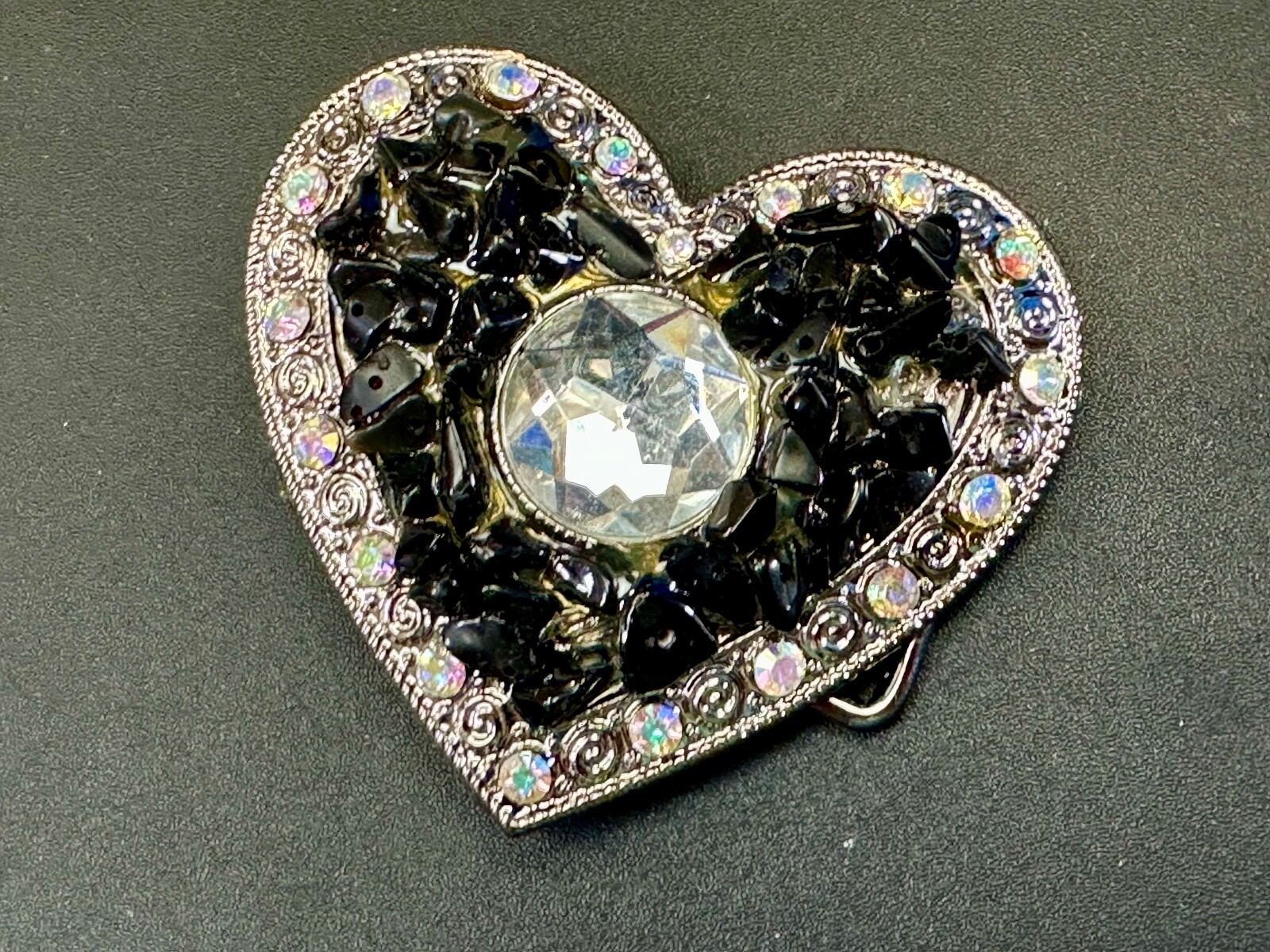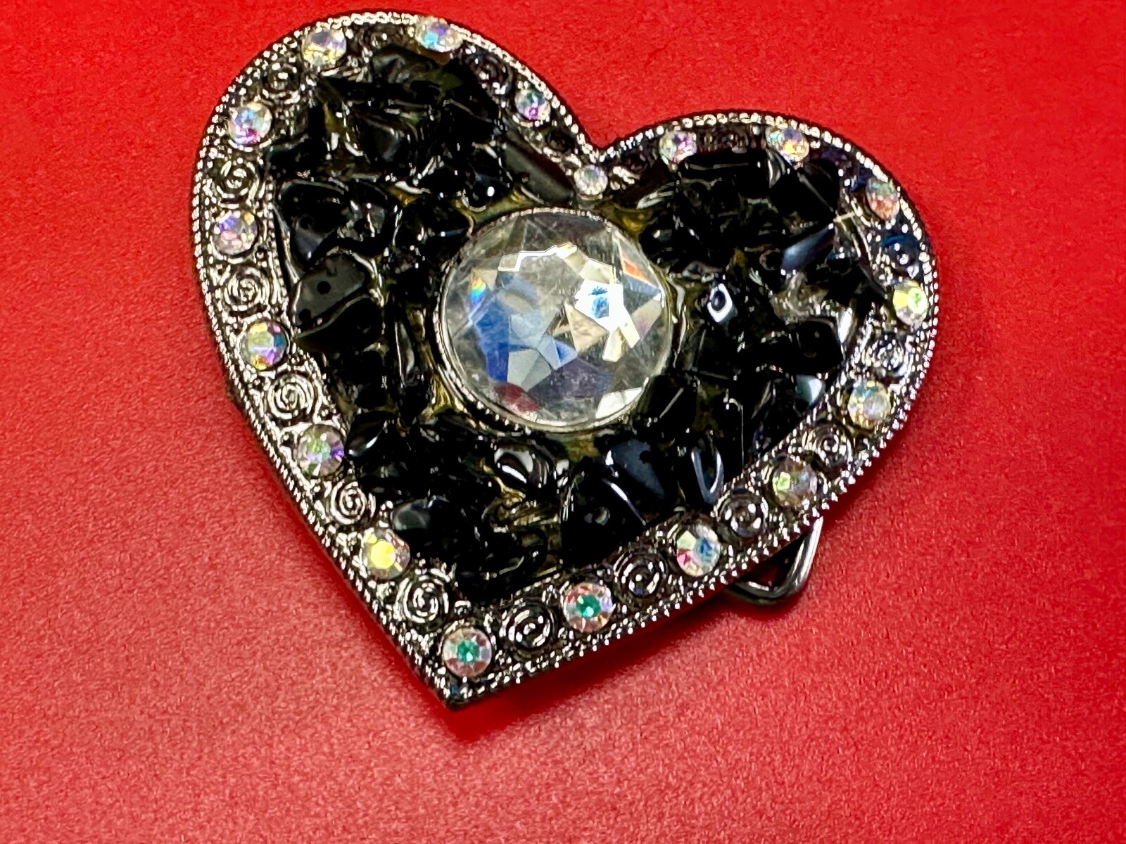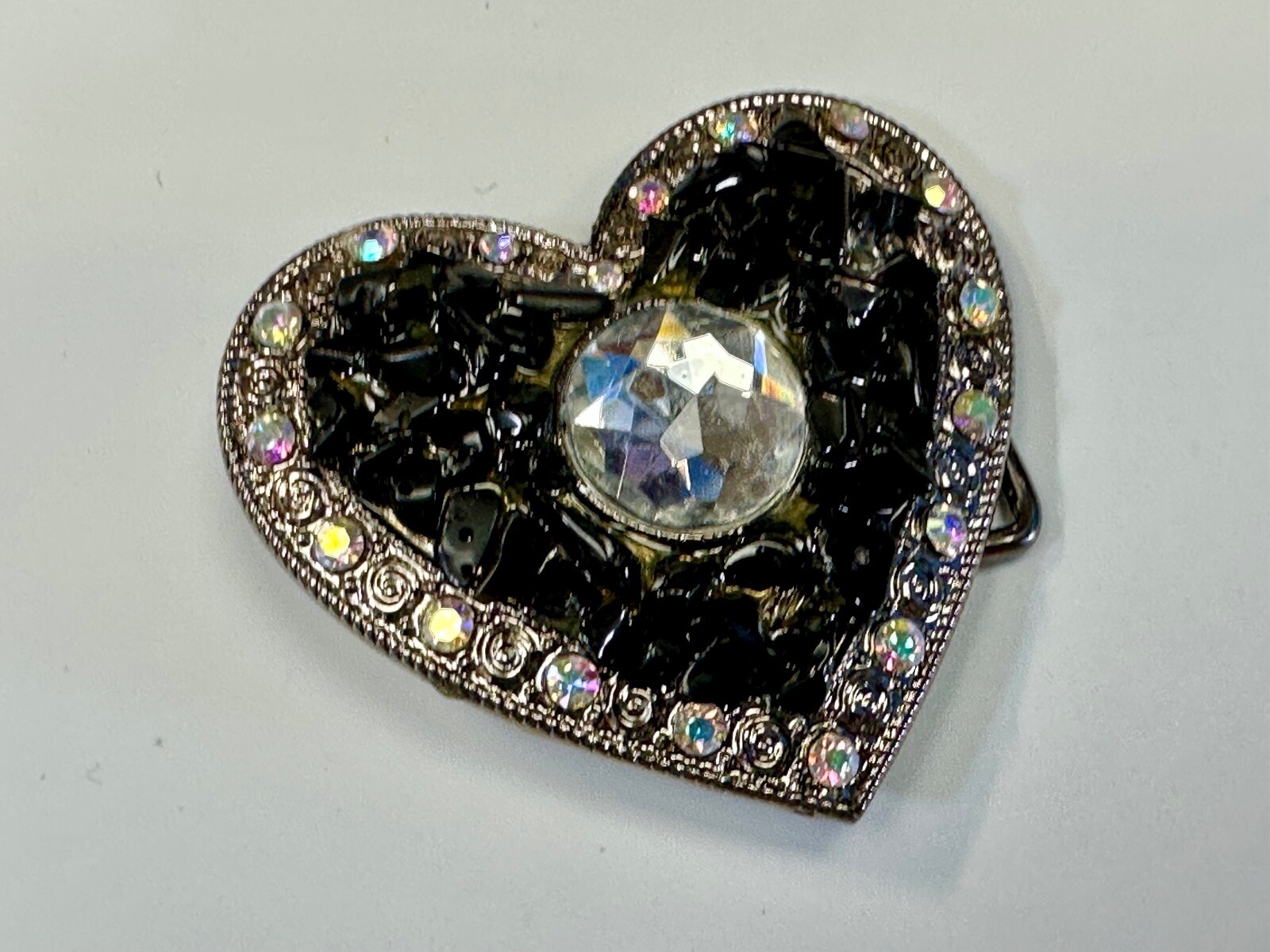 Black Chunky HEART clear rhinestone boarder large Clear centerpiece belt buckle