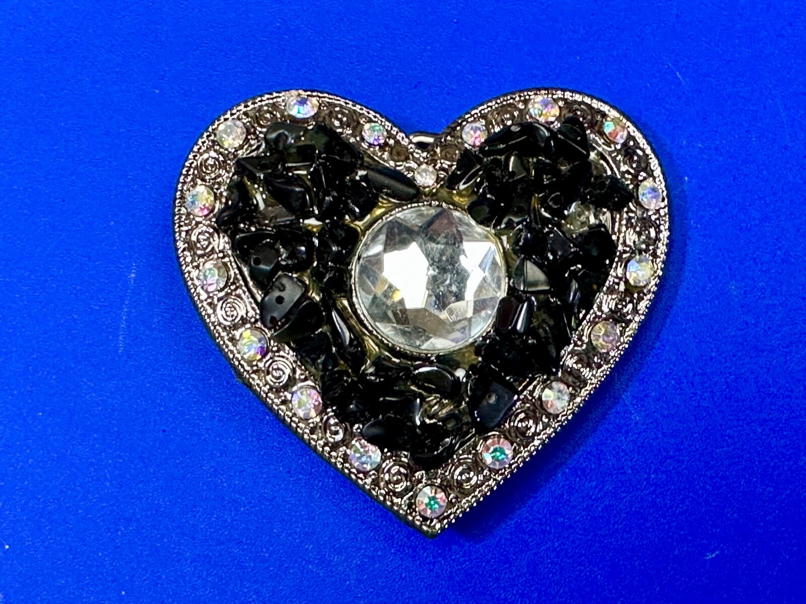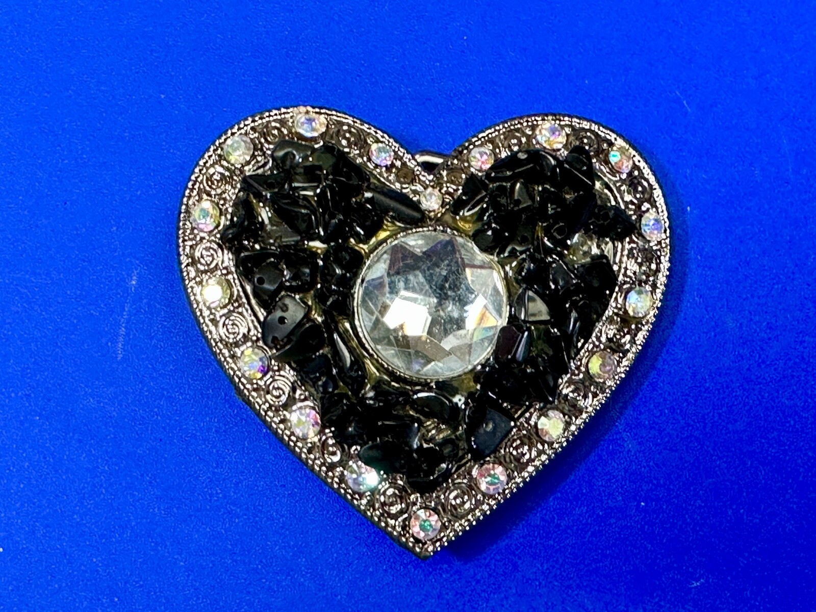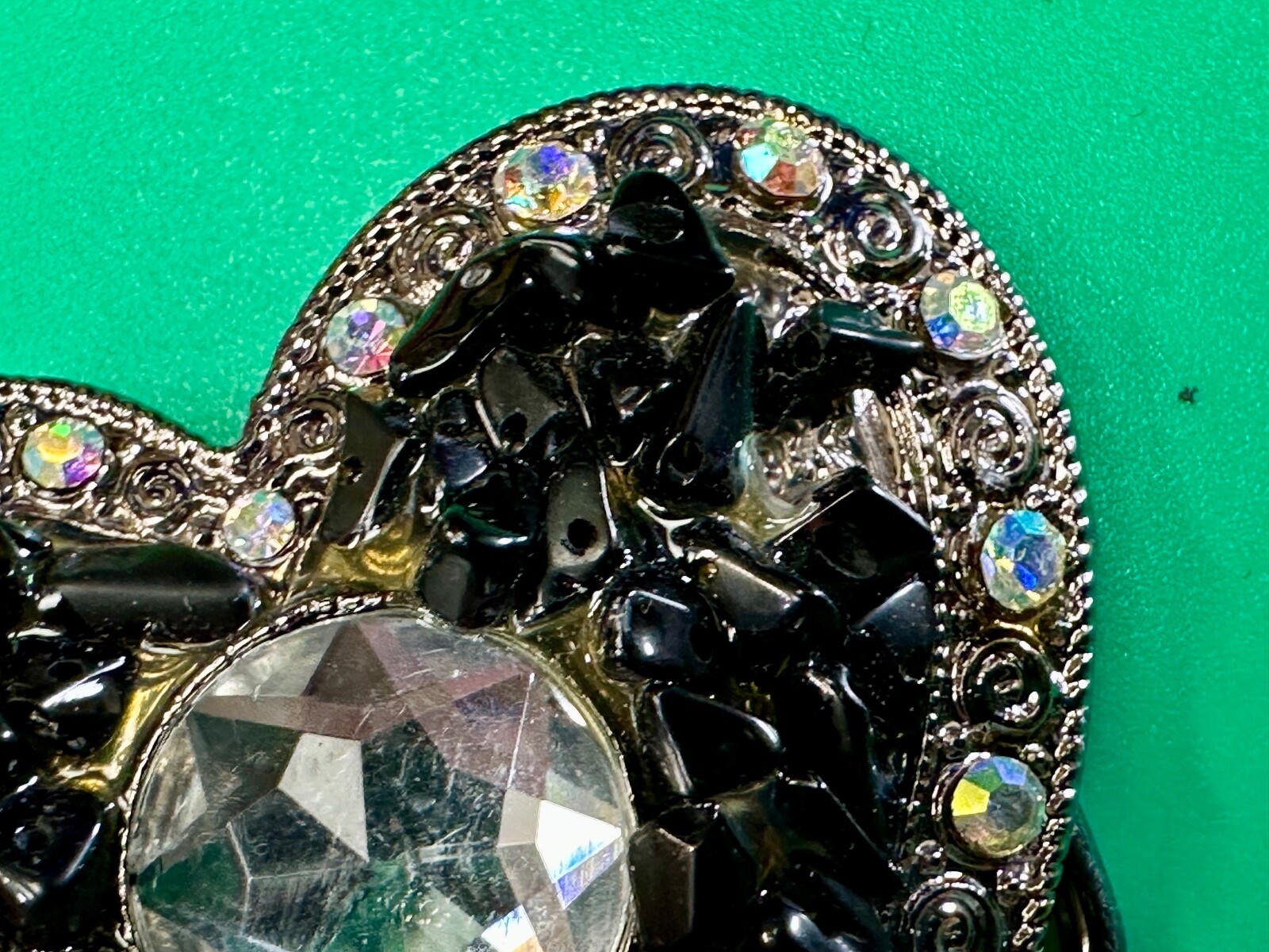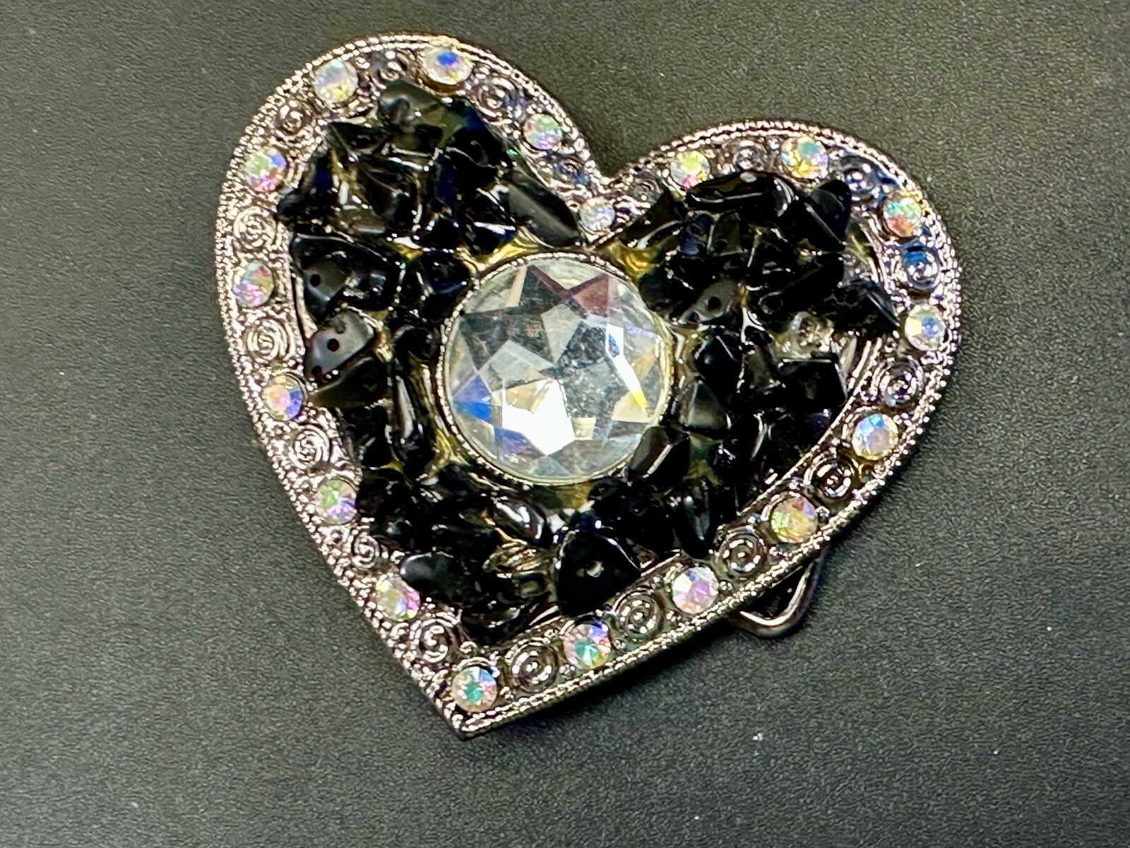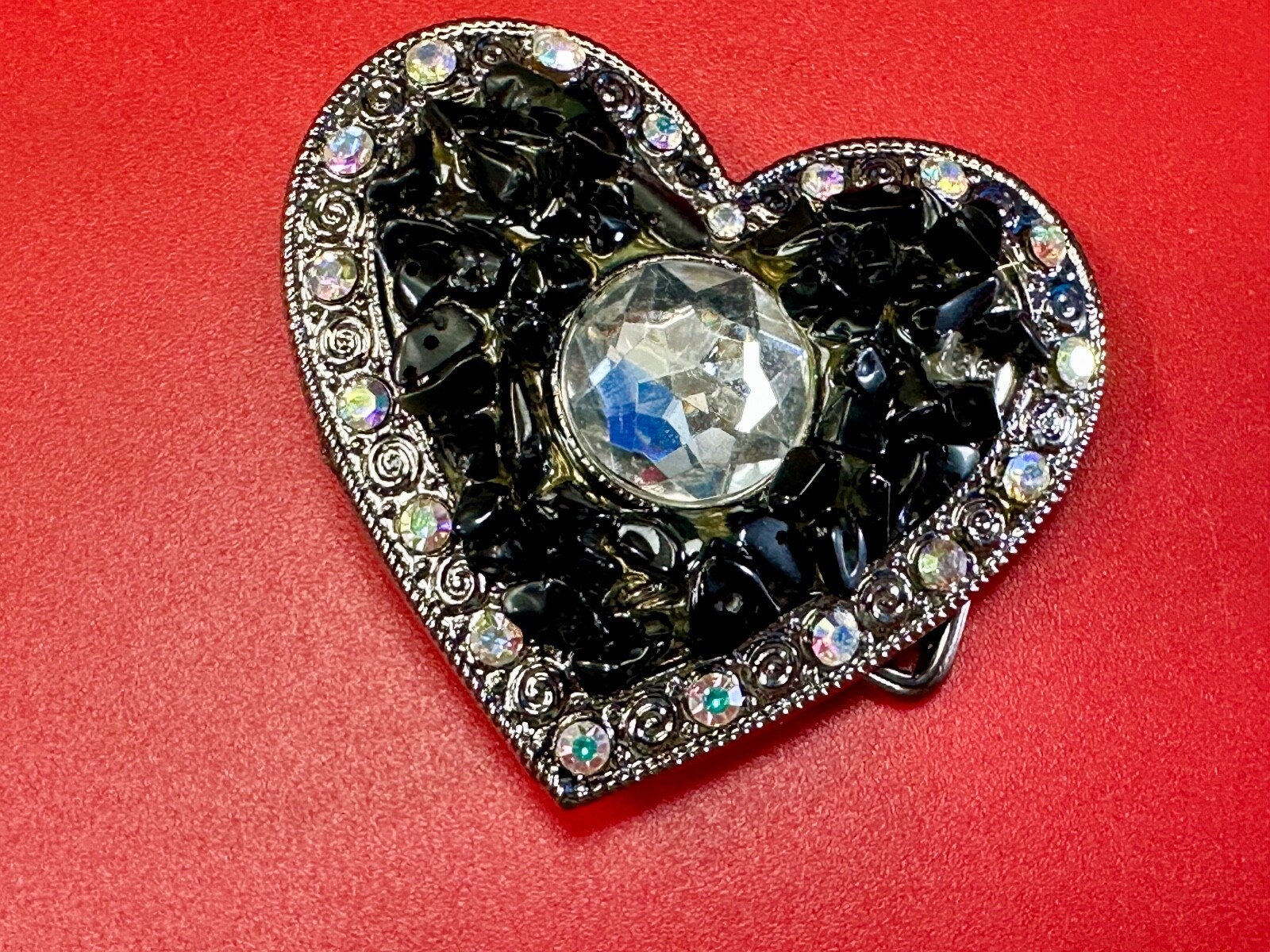 Black Chunky HEART clear rhinestone boarder large Clear centerpiece belt buckle