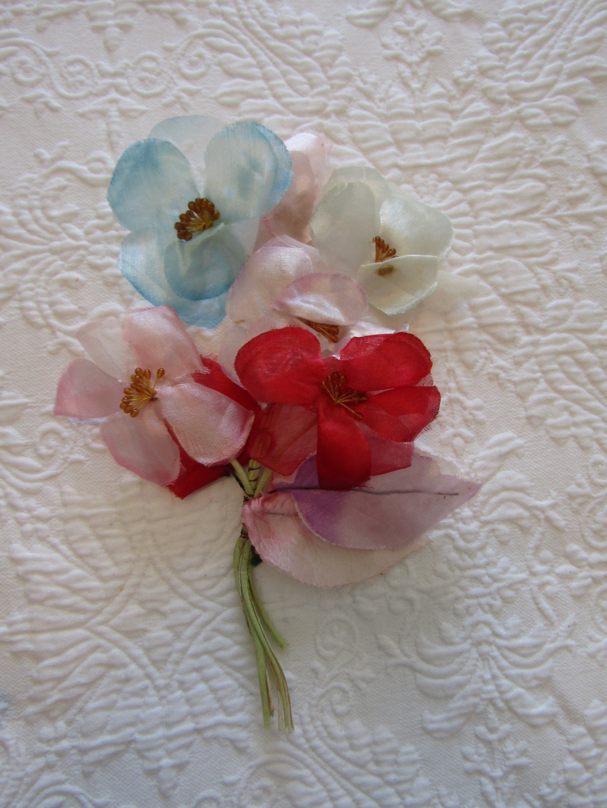 4 Vintage Millinery Hat Flowers Silk Chiffon Red--Blue--Pink---- 30