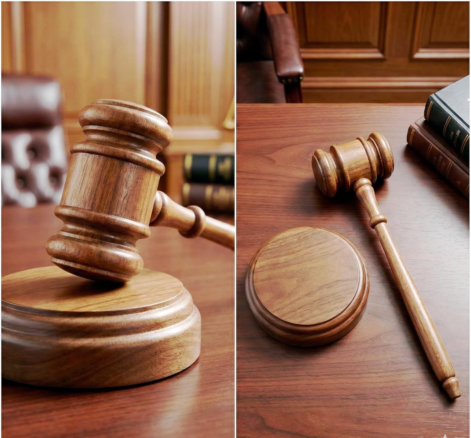 как выглядит Wooden Gavel and Sound Block Set, Traditional Brown Judge Hammer, 25 cm Length V фото