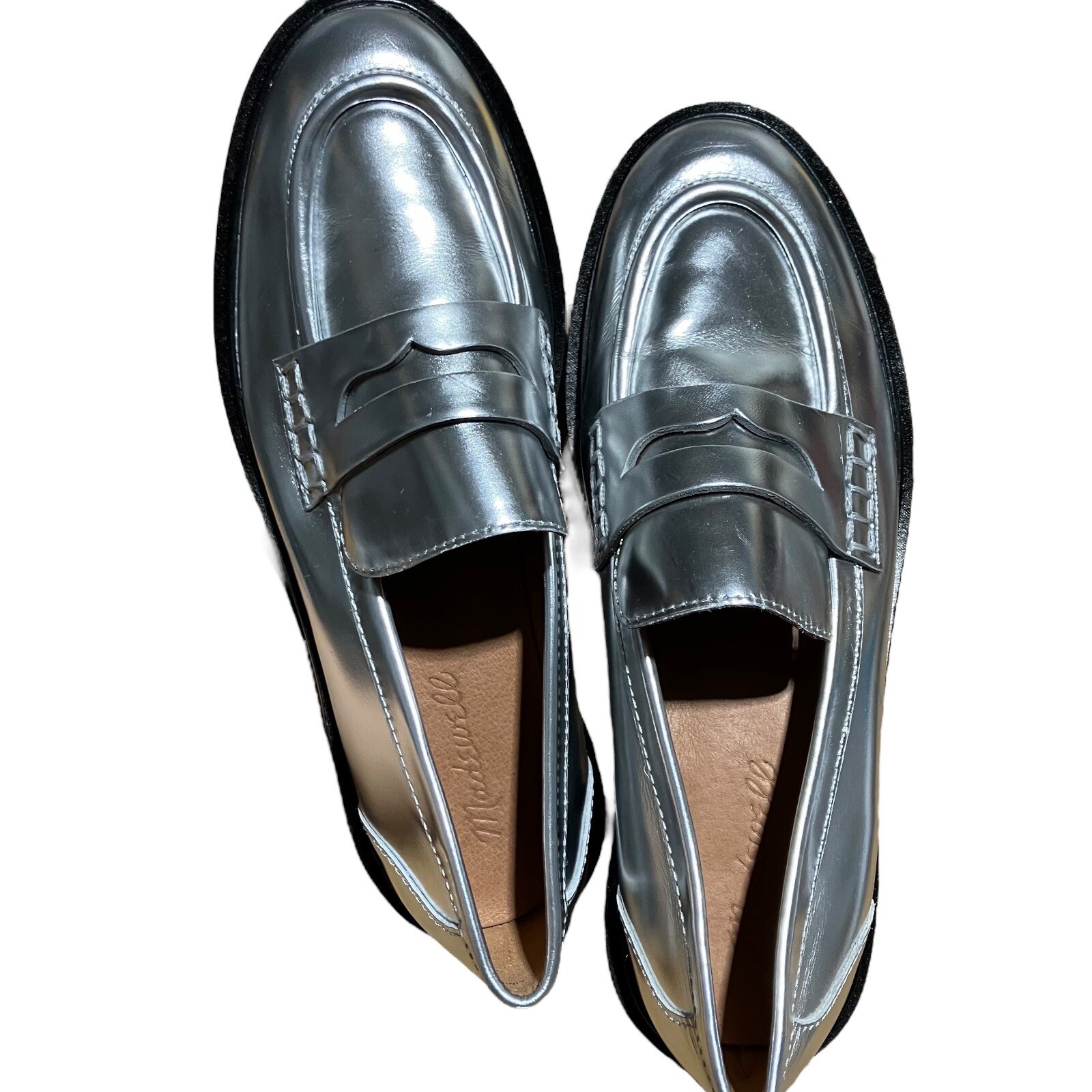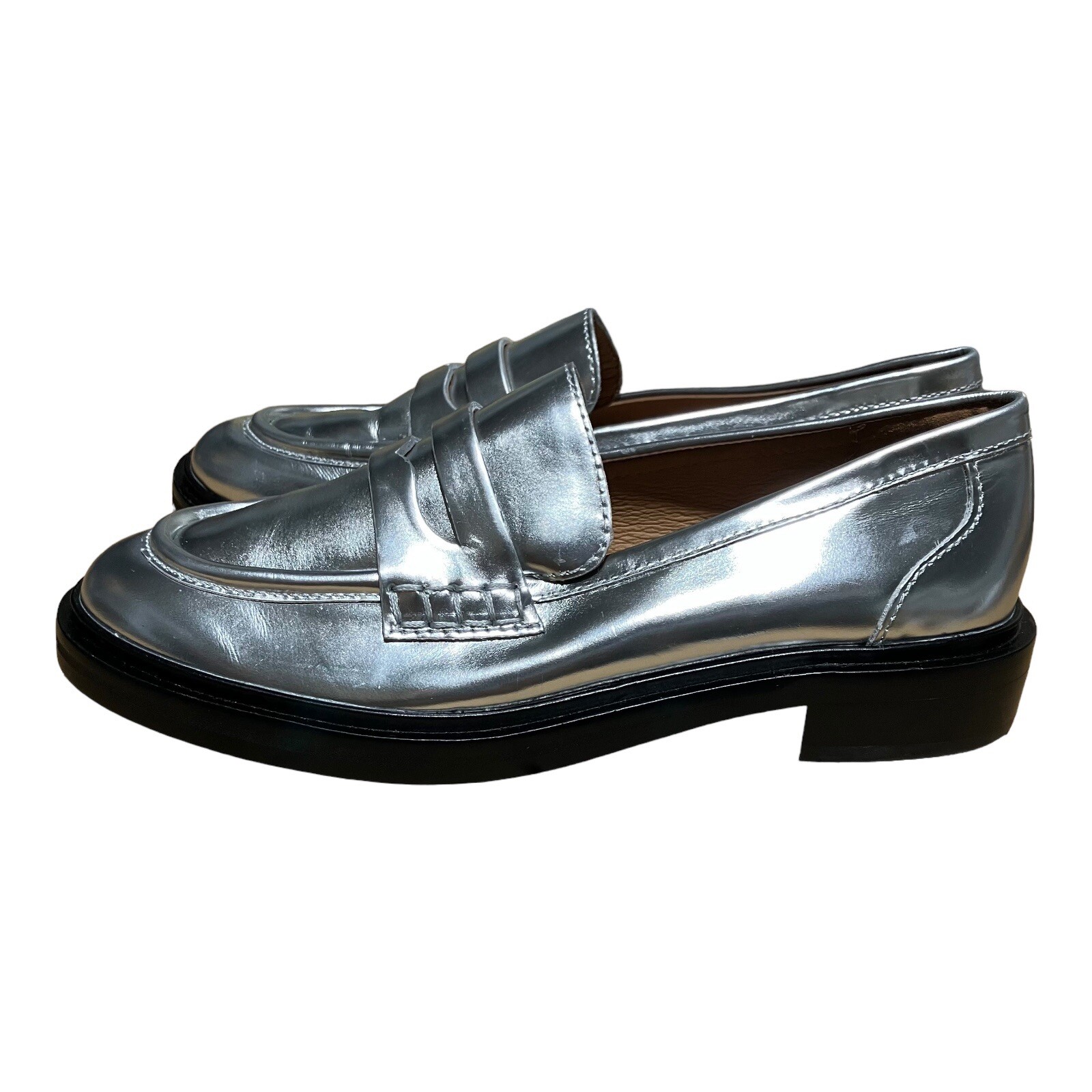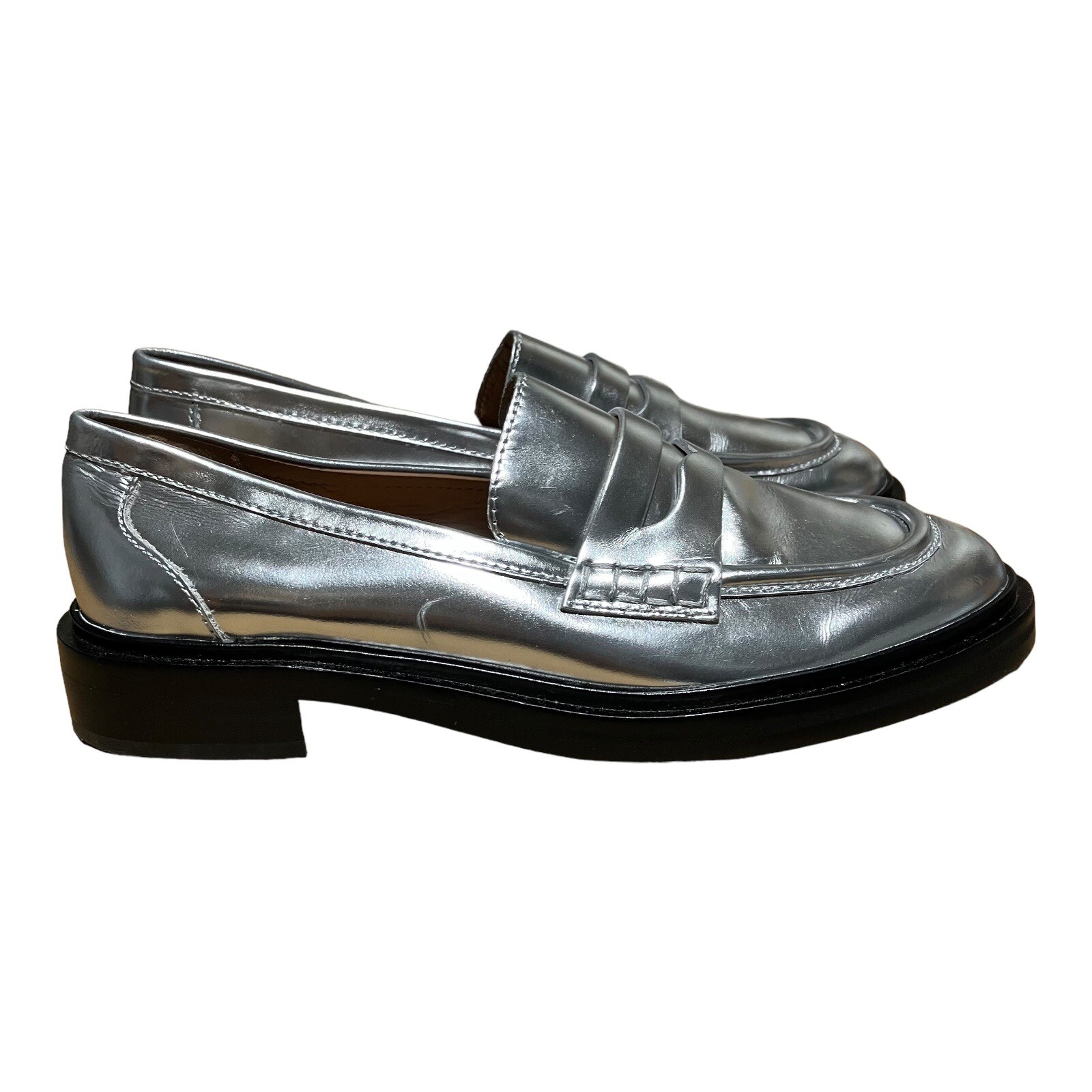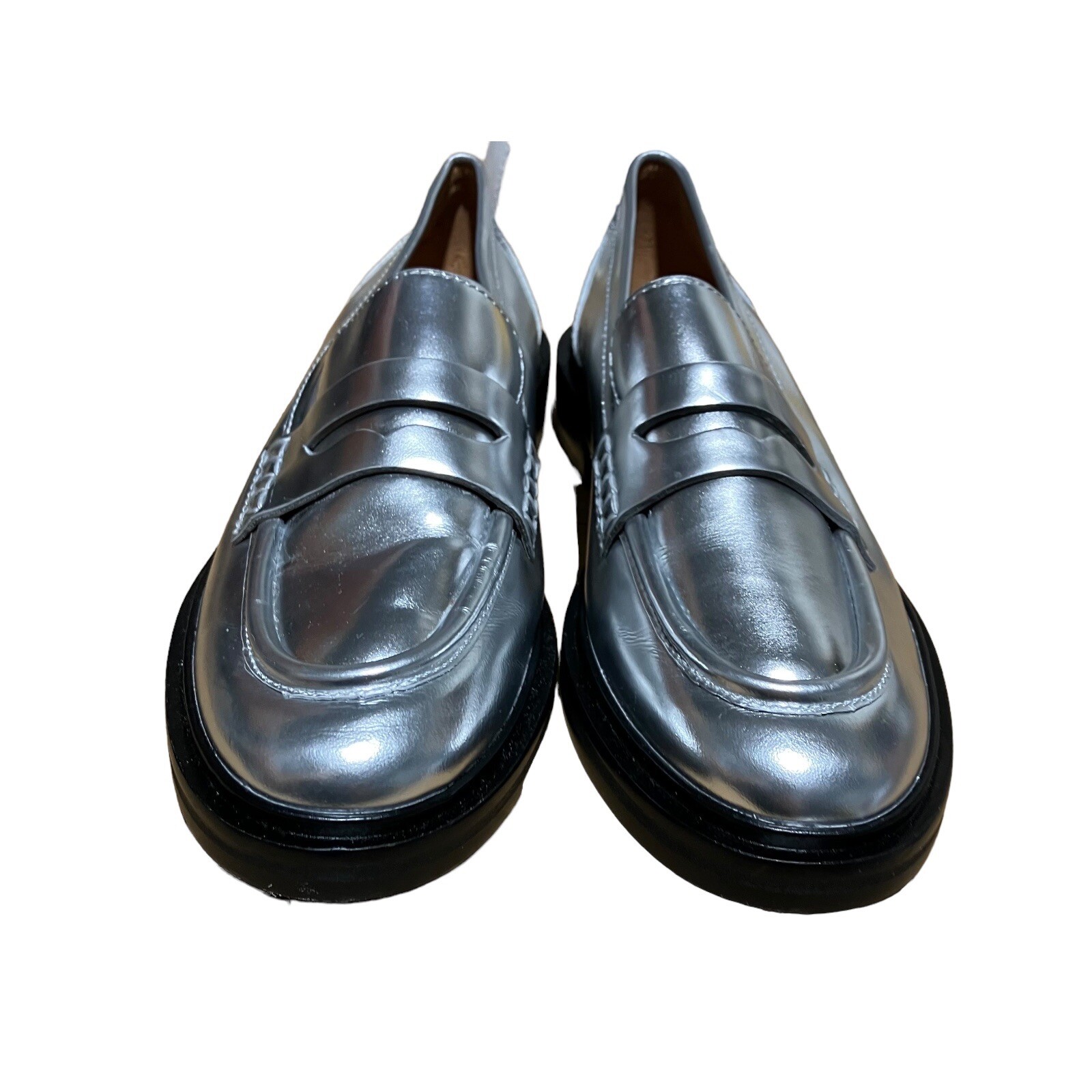 Madewell Loafers Womens 7 Soft Silver Leather Vernon Penny Loafer Chunky Sole