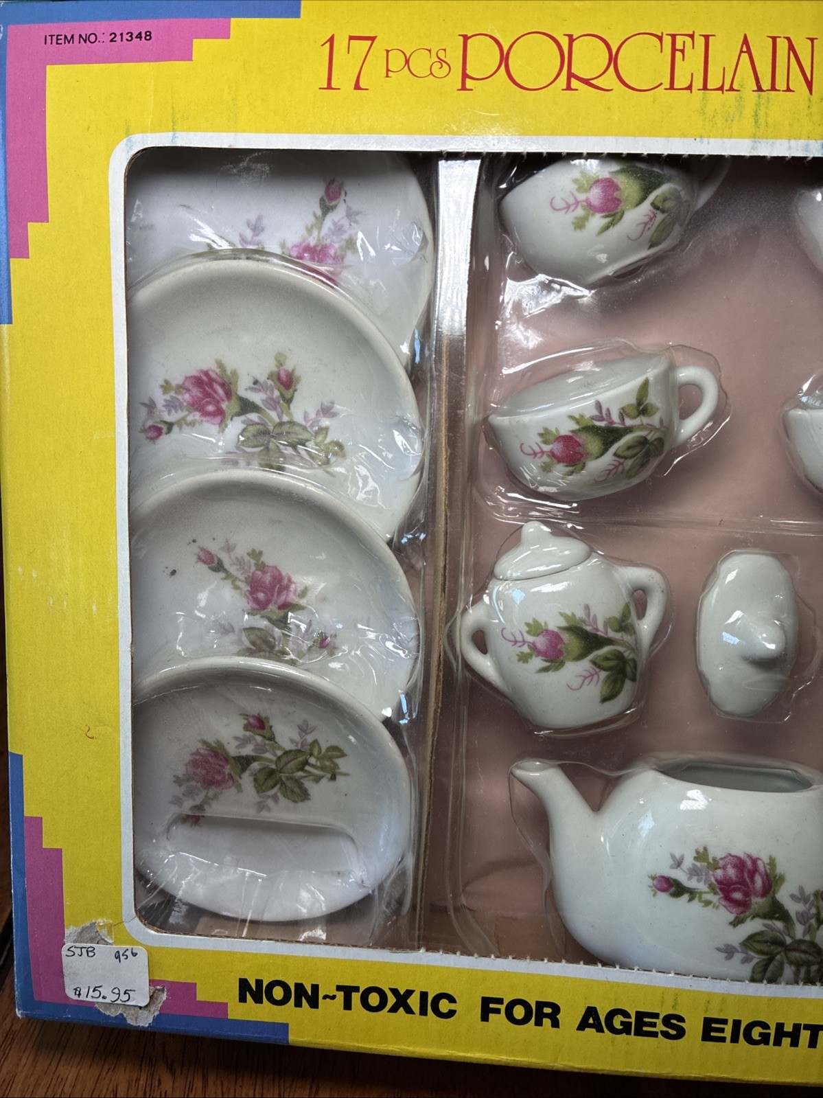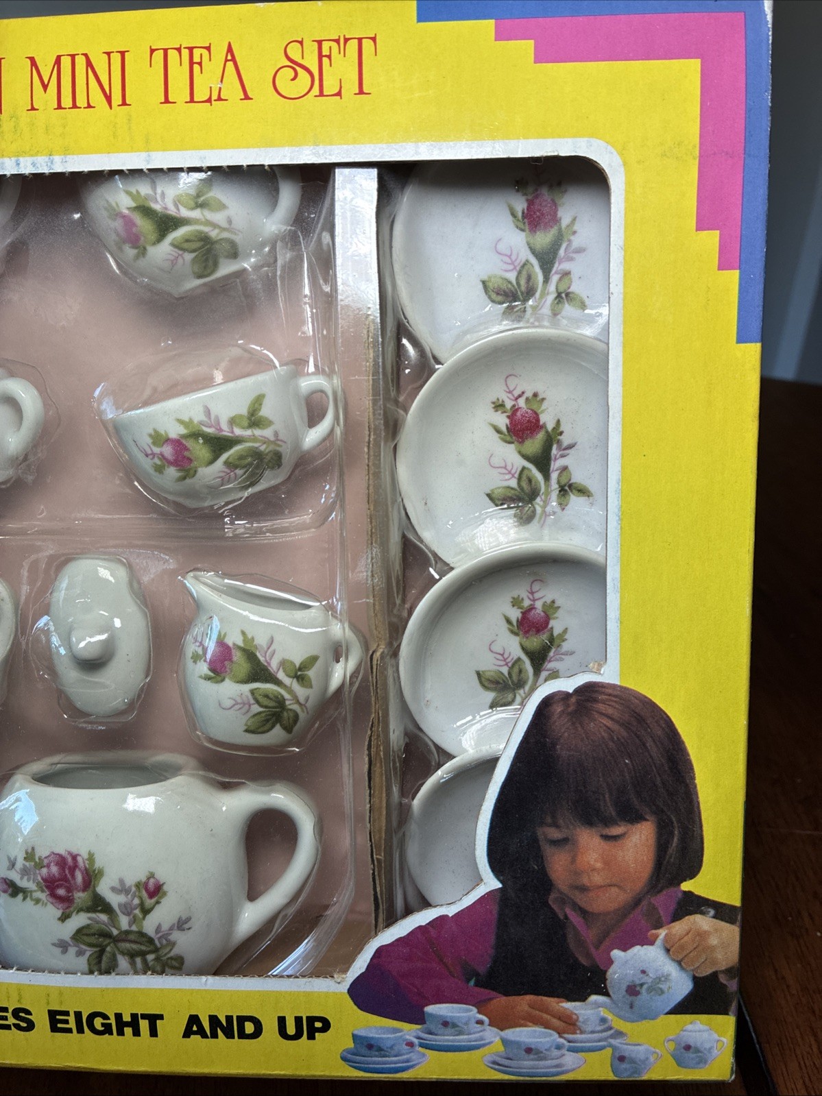 Vintage Child's 17 pcs Porcelain Mini Tea Set w/ Box Floral Rose