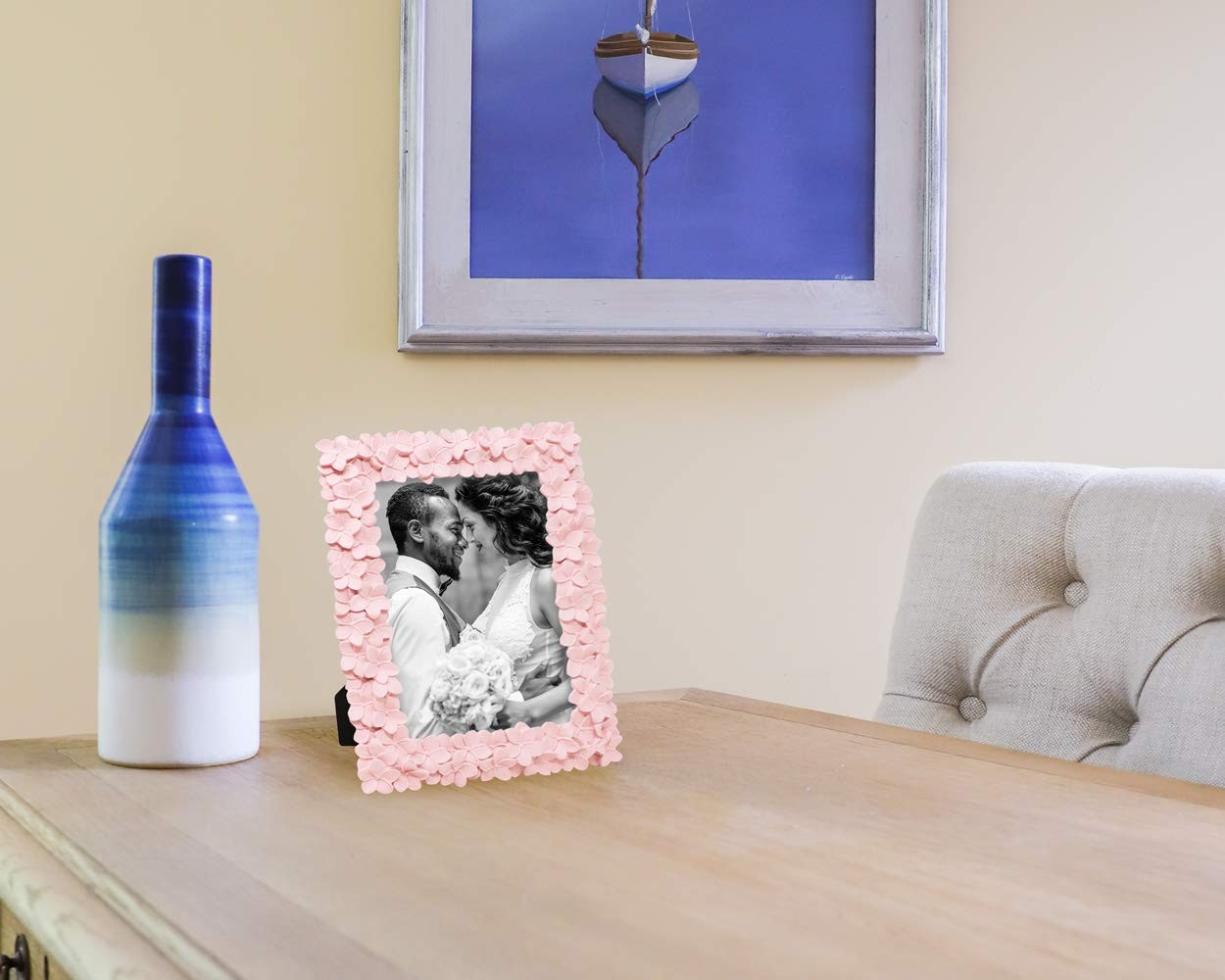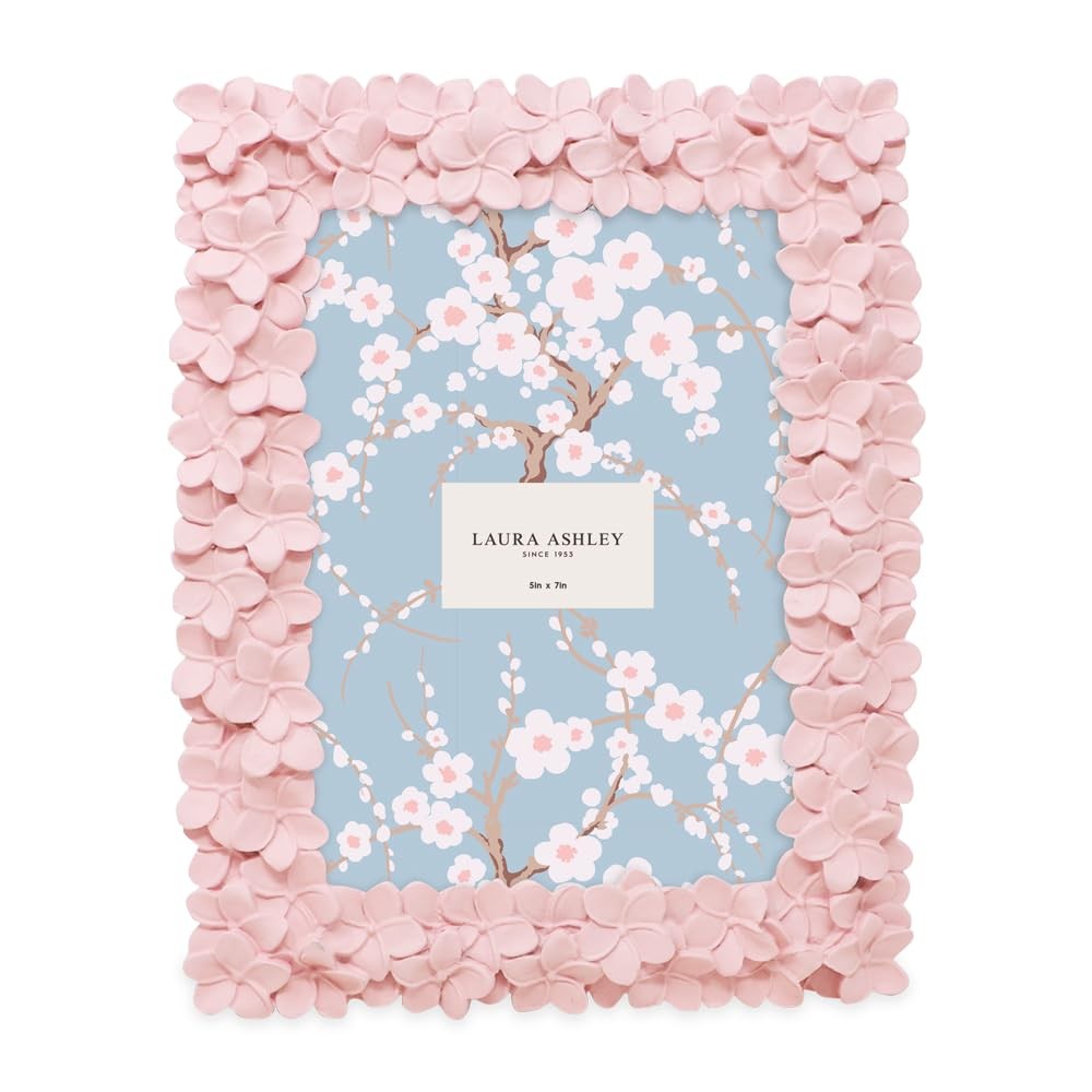 Laura Ashley 5x7 Pink Flower Textured Hand-Crafted Resin Picture Frame with Ease