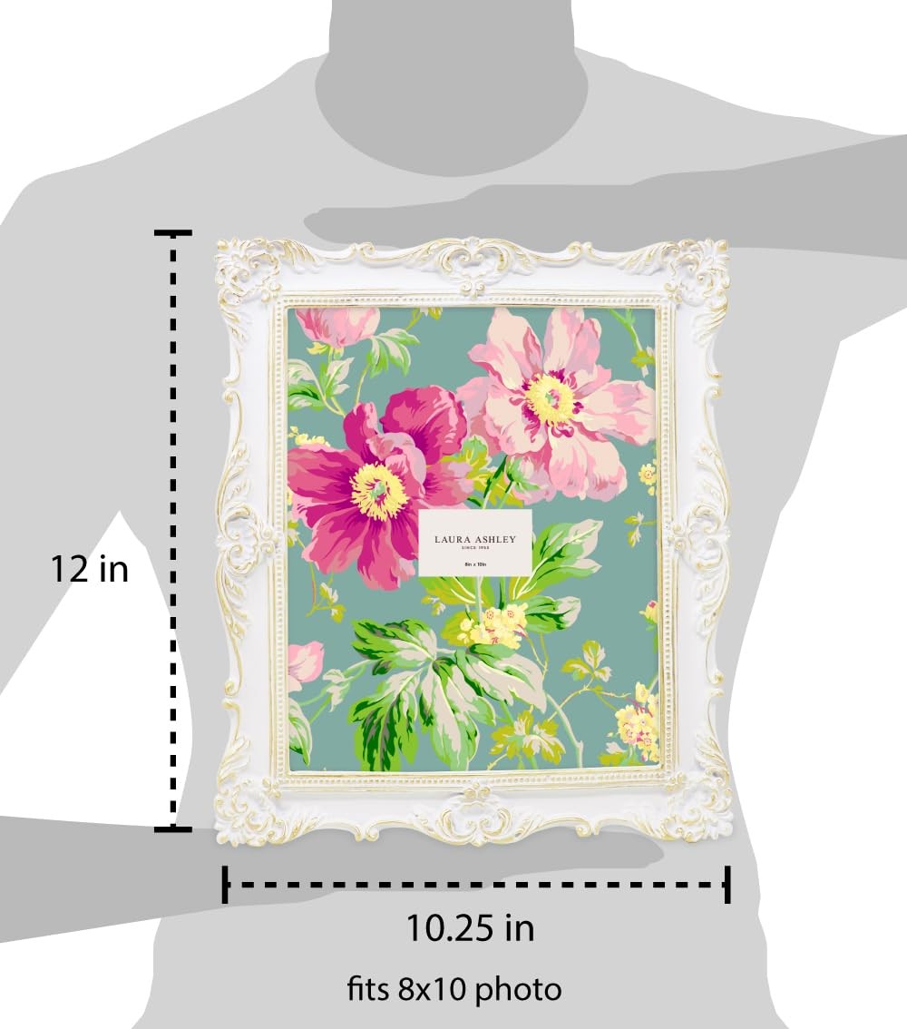 Laura Ashley 8x10 White Gold Ornate Textured Hand-Crafted Resin Picture Frame