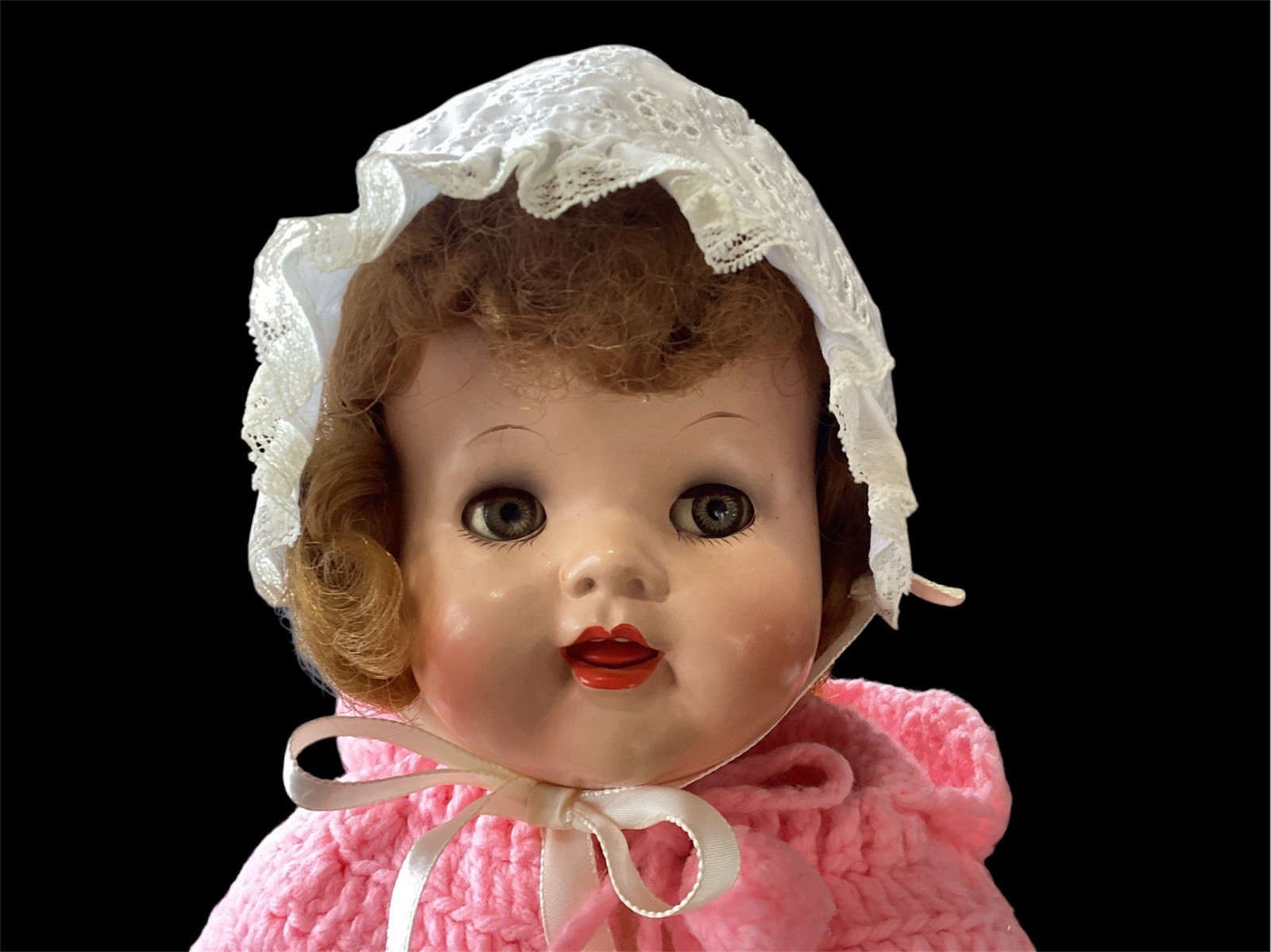 как выглядит Vintage Handmade White Eyelet And Lace Baby Or Doll Bonnet фото